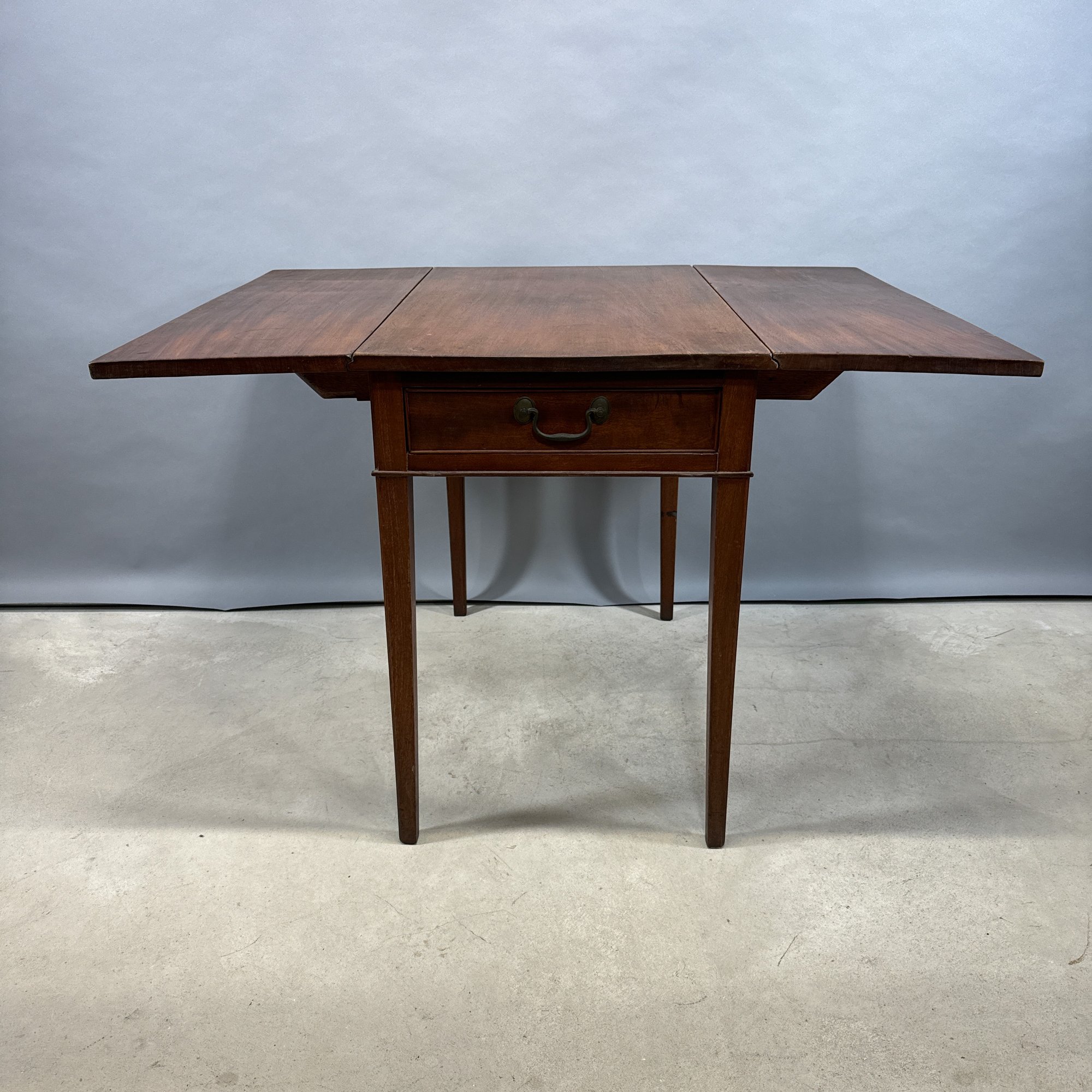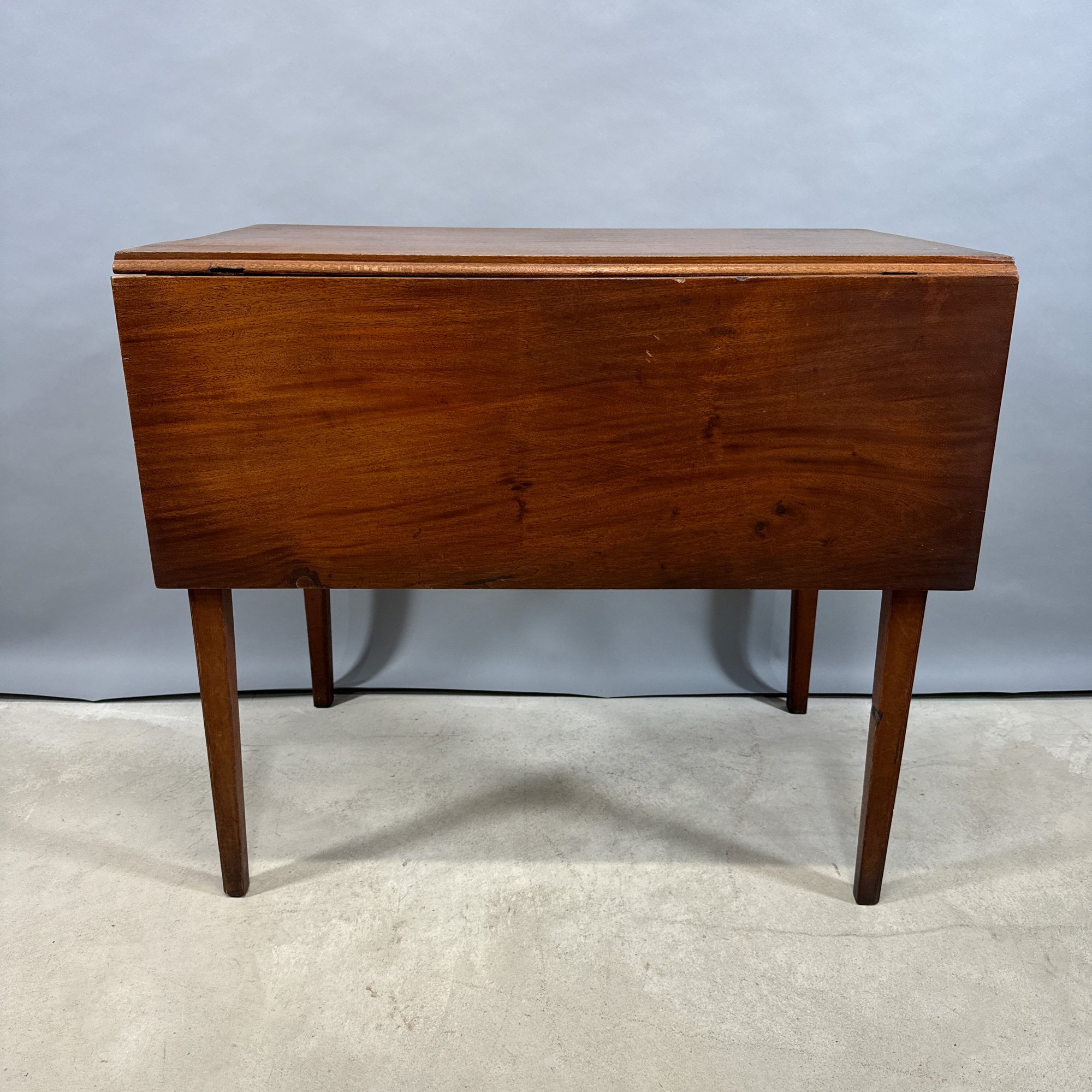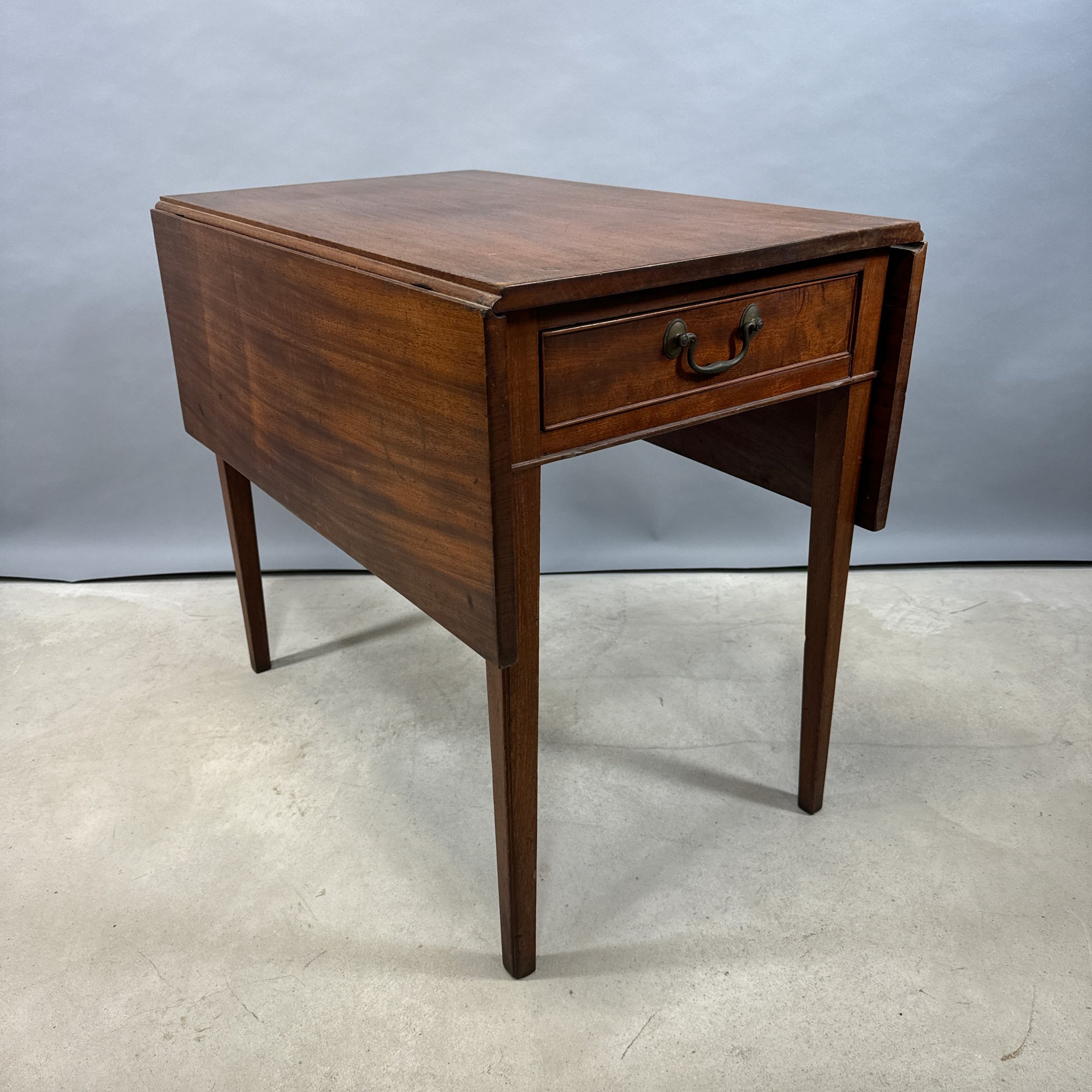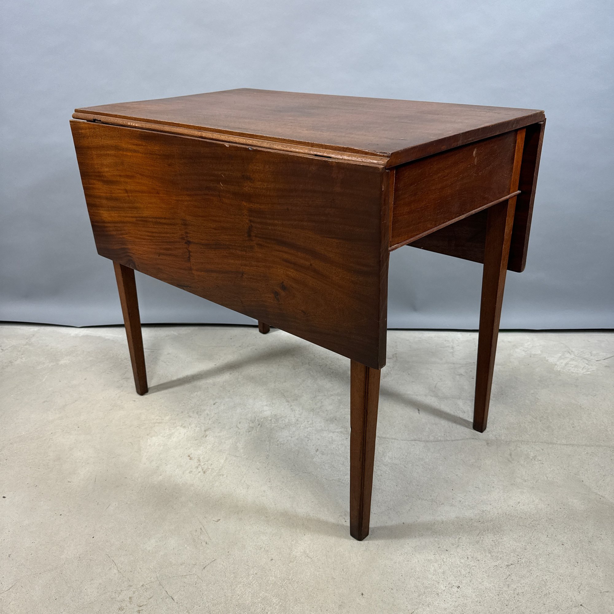 George III Style Mahogany Pembroke Table. The rectangular top above rectangular leaves and a cockbeaded drawer, raised on square tapered legs.