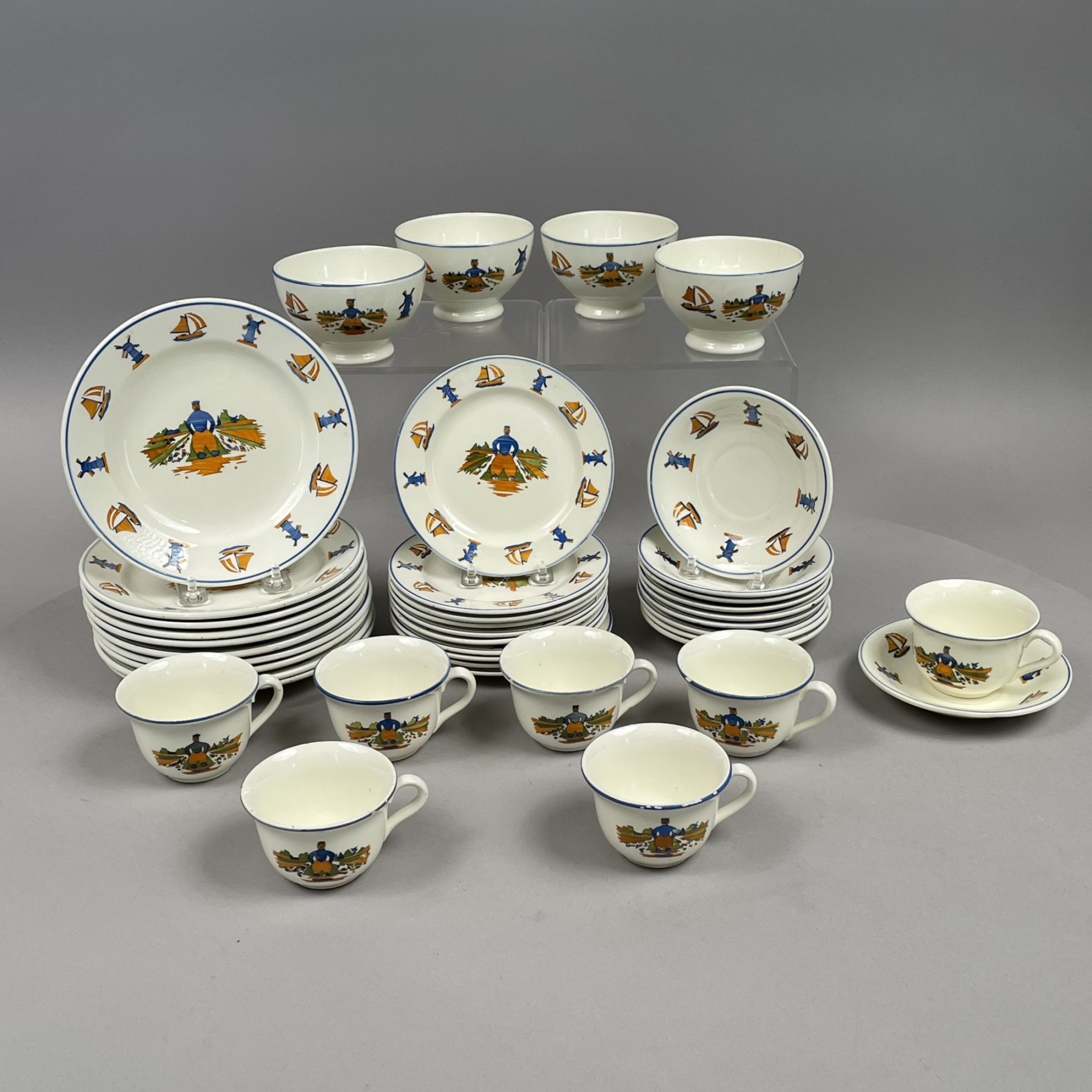Comprising four bowls, ten plates, ten side plates, seven teacups and ten saucers, printed "SMF SCHRAMBERG GERMANY" factory marks in black. (41)