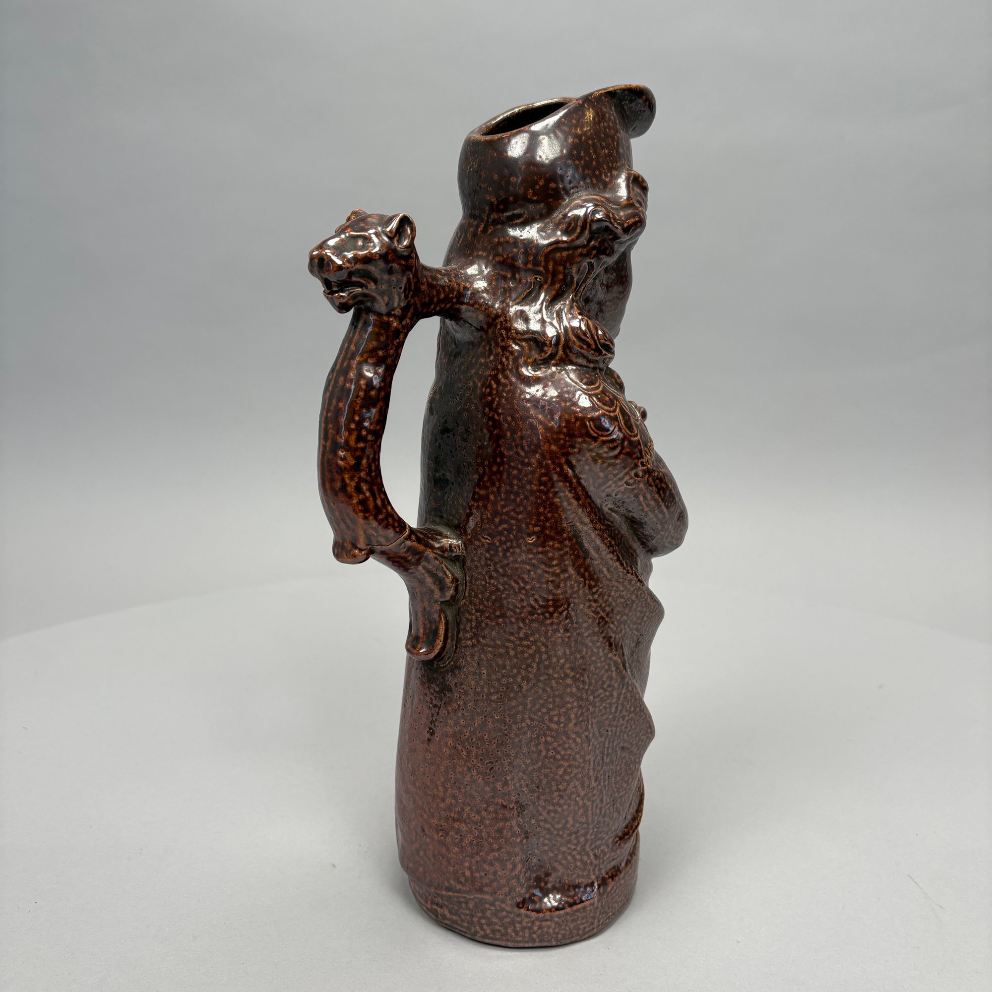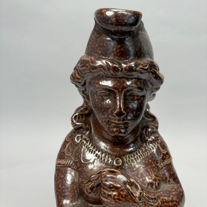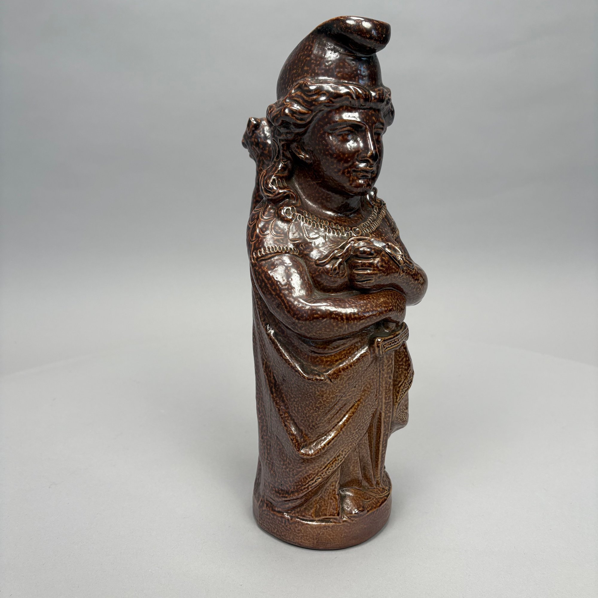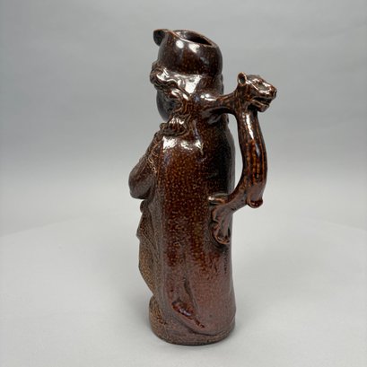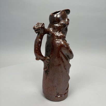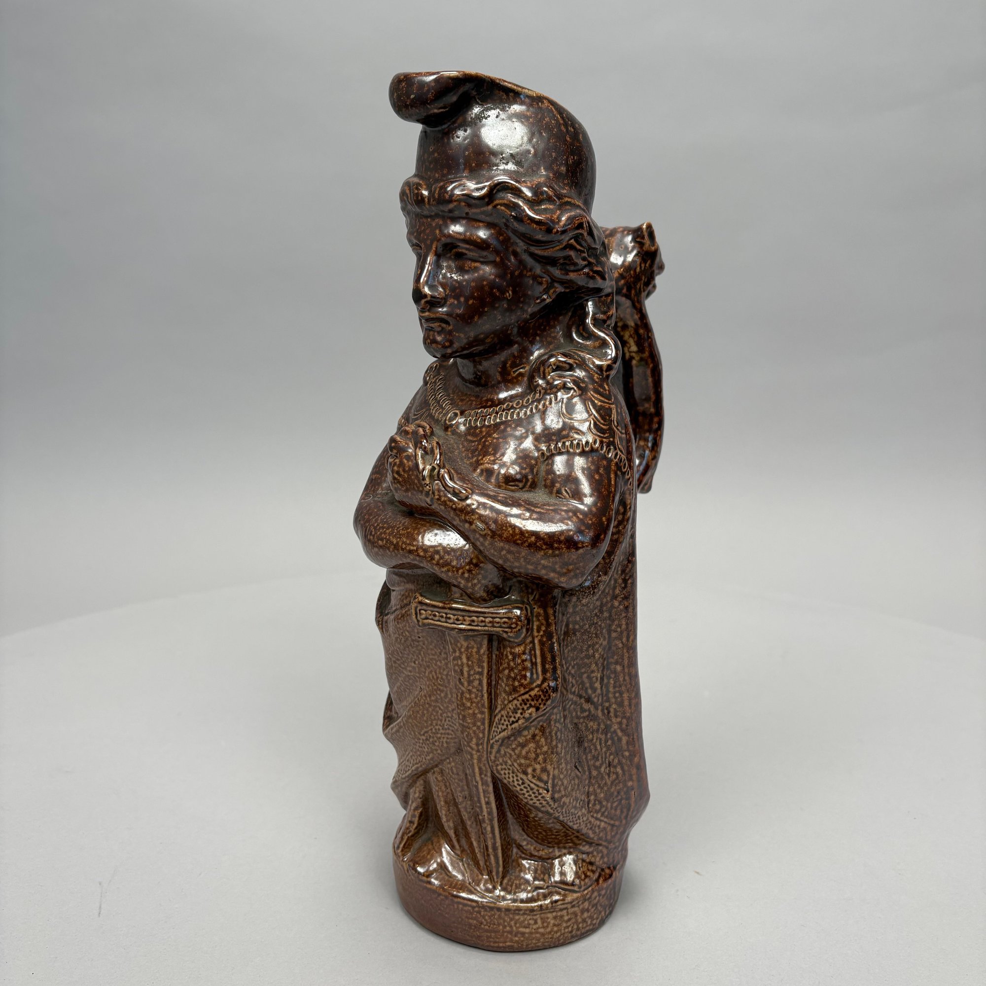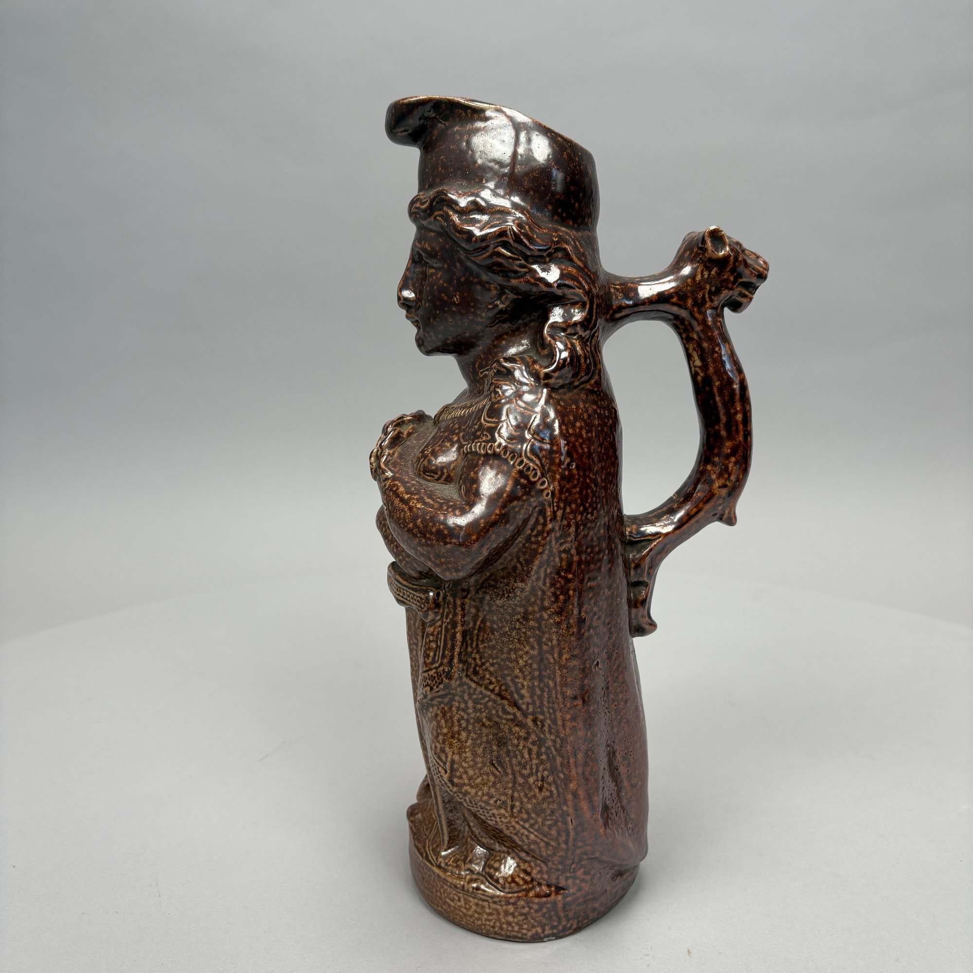 German Saltglaze Stoneware Figural Pitcher, Possibly Representing Joan of Arc, 19th Century. Unmarked.