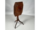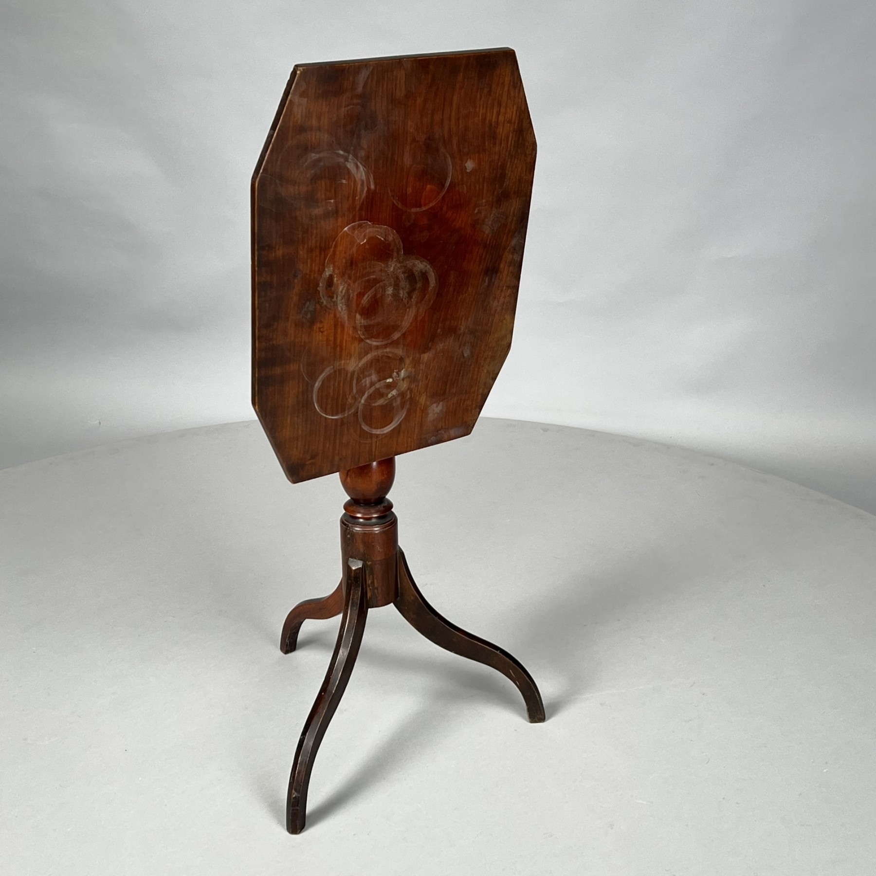 The oblong cut-corner top hinged upon battens and a plinth, over a vasiform turned standard, raised on beveled spider legs.
