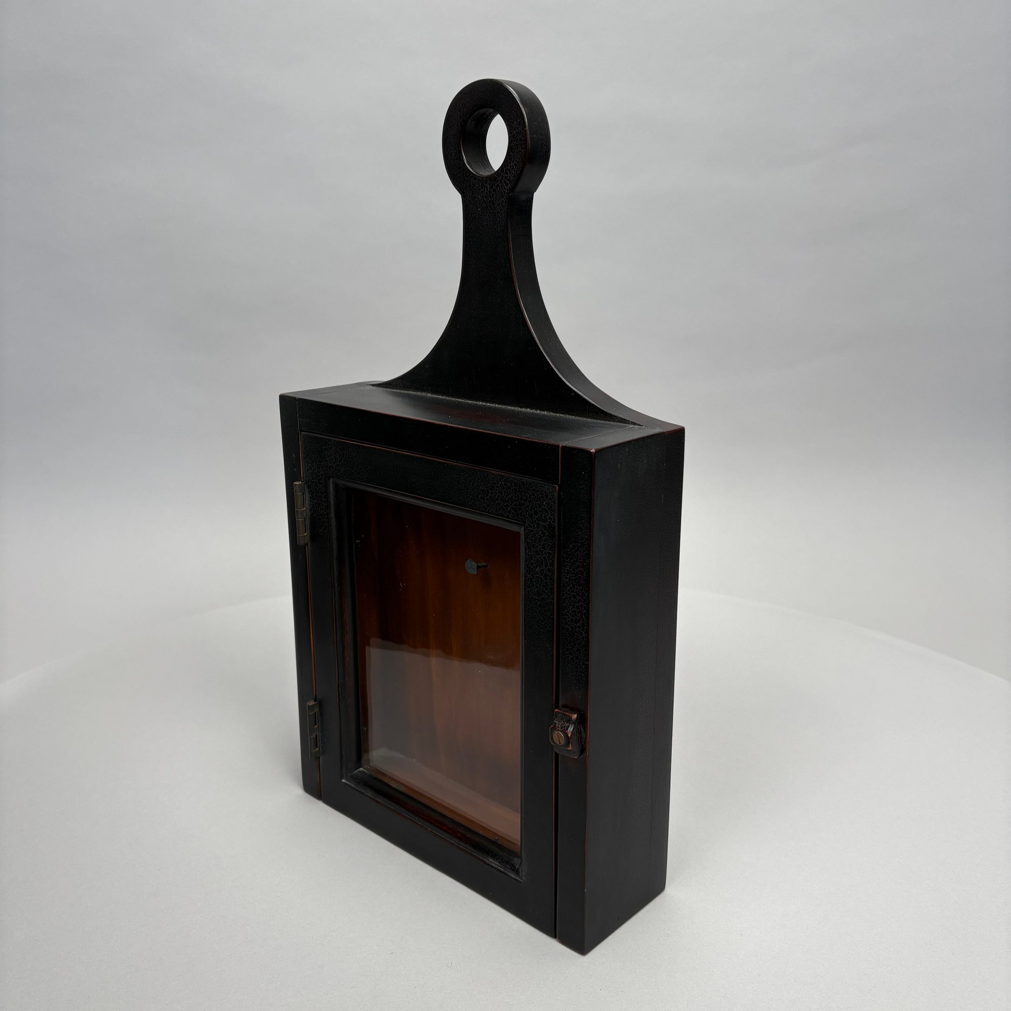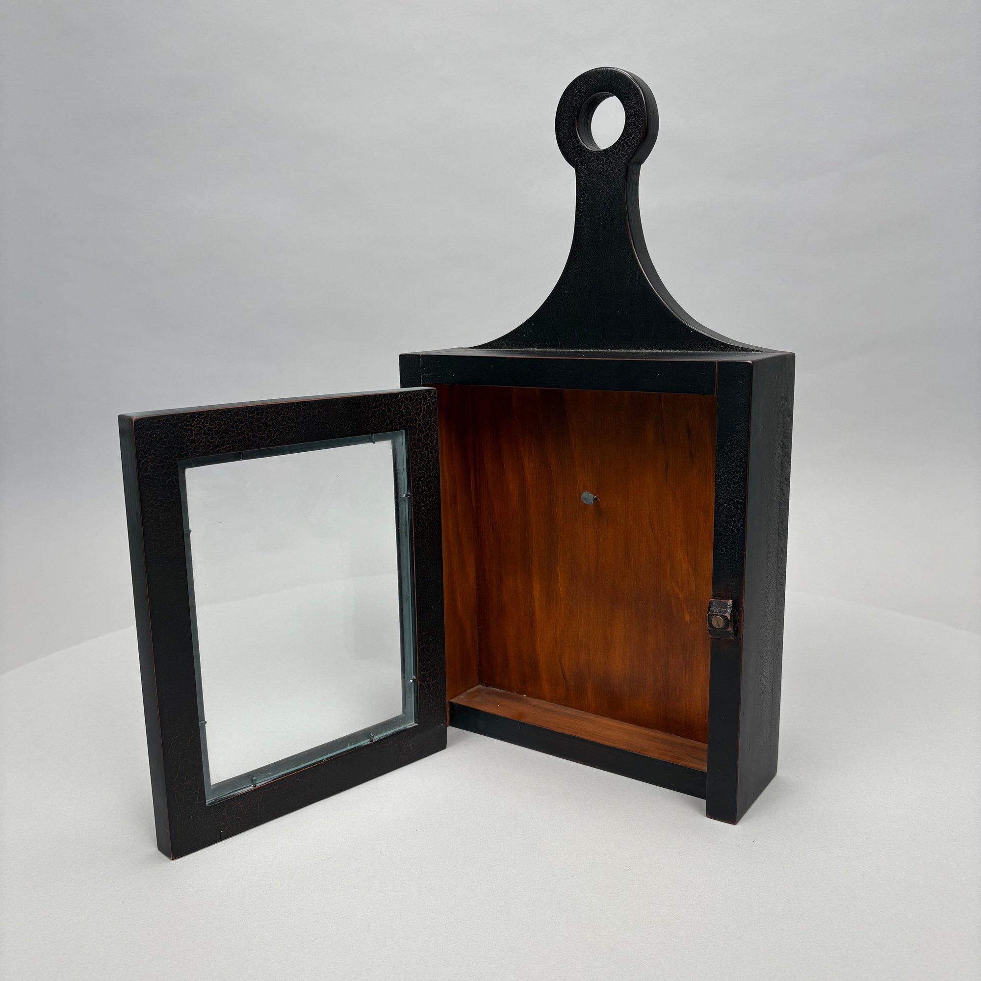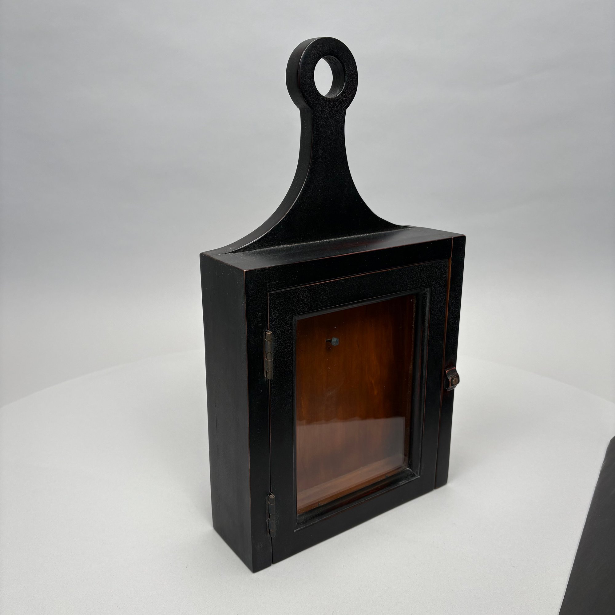 New England Style Hanging Watch Hutch in Black Paint, 20th Century. The rectangular case with glazed door and lollipop hanger.