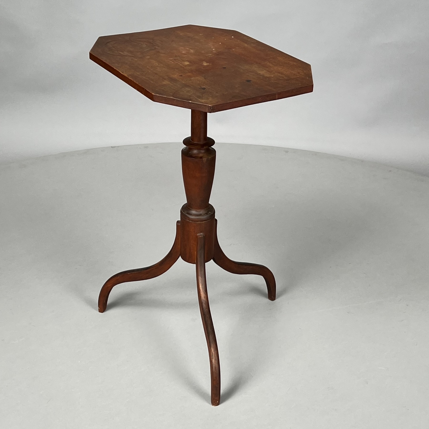 The oblong cut-corner top above a spool and vasiform turned standard, raised on delicate spider legs.