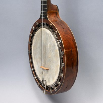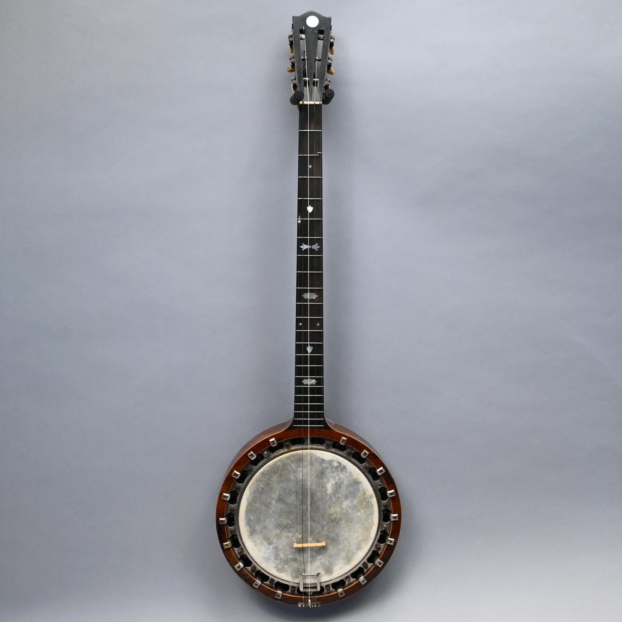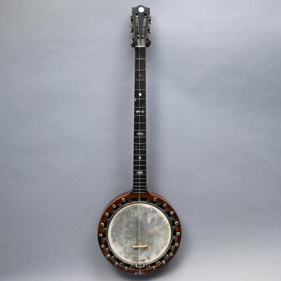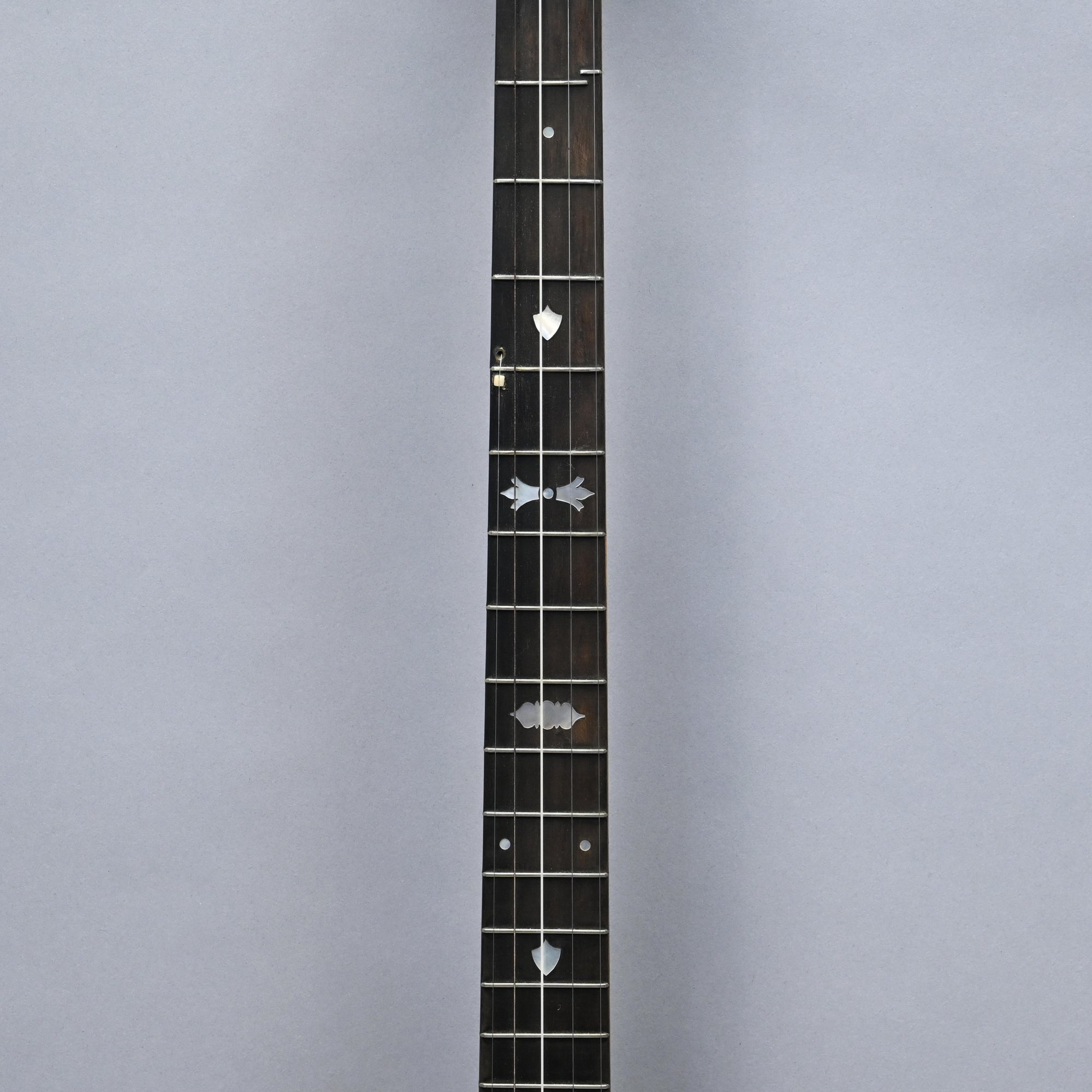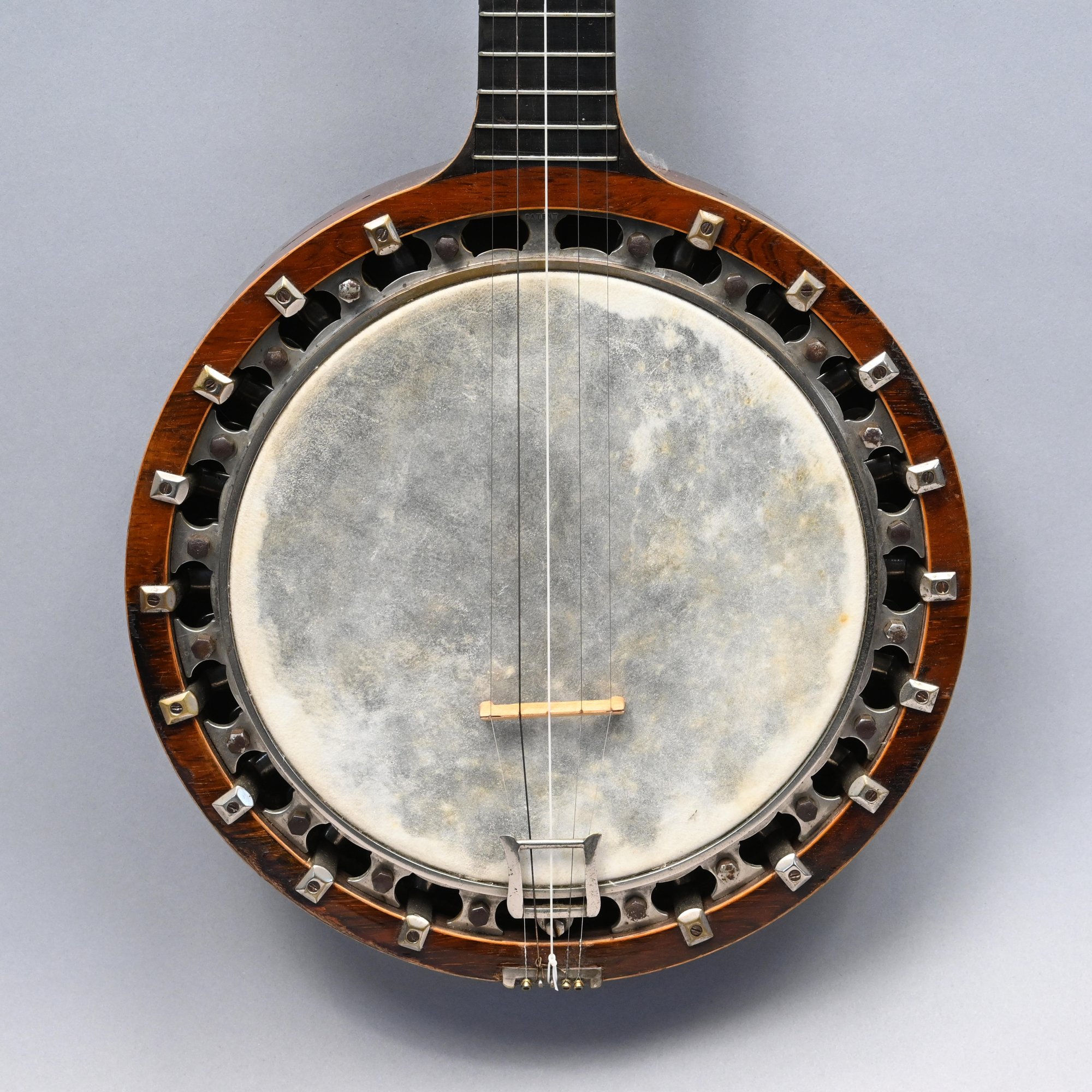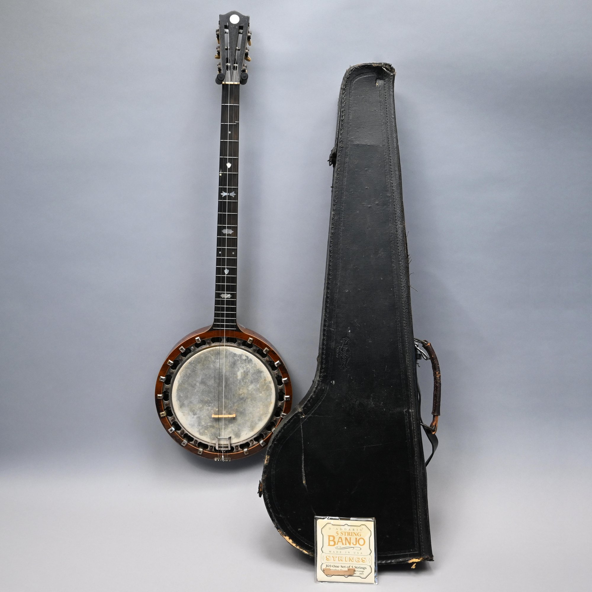 New Windsor 'Artiste' Patent Model 4 Rosewood and Mother-of-Pearl Five-String Zither Banjo, A.O. Windsor, Birmingham, England, 1910-20. Inlaid on the ebony neck in mother-of-pearl with shields and geometric devices, stamped at the top of the peghead "No. 4," the heel affixed with an oval plate, stamped "PATENT" on the flange, together with one set of D'Addario J69 5 strings and a bridge; housed in the original Windsor Patent case.