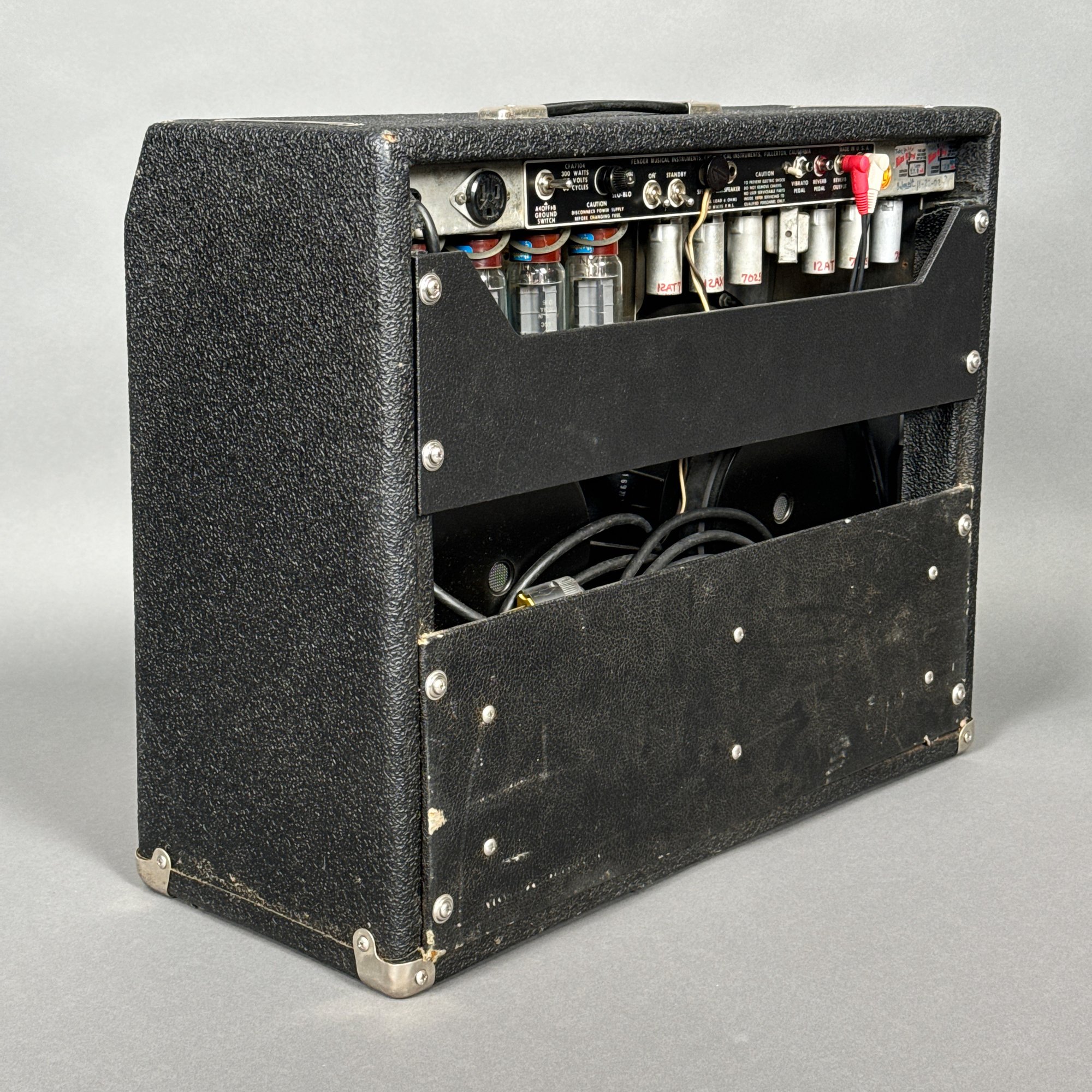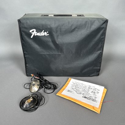 Fender Musical Instruments Corp. Reverb Amplifier, No Serial Number Located. With accessories, and including a Fender black cover signed "Fender."