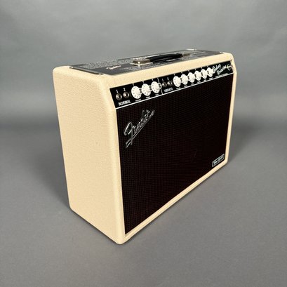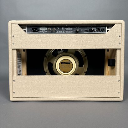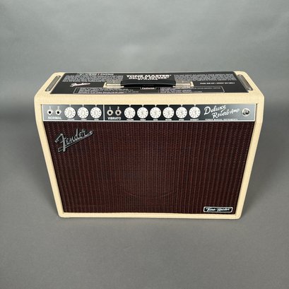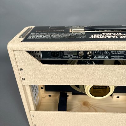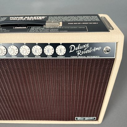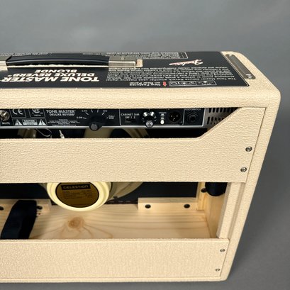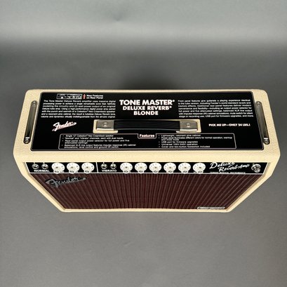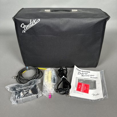 Fender Musical Instruments Corp. Tone Master Deluxe Reverb Blonde Amplifier, Serial Number B905505. Including a Fender black cover signed "Fender."