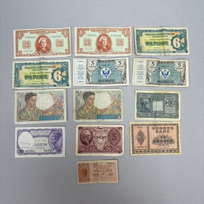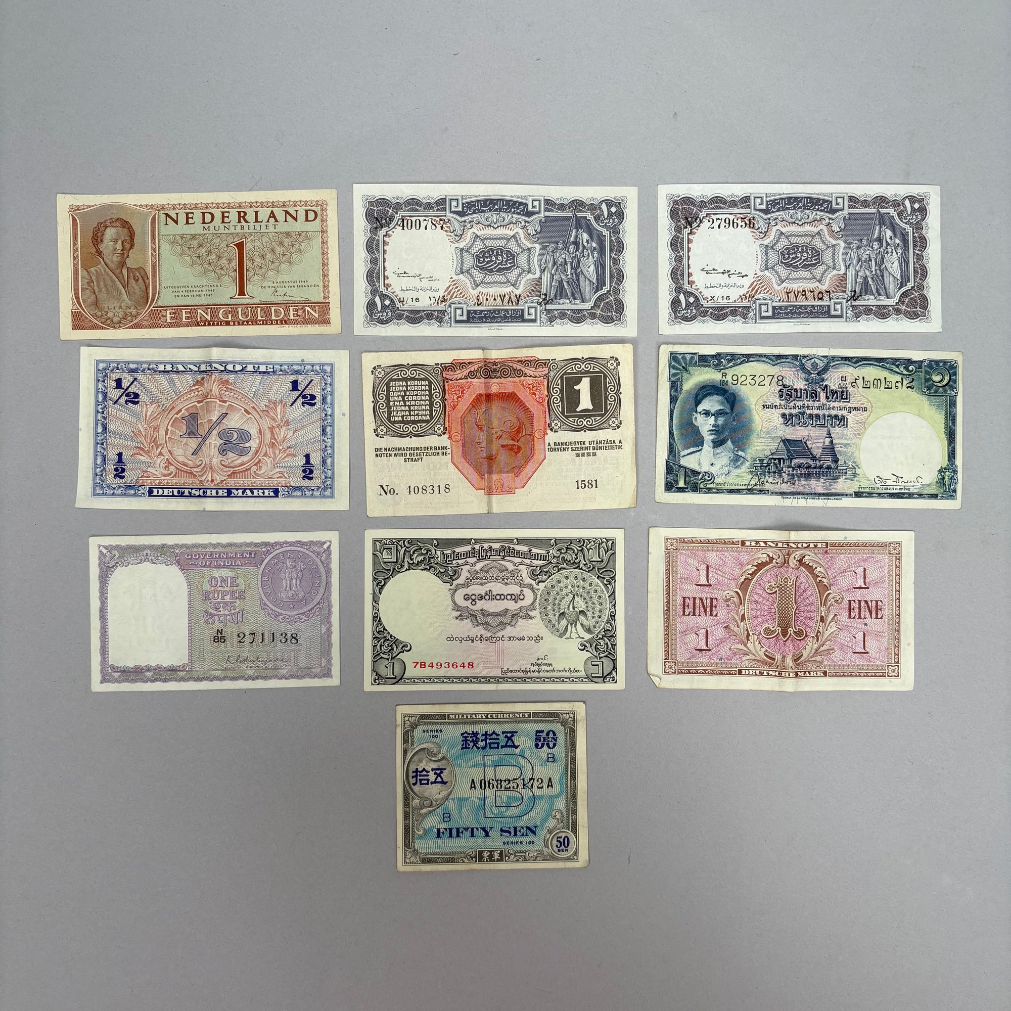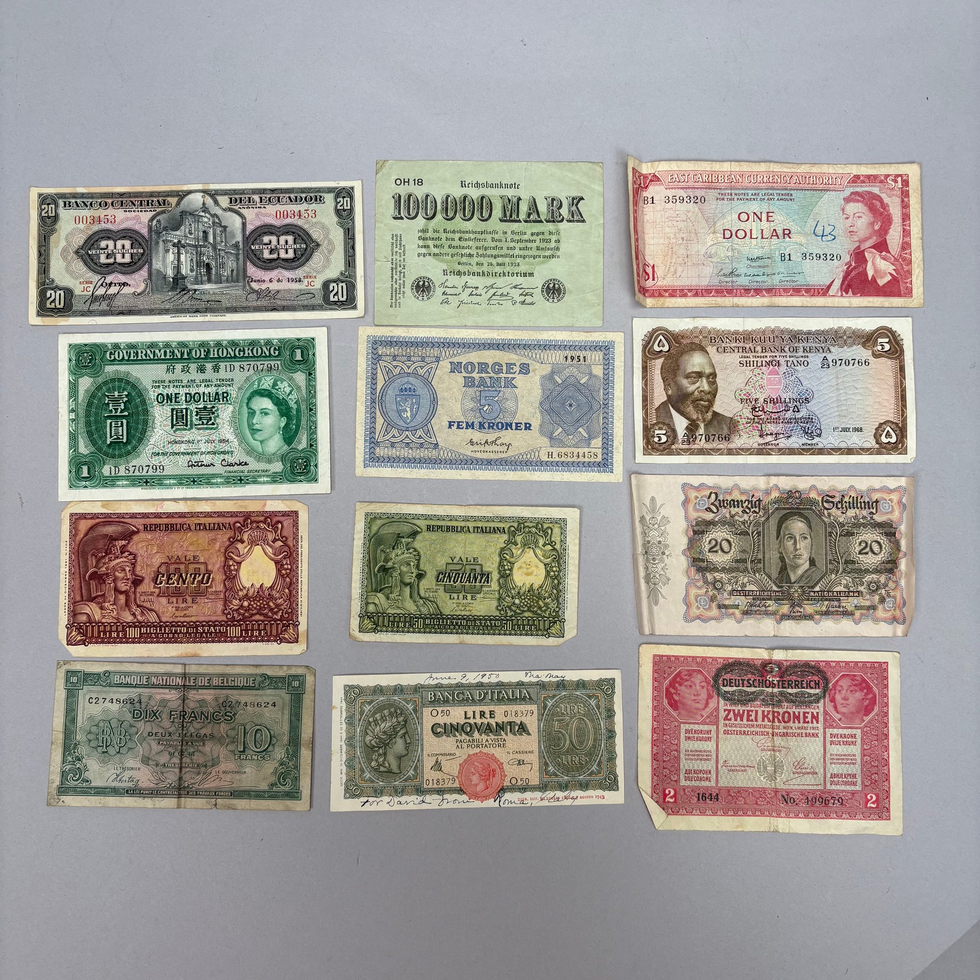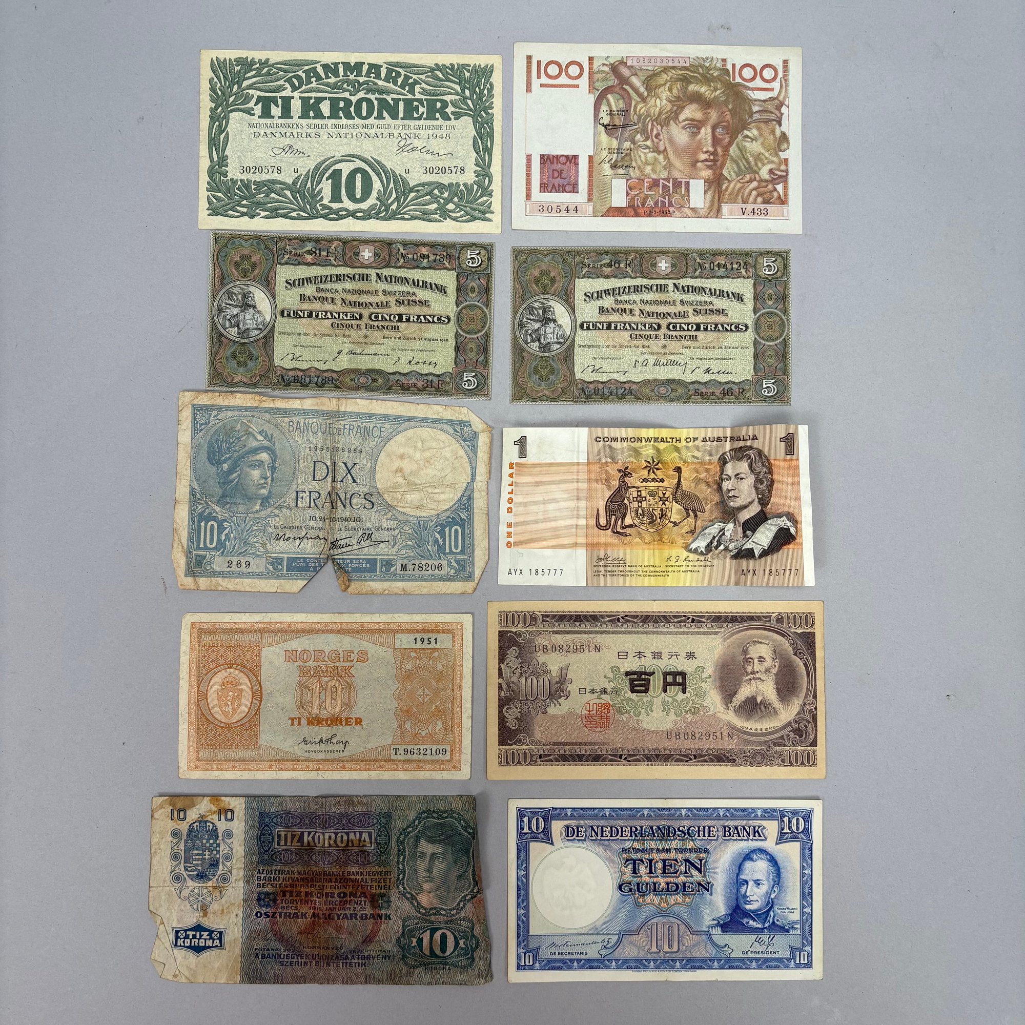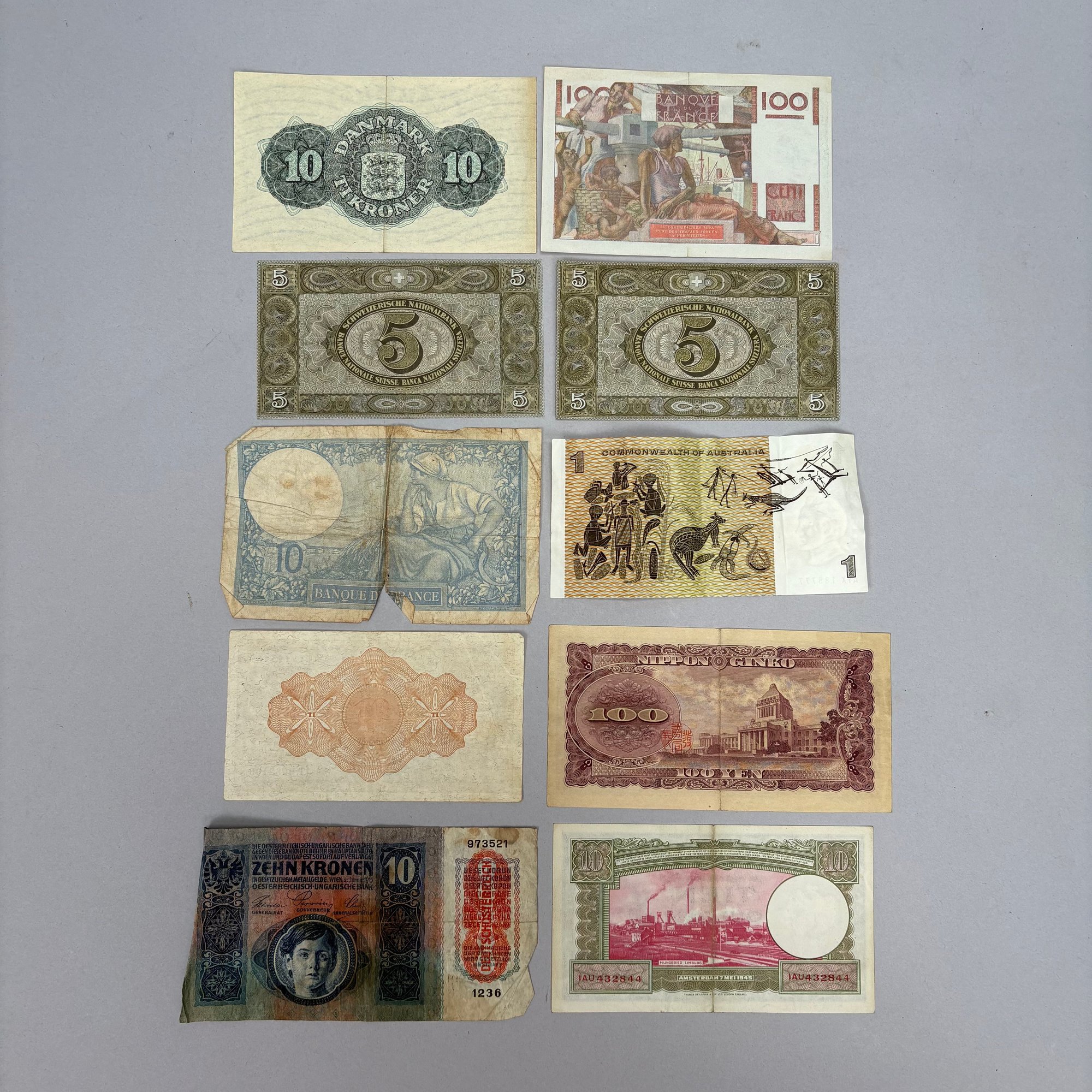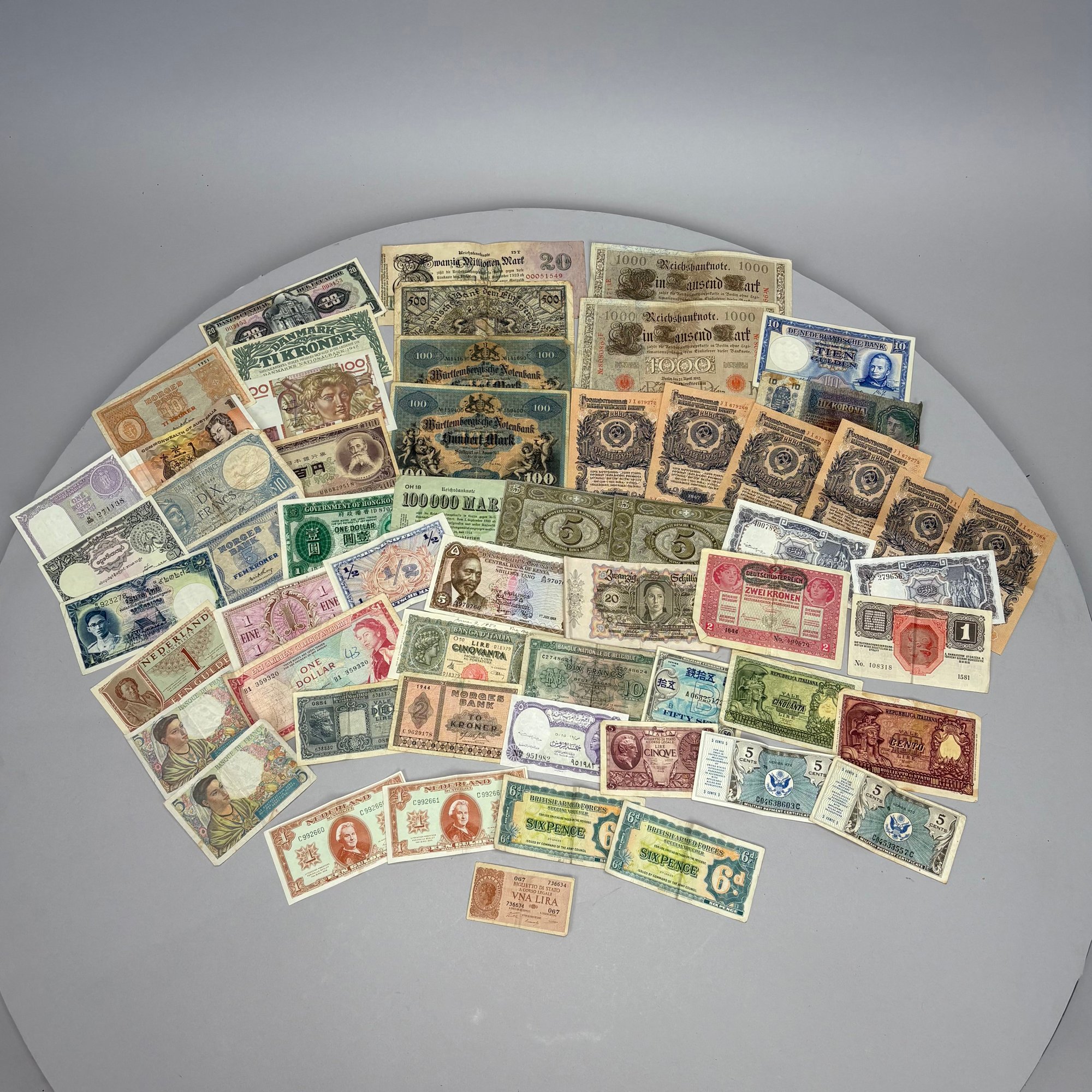Fifty-Eight Assorted World Paper Currencies. Including Russian, German, French, Danish, Italian and Australian examples.