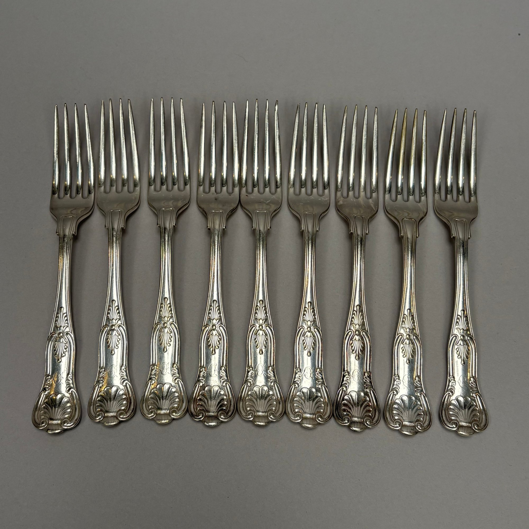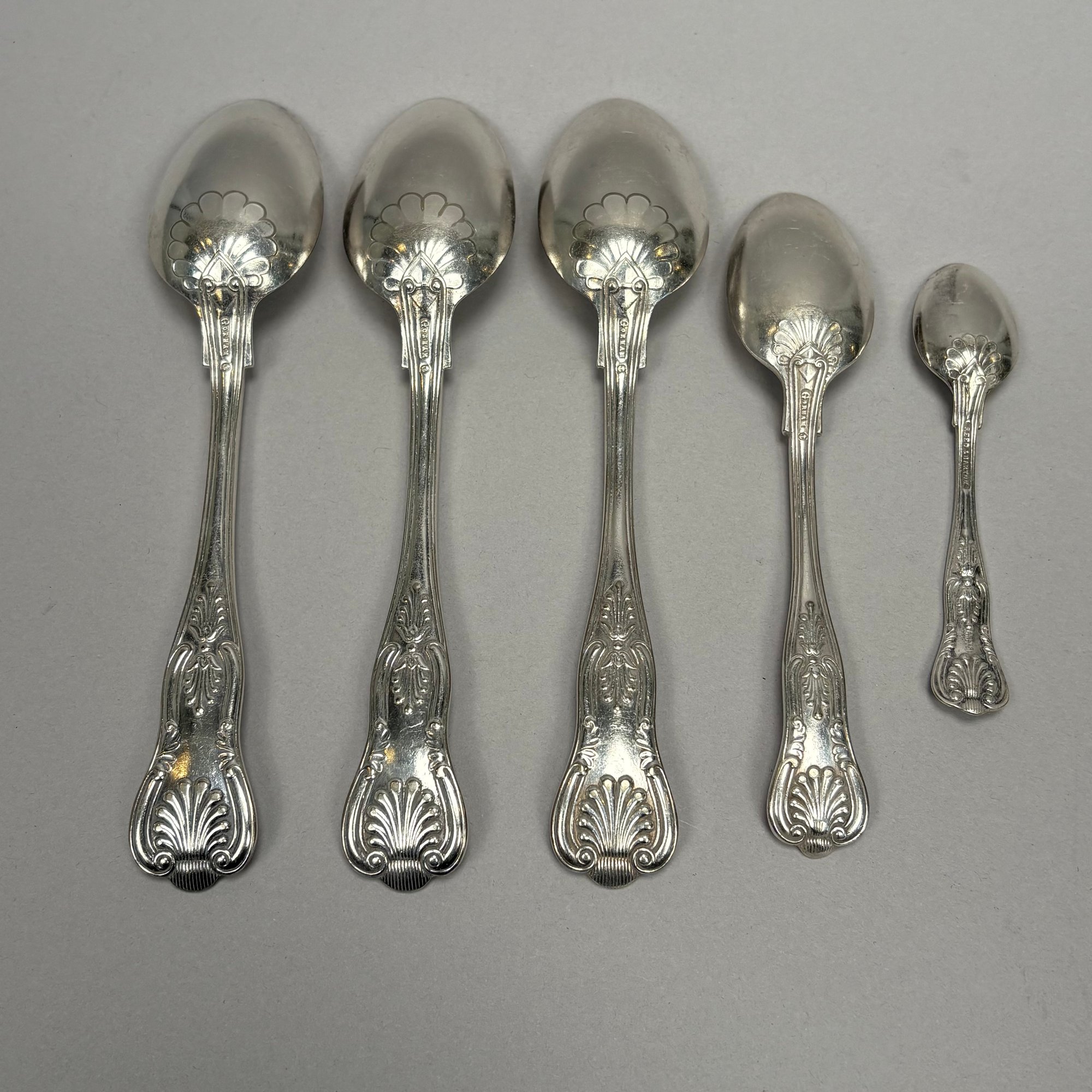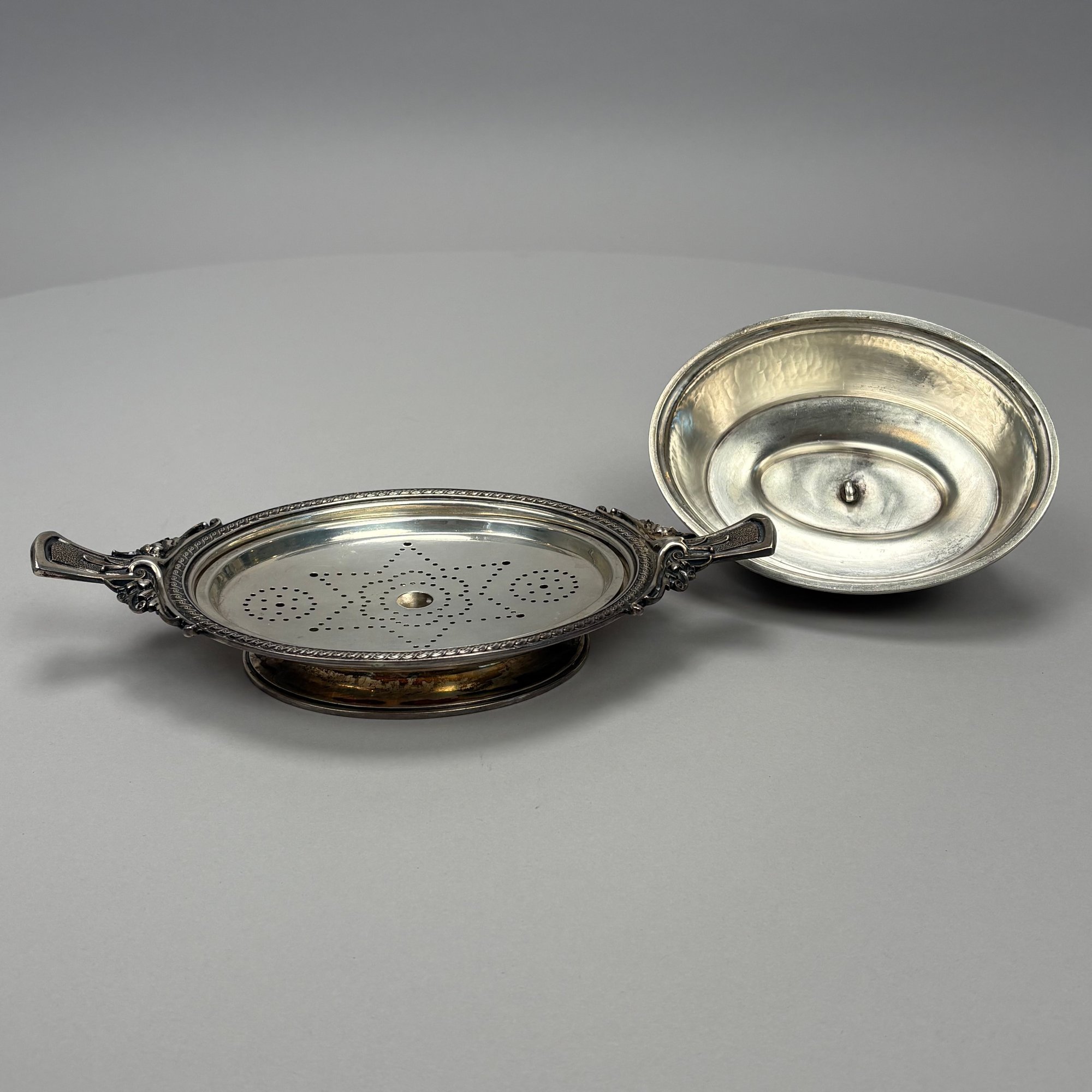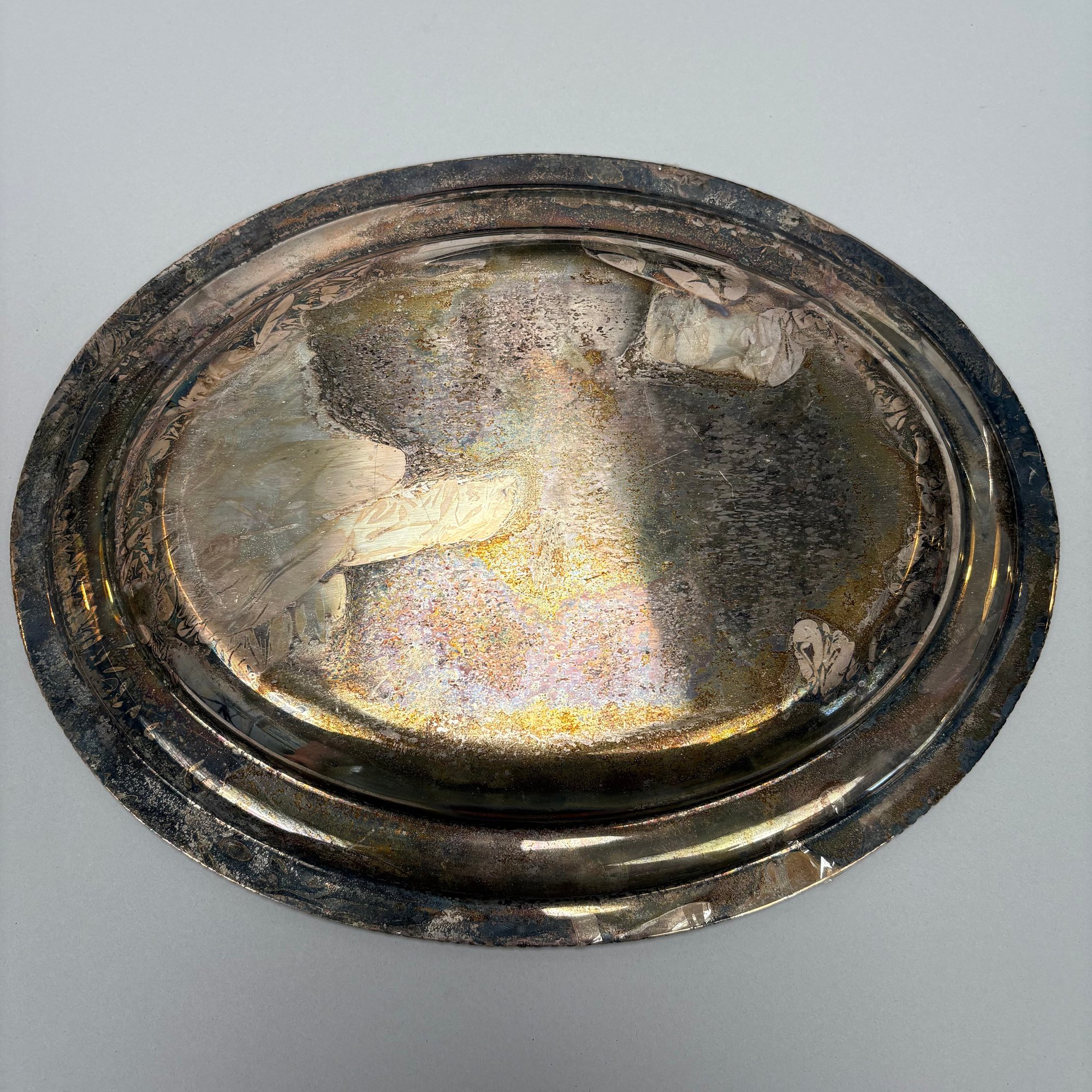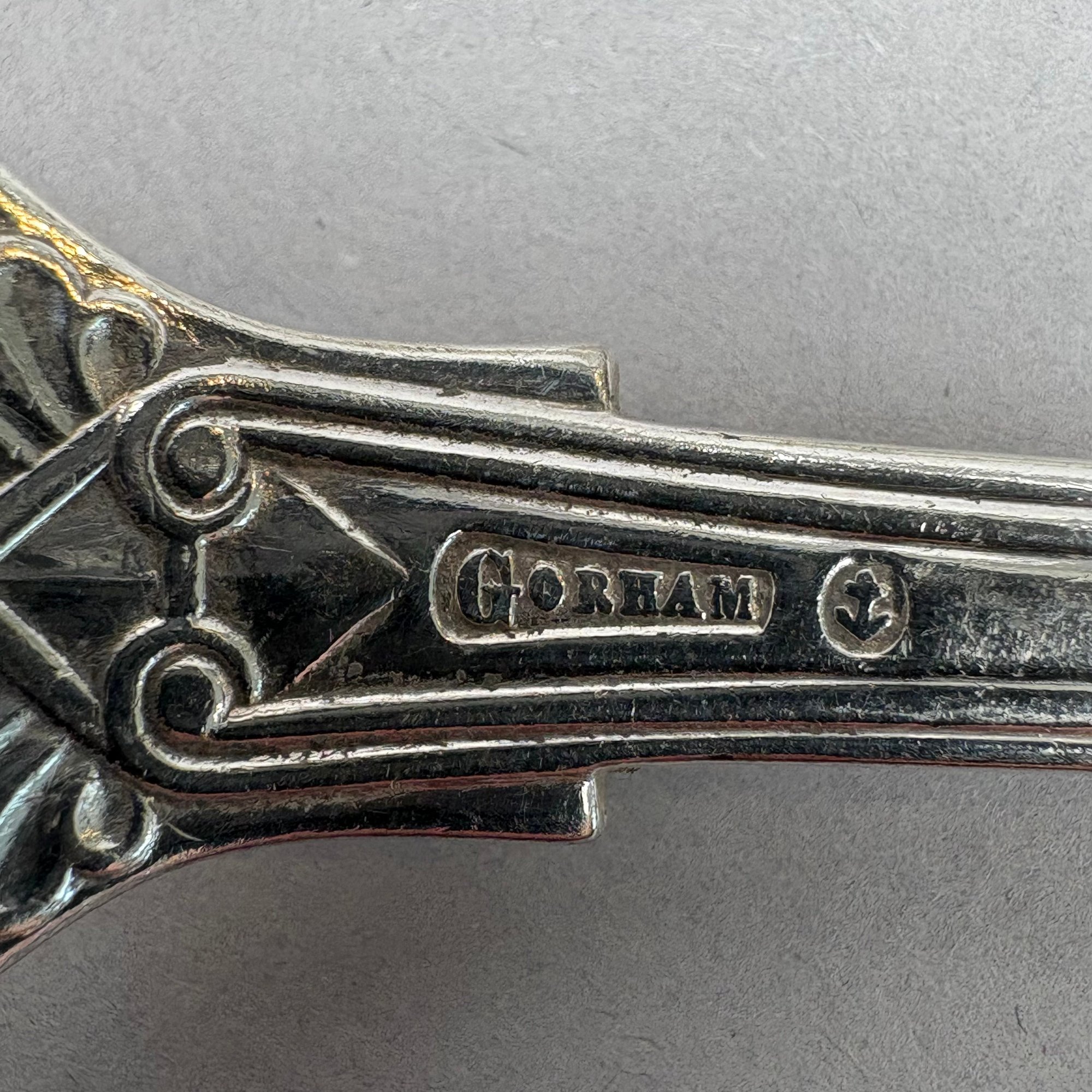 Five American and English Silverplate Tablewares and a Regency Silverplate Meat Dome. The silverplate comprising a set of King's pattern flatware with three cream soup spoons, nine dinner forks, one teaspoon and one demitasse spoon, and a butter dish and cover in Renaissance Revival style, all Gorham Mfg. Co.; and a silverplate sporting ashtray with duck handle, a pepper caster or mill and a pair of weighted silver candlesticks, the Regency Sheffield Plate armorial meat dome and liner within gadrooned rims. (20)