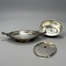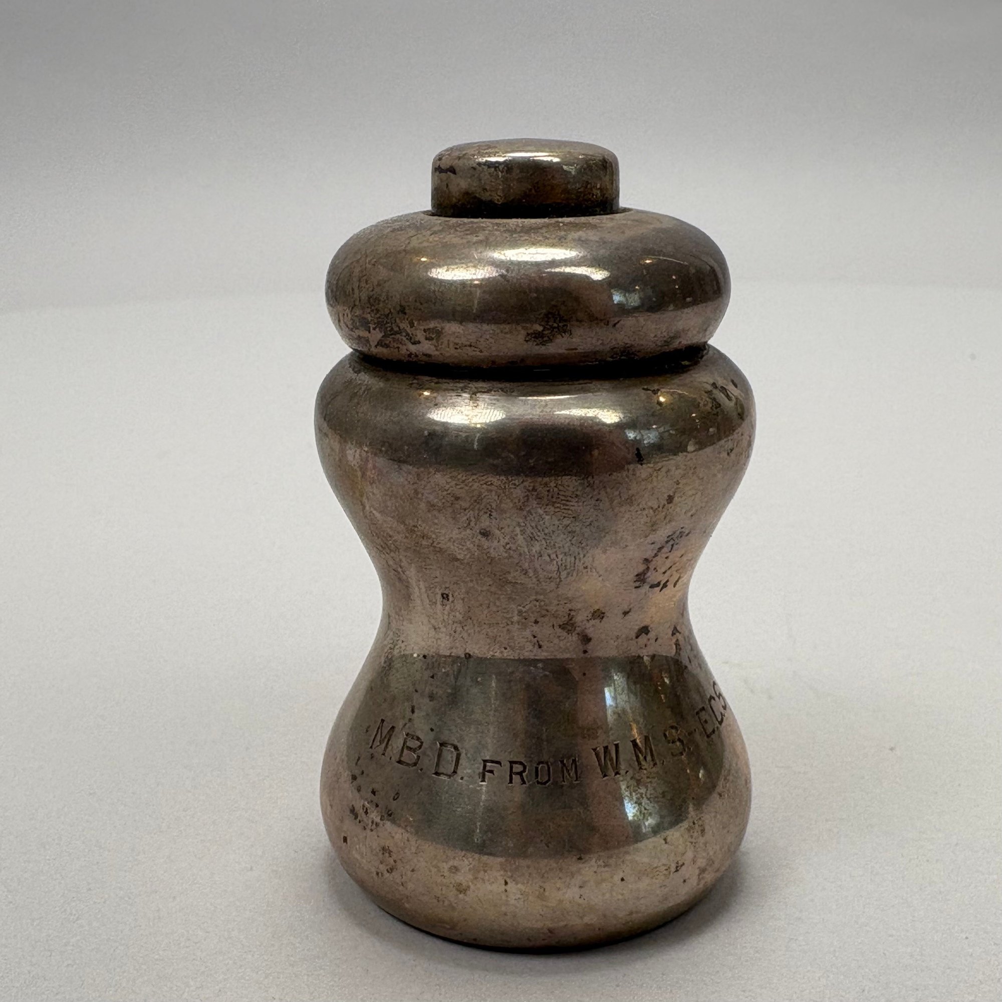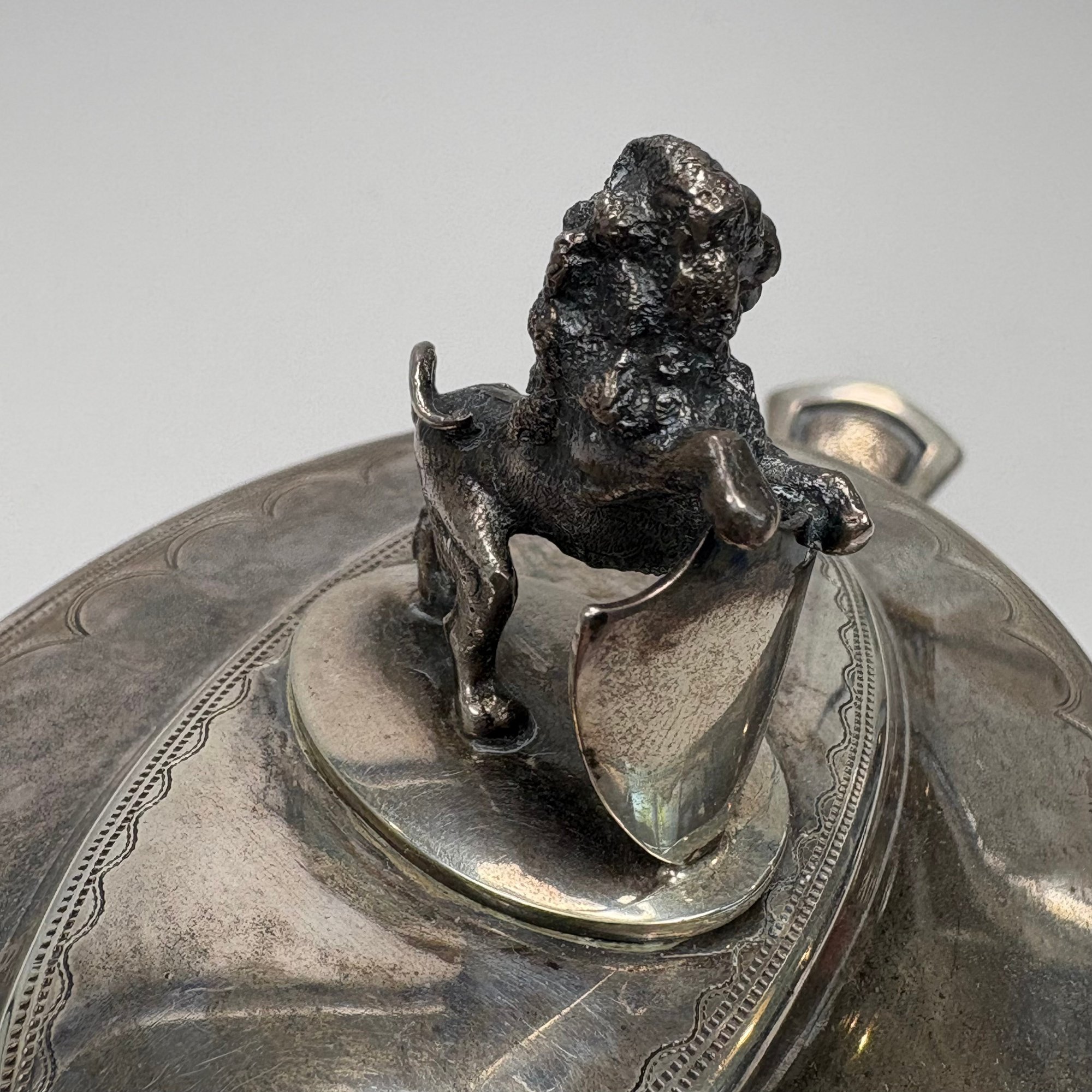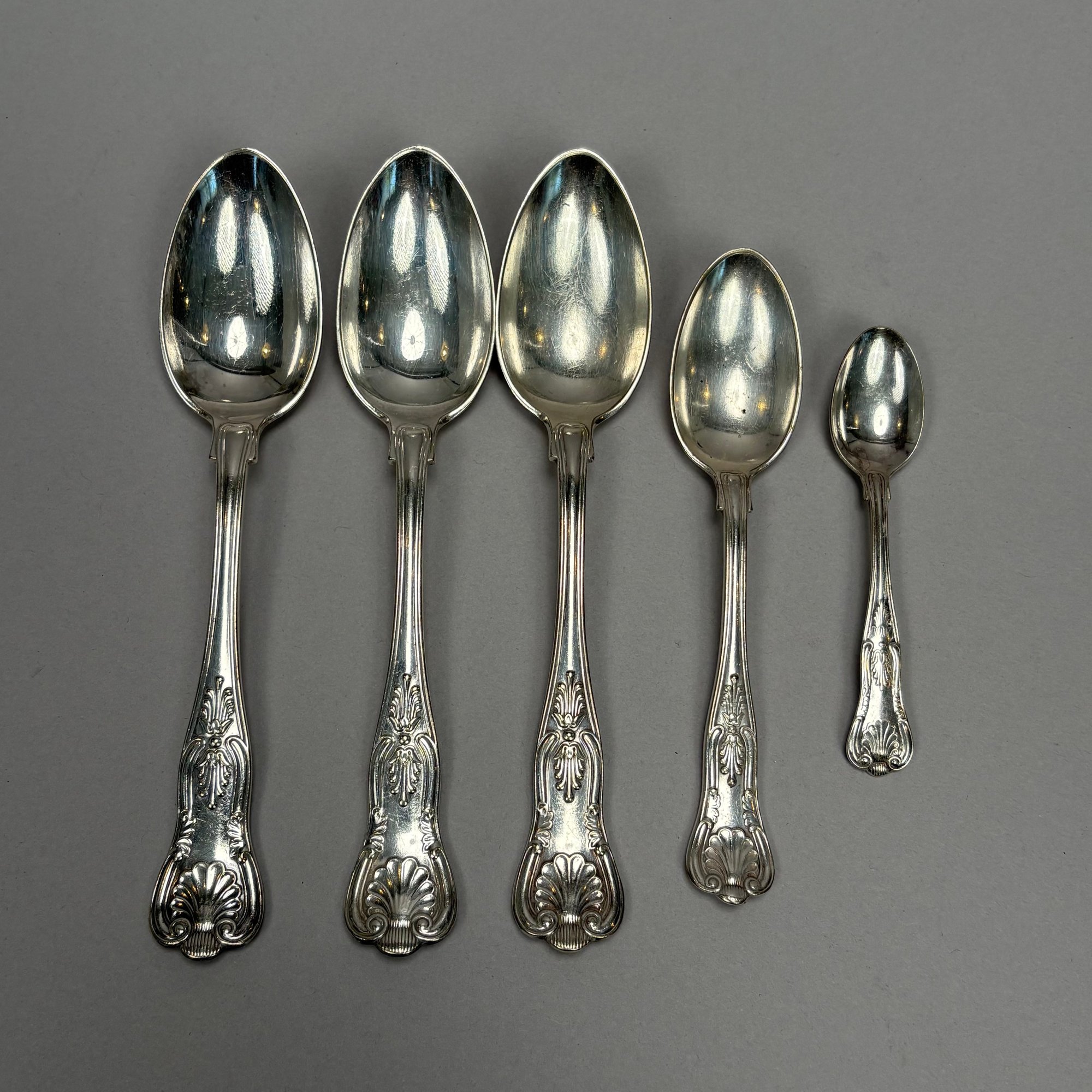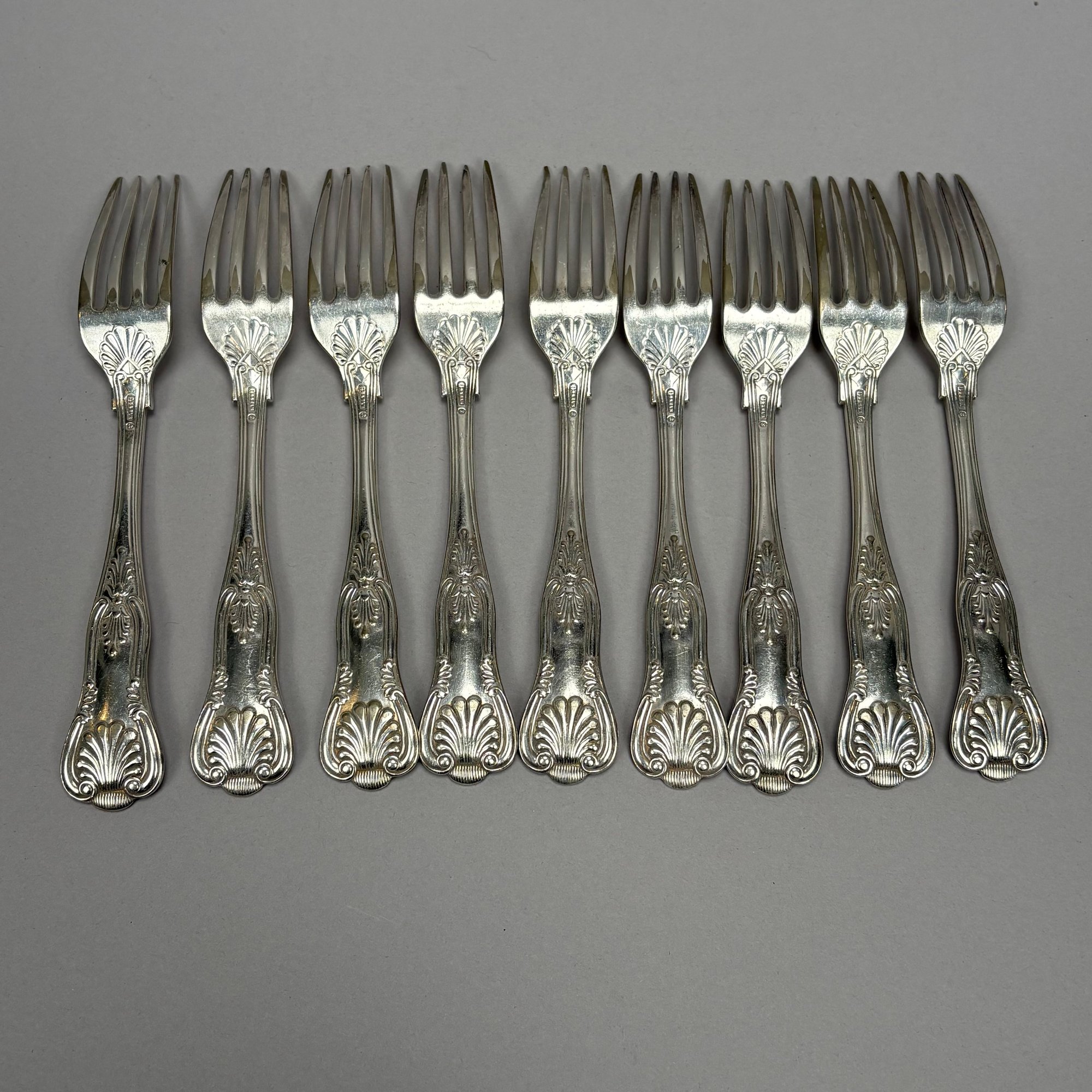 Five American and English Silverplate Tablewares and a Regency Silverplate Meat Dome. The silverplate comprising a set of King's pattern flatware with three cream soup spoons, nine dinner forks, one teaspoon and one demitasse spoon, and a butter dish and cover in Renaissance Revival style, all Gorham Mfg. Co.; and a silverplate sporting ashtray with duck handle, a pepper caster or mill and a pair of weighted silver candlesticks, the Regency Sheffield Plate armorial meat dome and liner within gadrooned rims. (20)