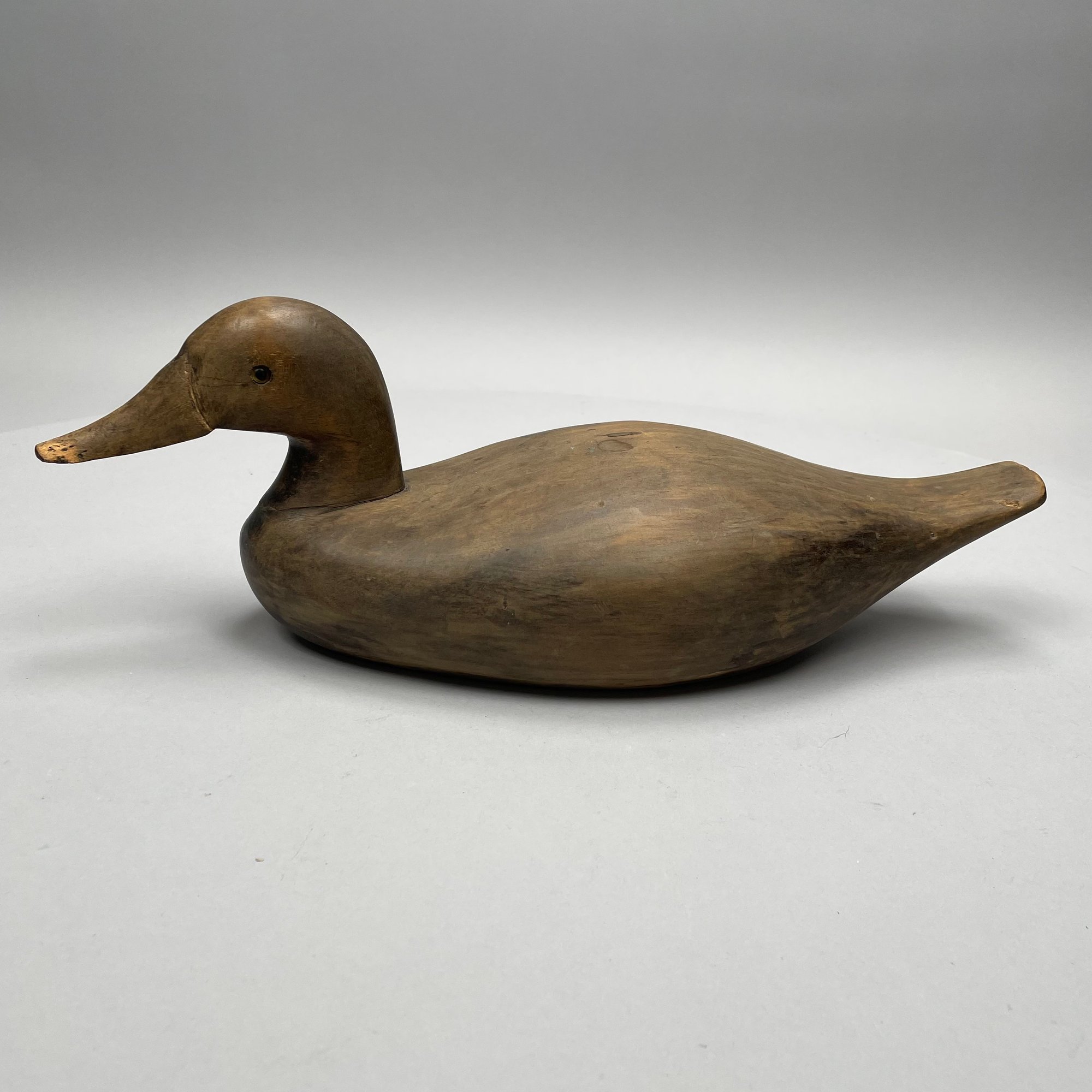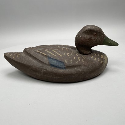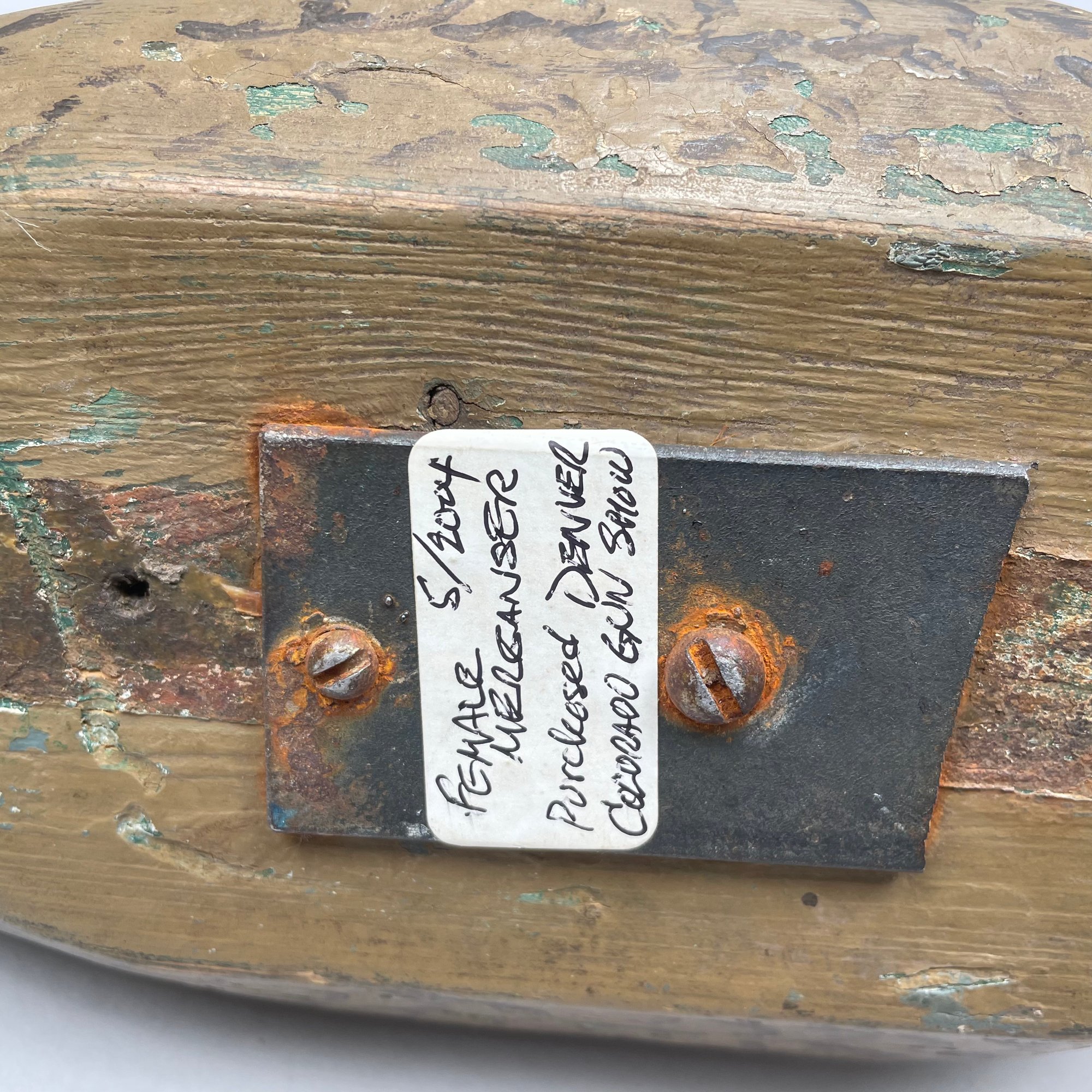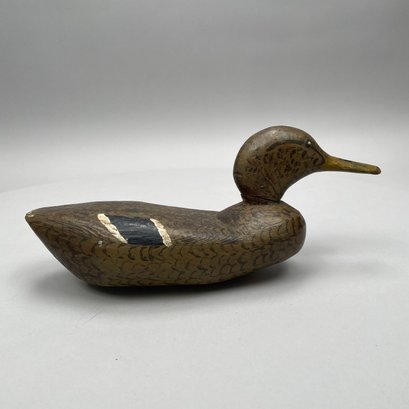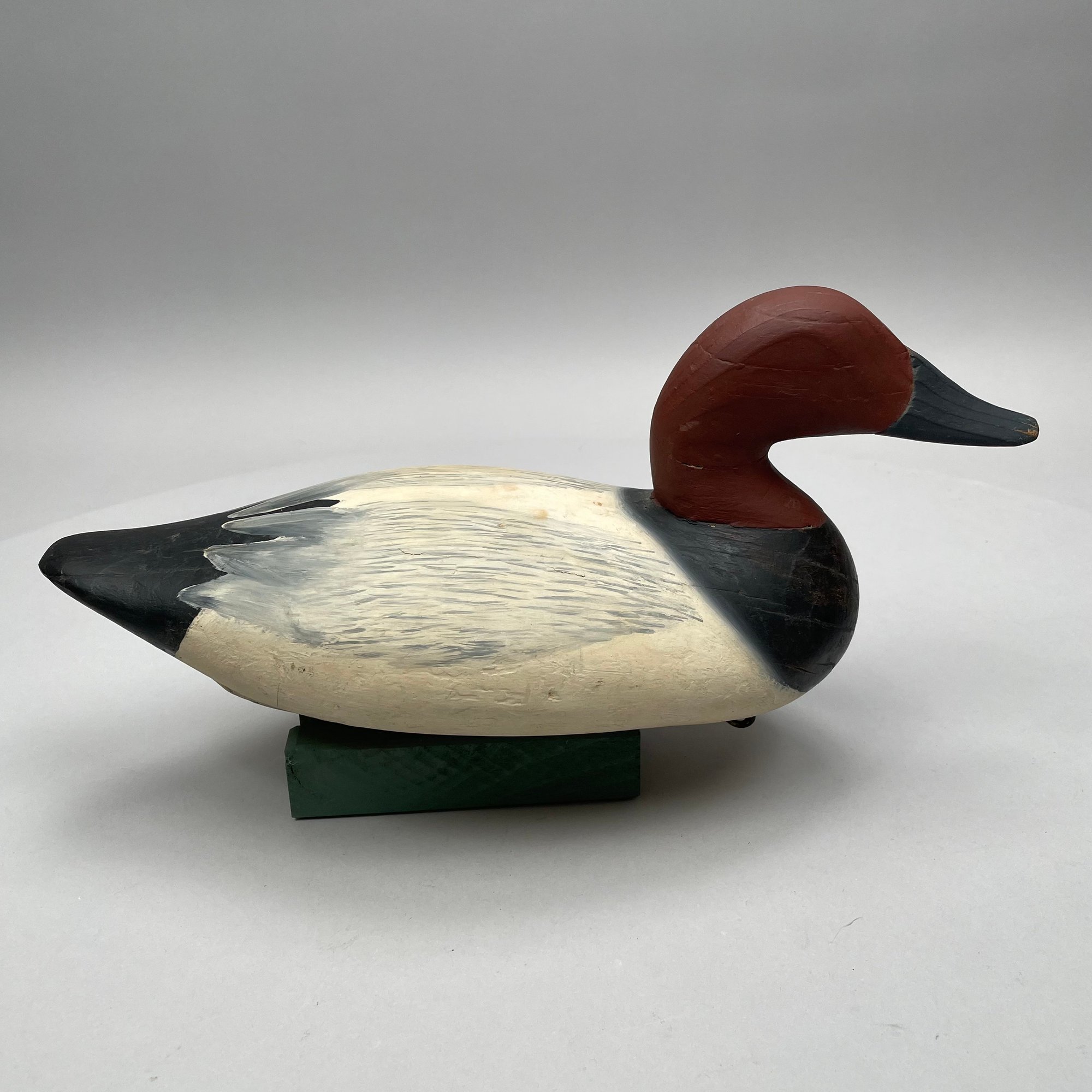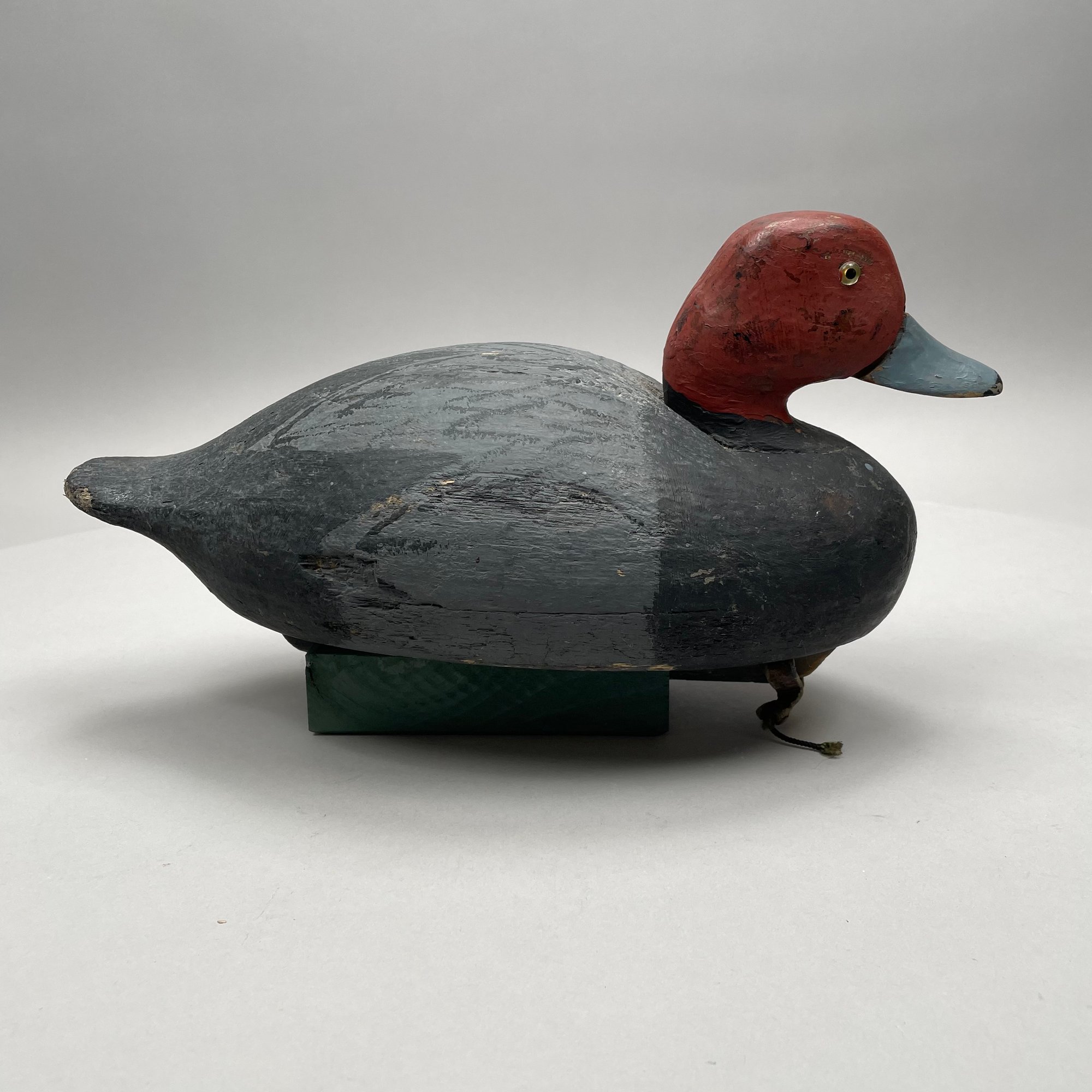 Five American Carved and Painted Duck Decoys. Three with glass eyes, including a female Merganser with tack eyes, purchased at the Denver, Colorado Gun Show; and a Redhead Drake, purchased at Wild Fowler, Old Saybrook, Connecticut, circa 1947.