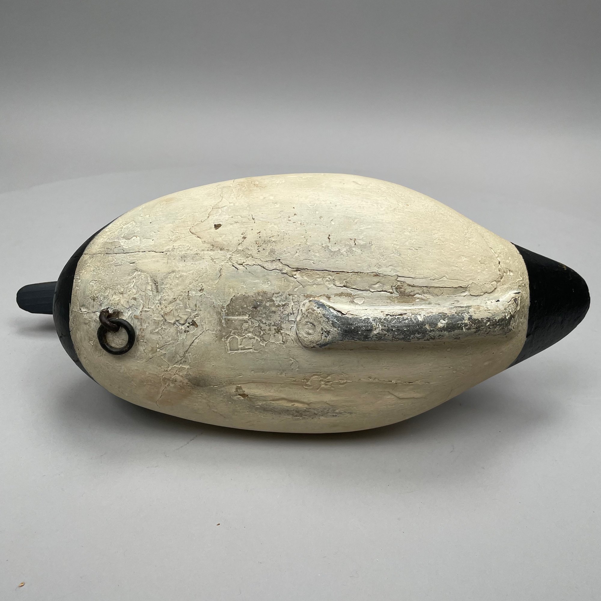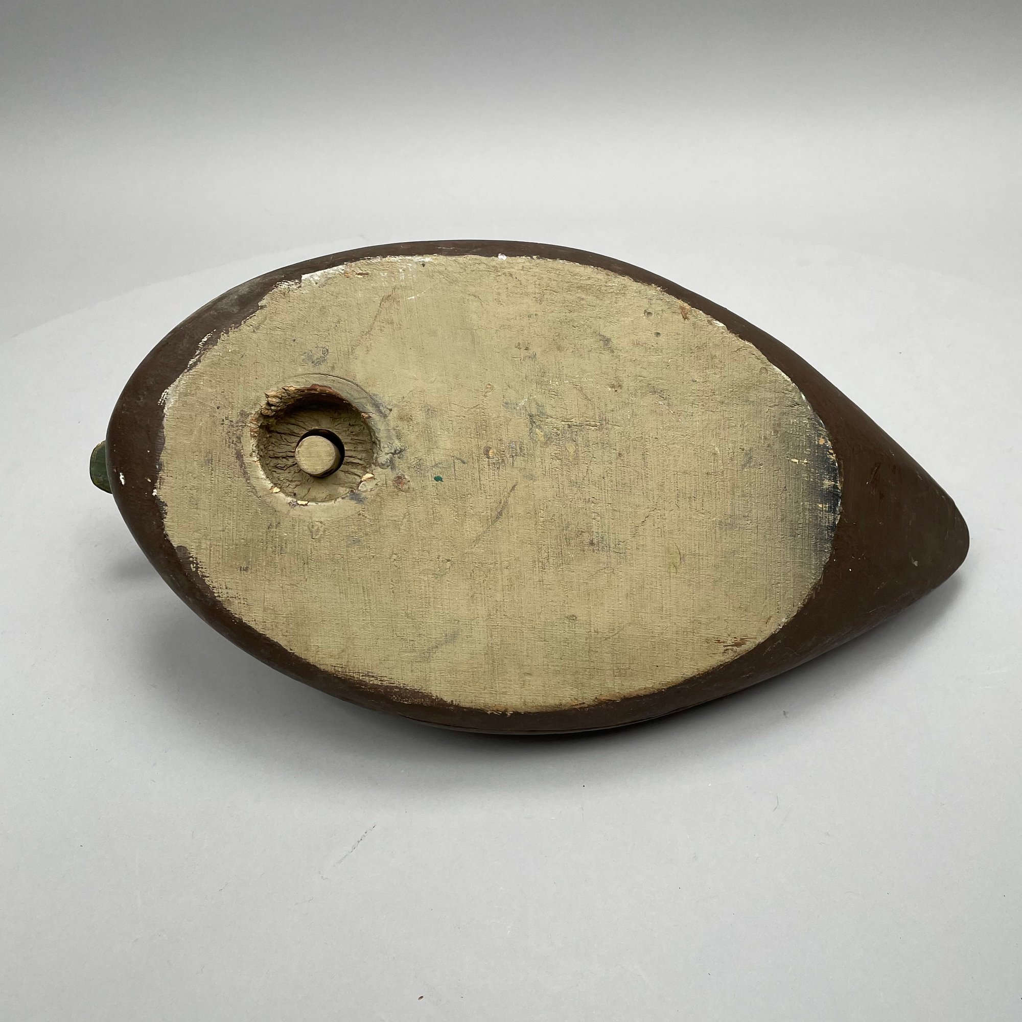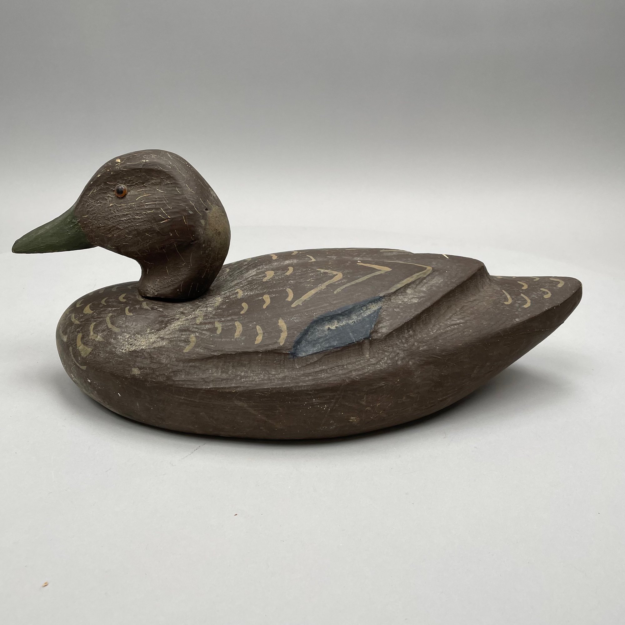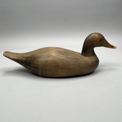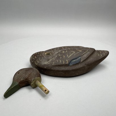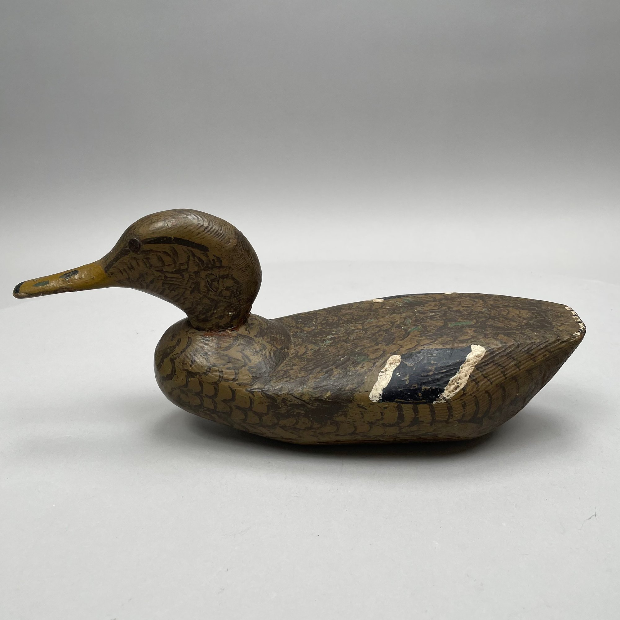 Five American Carved and Painted Duck Decoys. Three with glass eyes, including a female Merganser with tack eyes, purchased at the Denver, Colorado Gun Show; and a Redhead Drake, purchased at Wild Fowler, Old Saybrook, Connecticut, circa 1947.