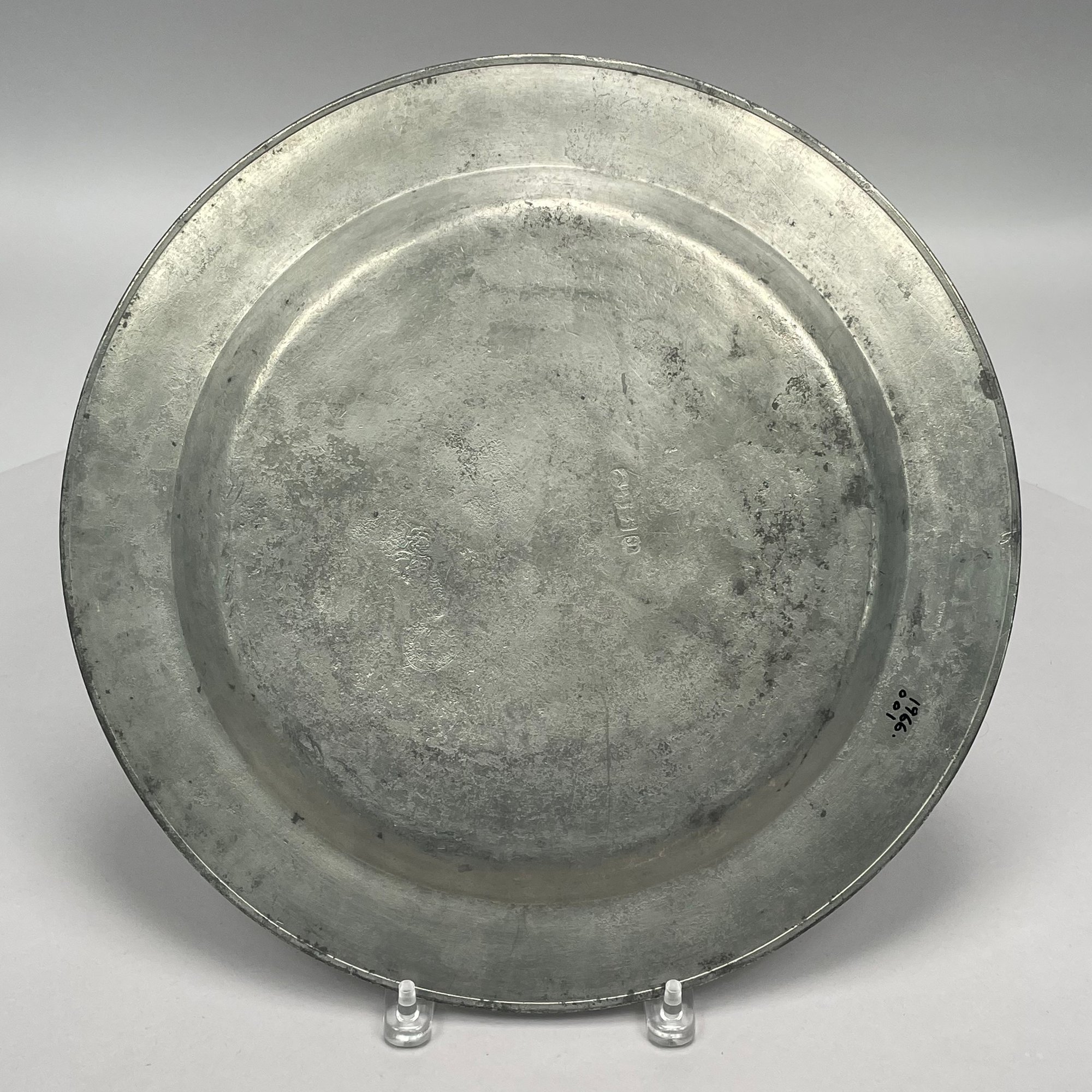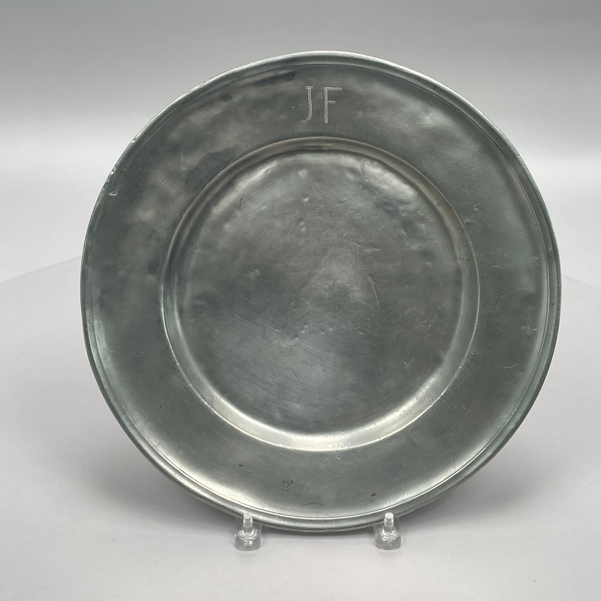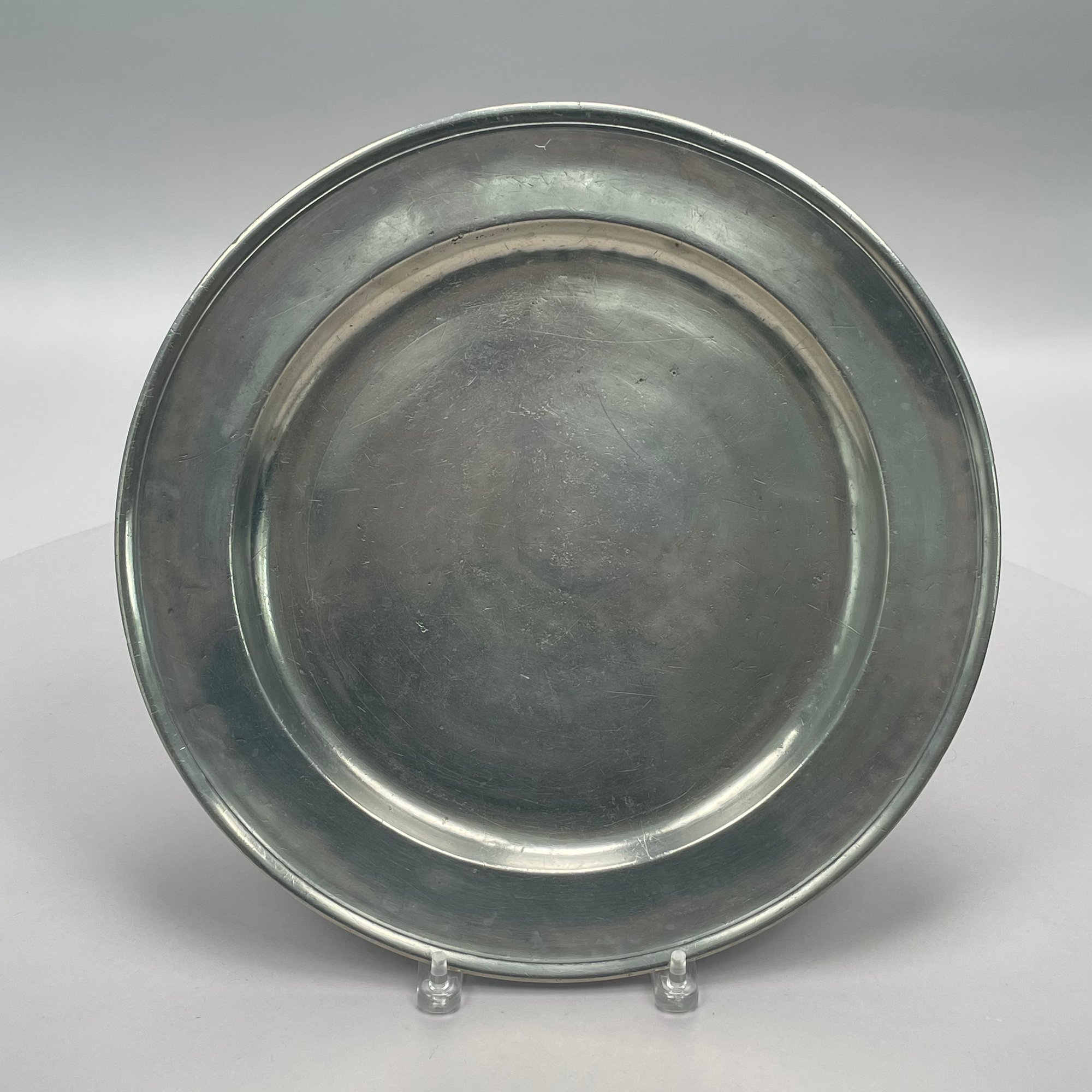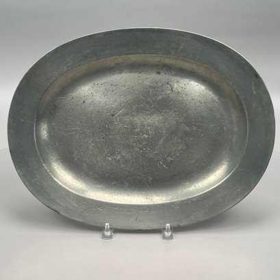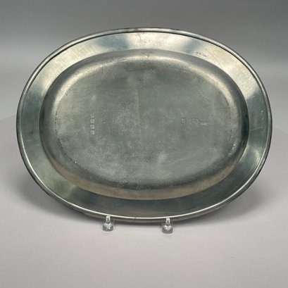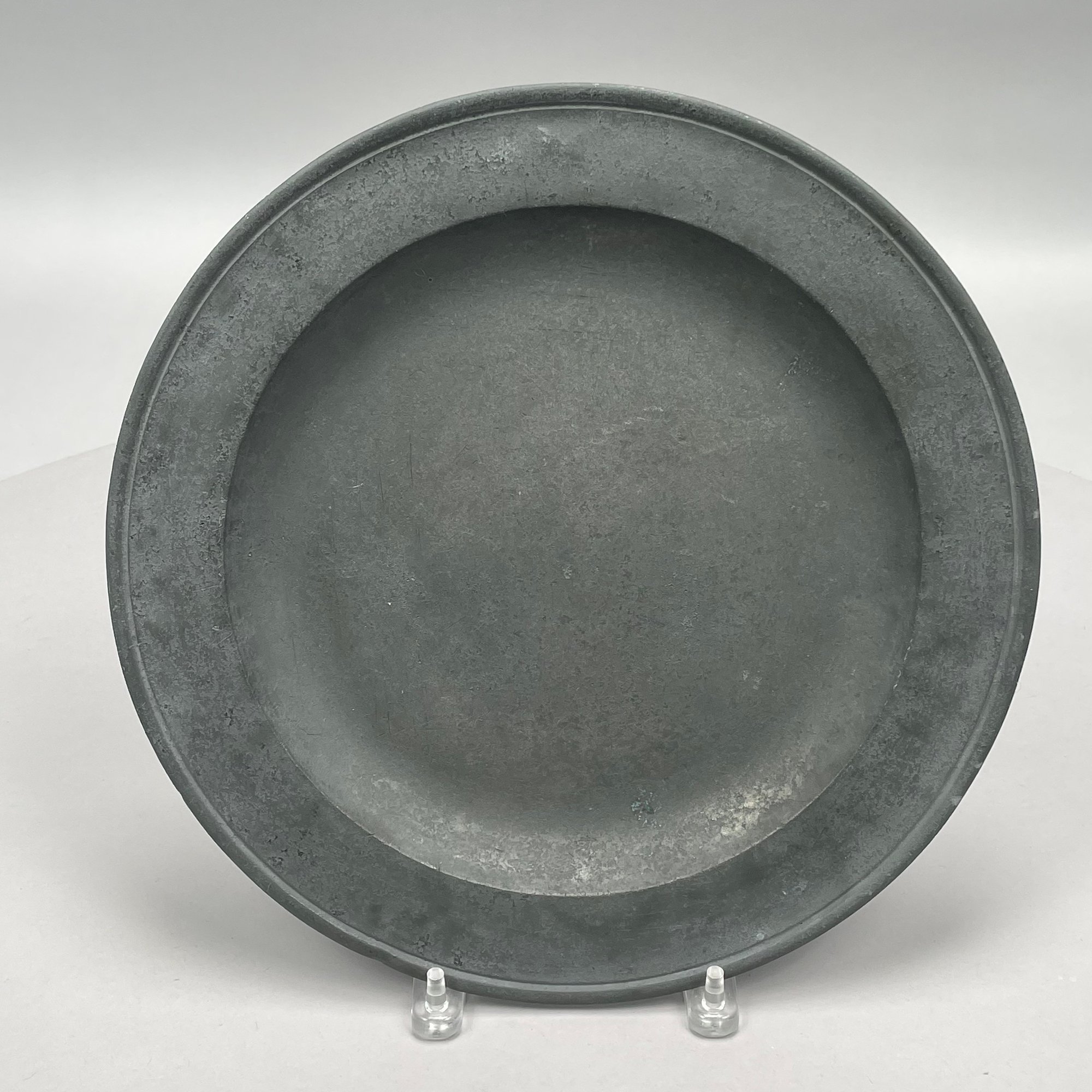 Five British Pewter Chargers and a Platter, Various Makers, Eighteenth and Nineteenth Century. Various touchmarks.