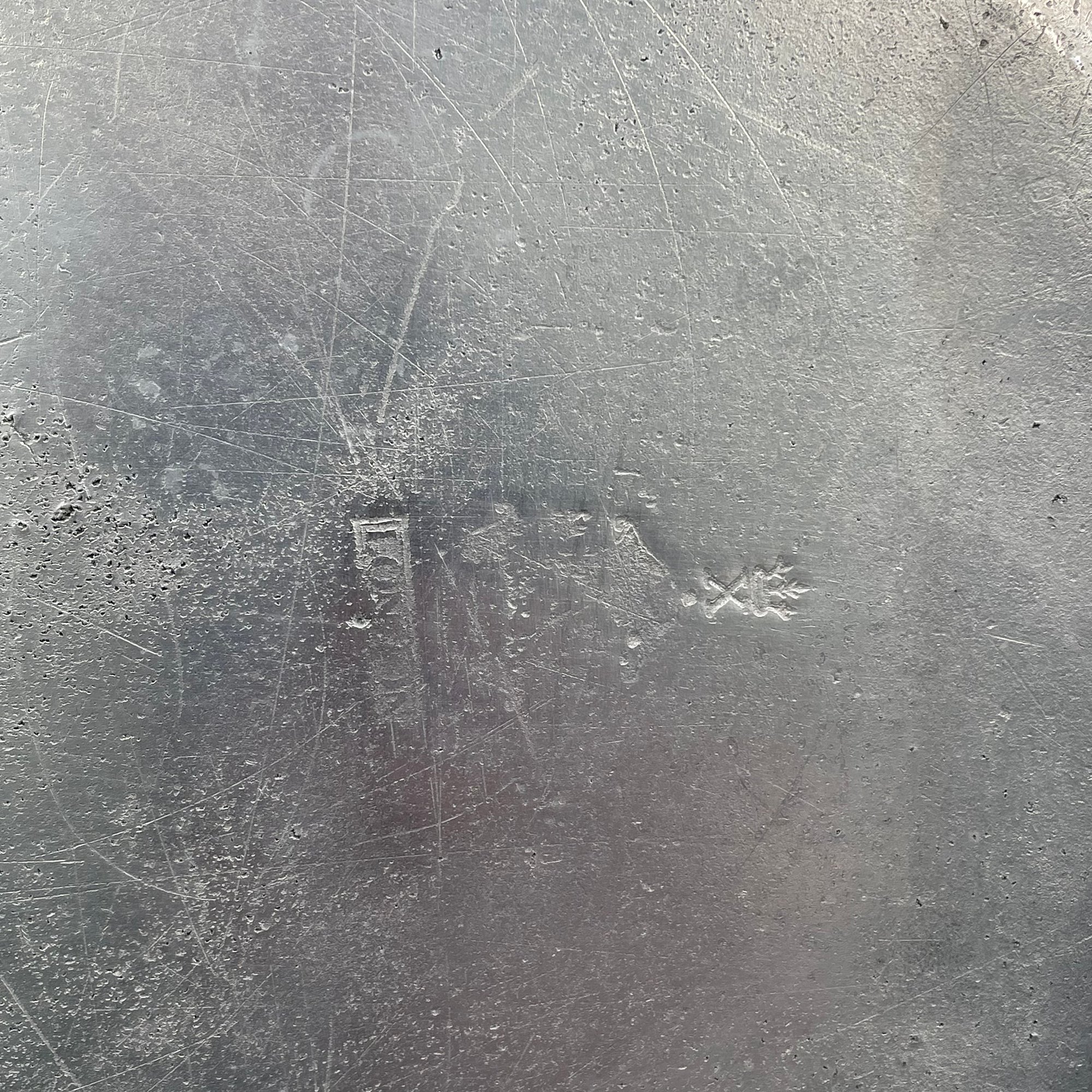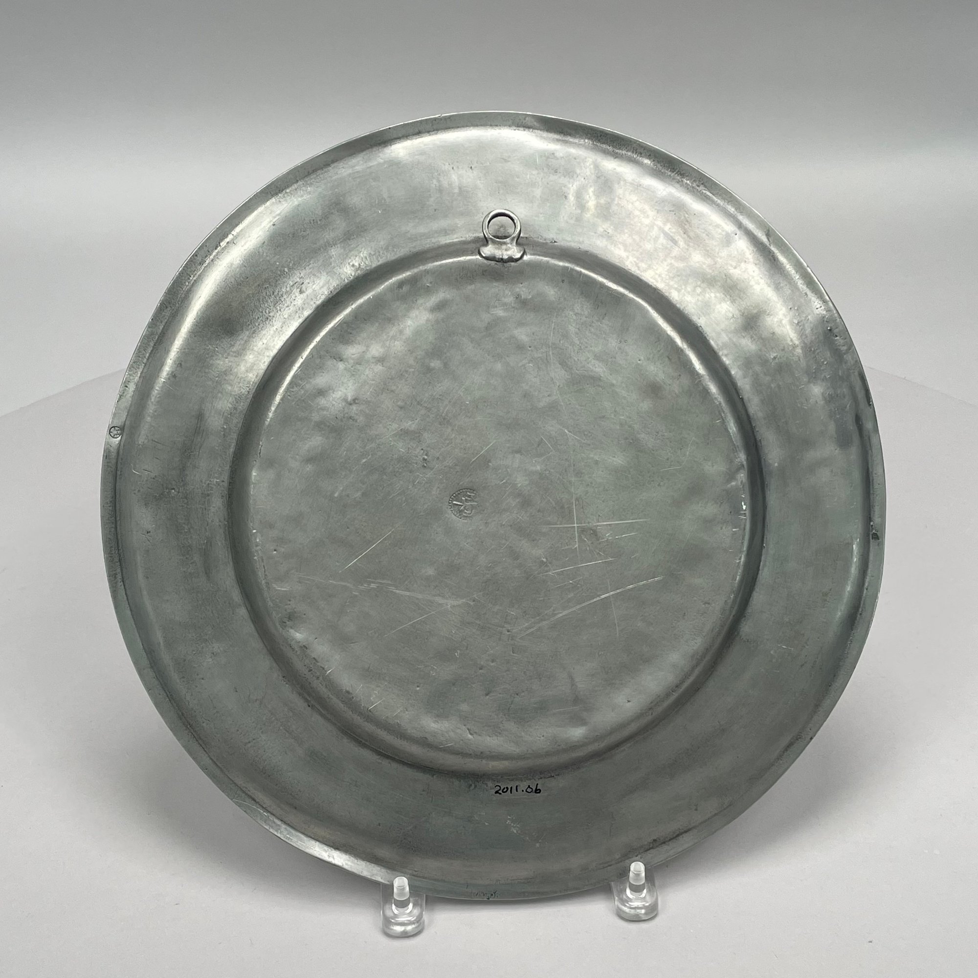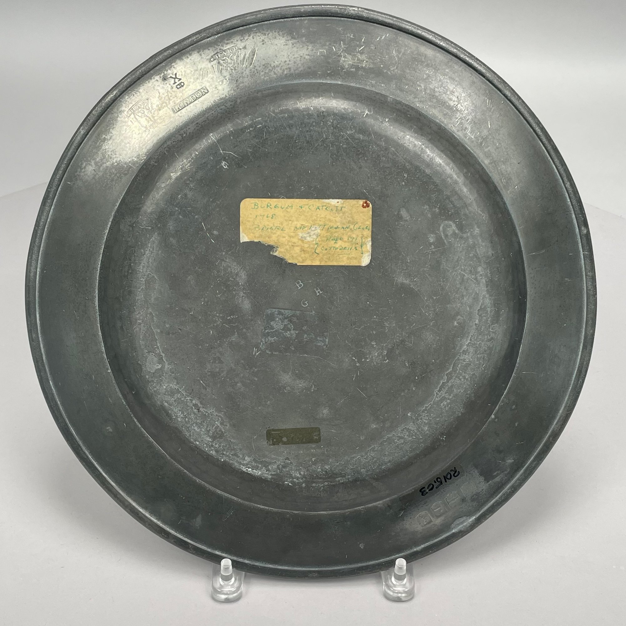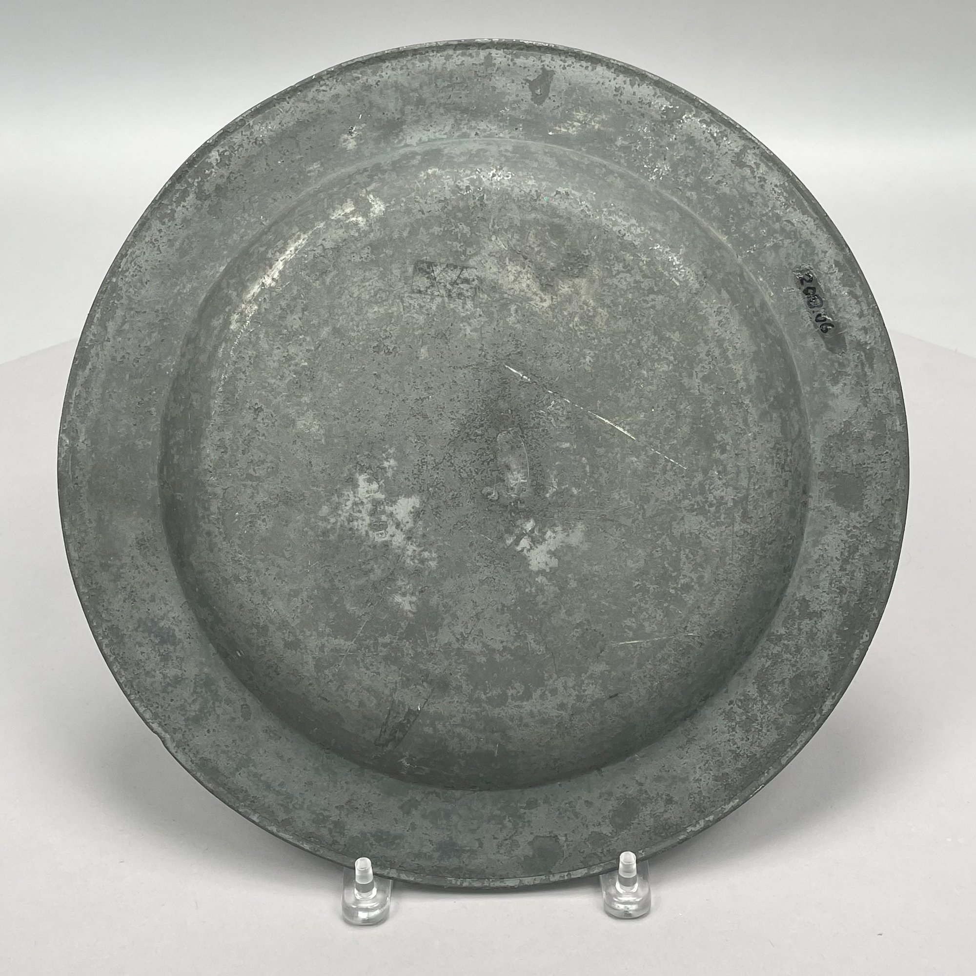 Five British Pewter Chargers and a Platter, Various Makers, Eighteenth and Nineteenth Century. Various touchmarks.