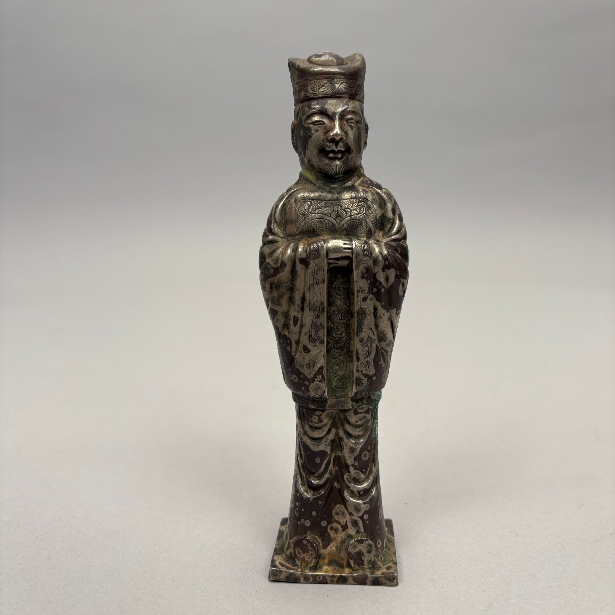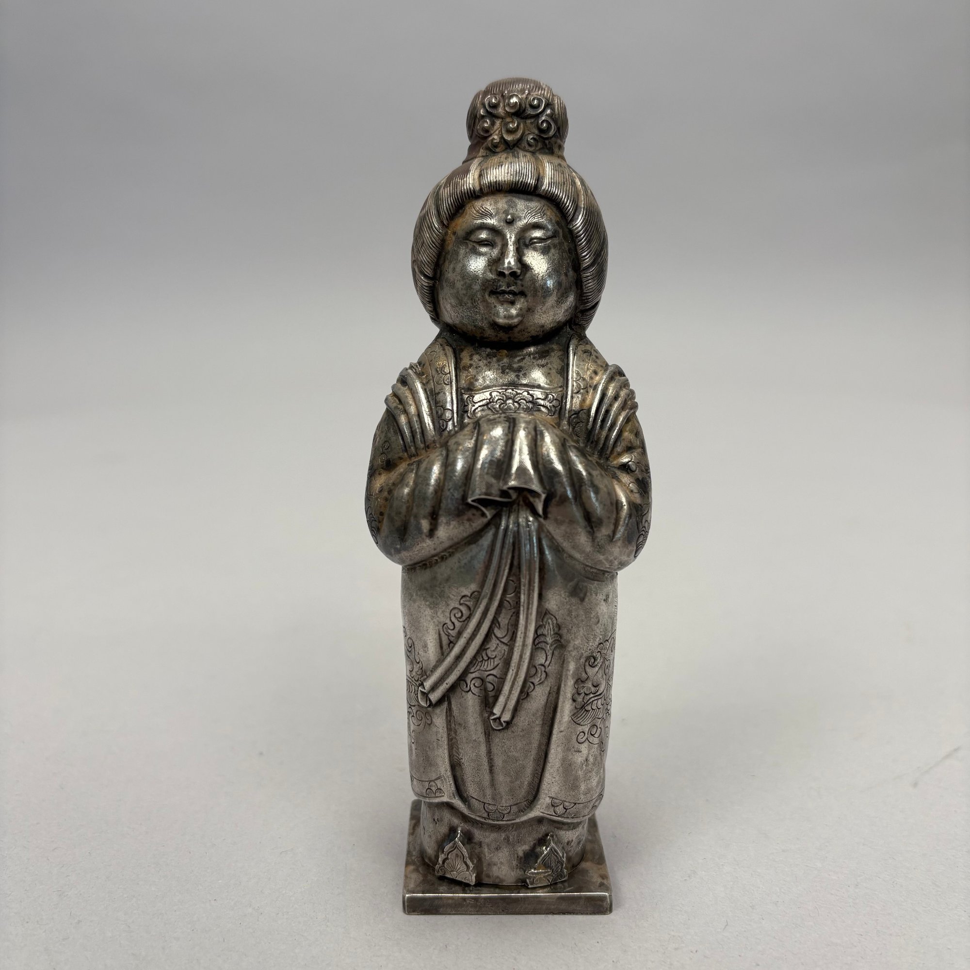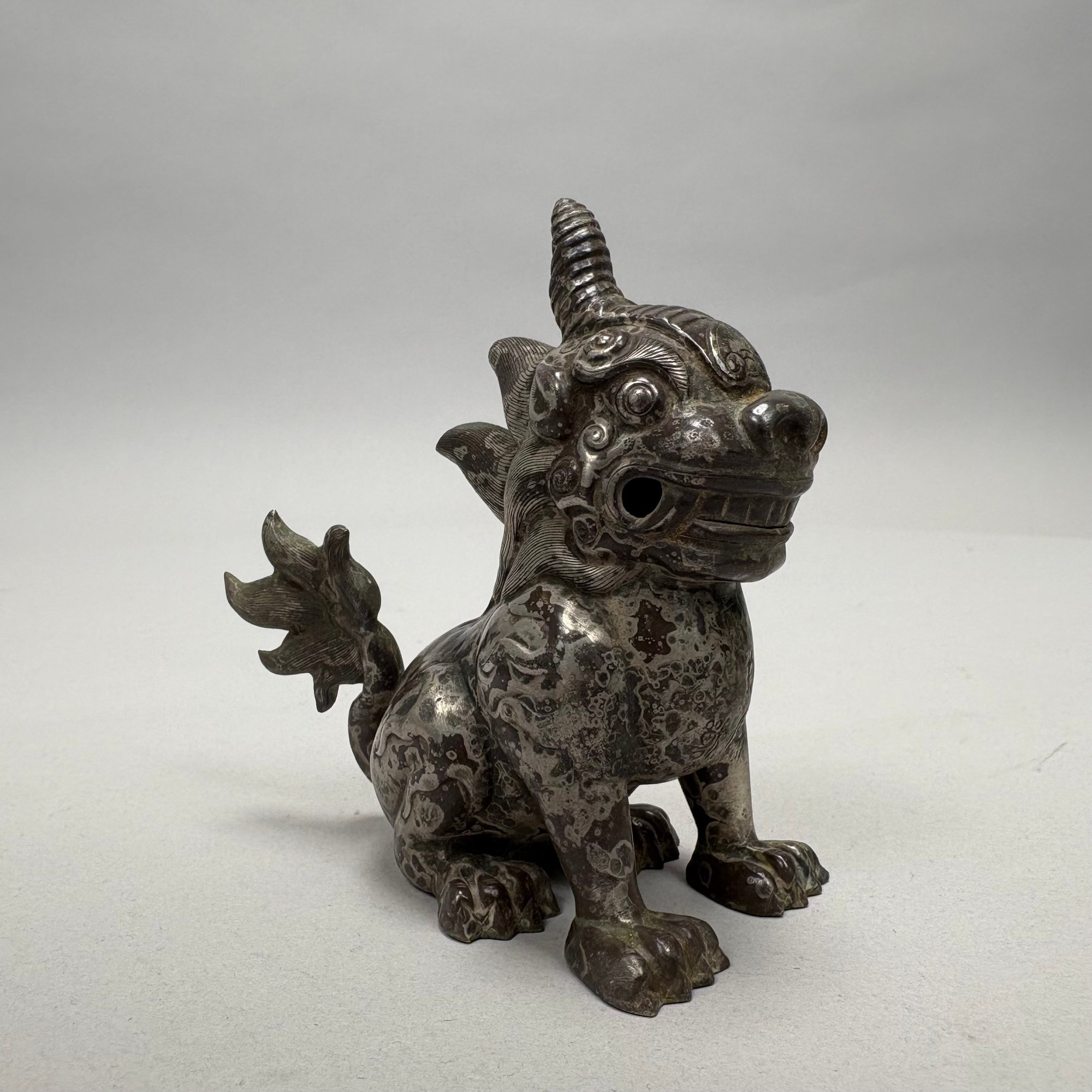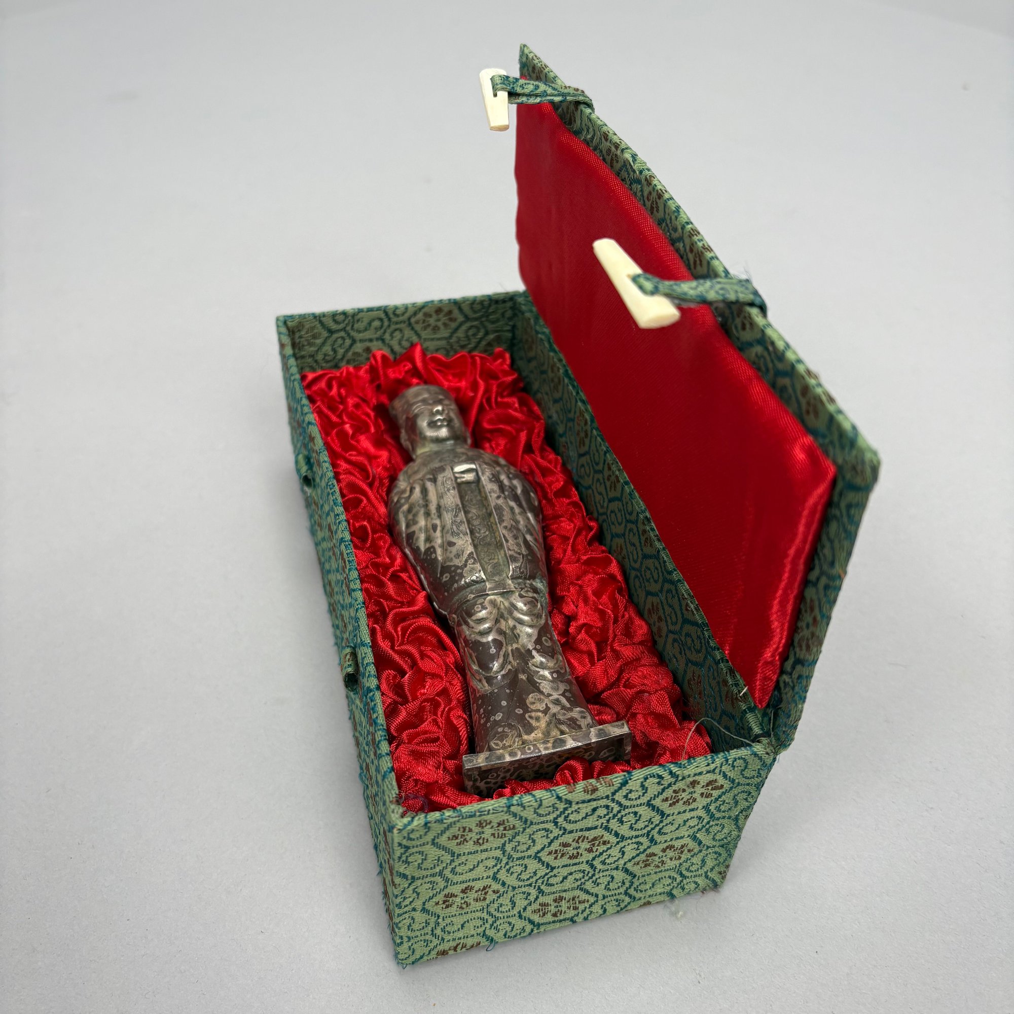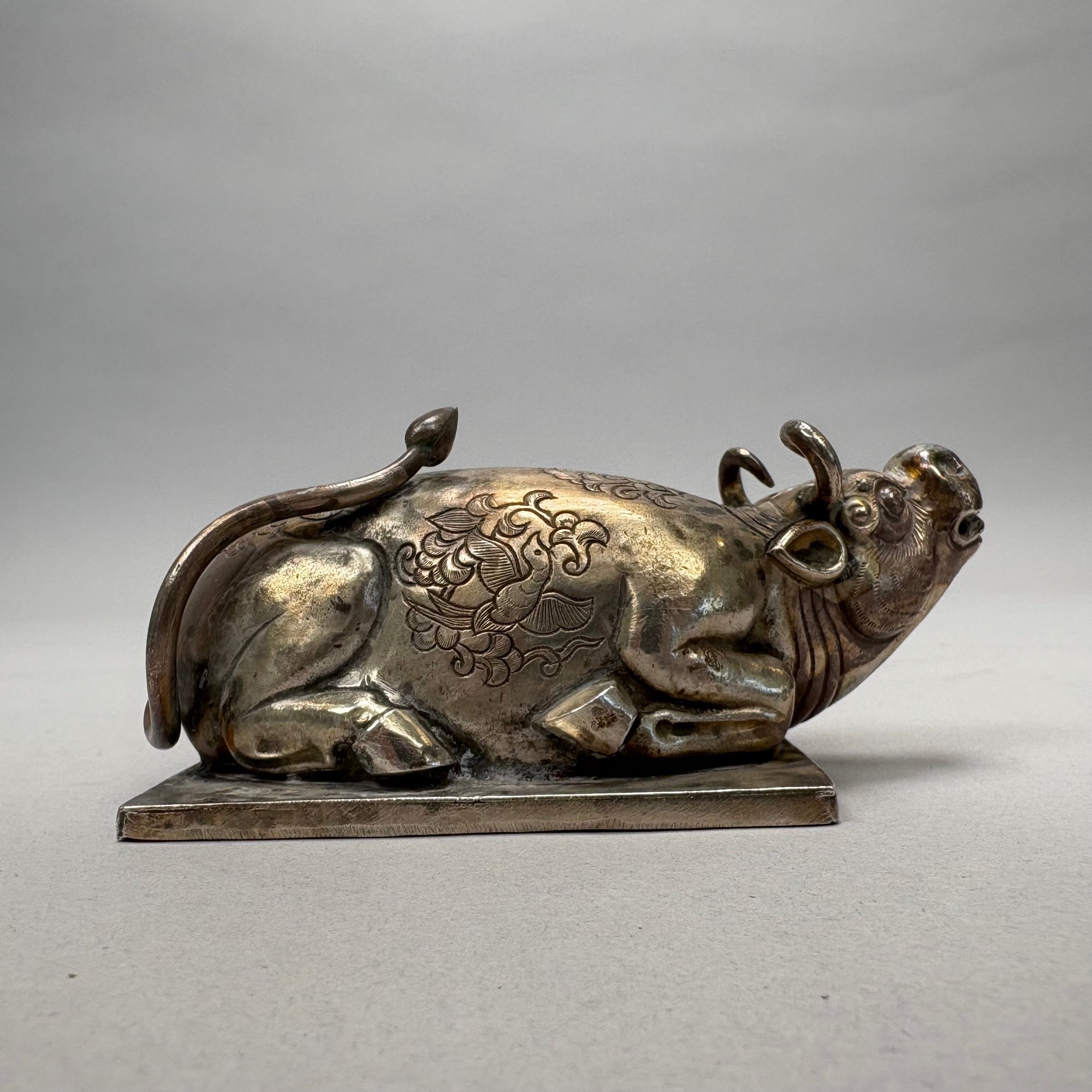 Five Chinese Silver Figures, Each with Fitted Box. Comprising a pig, water buffalo, Kylin, a figure wearing a Daoist topknot and a Daoist priest.