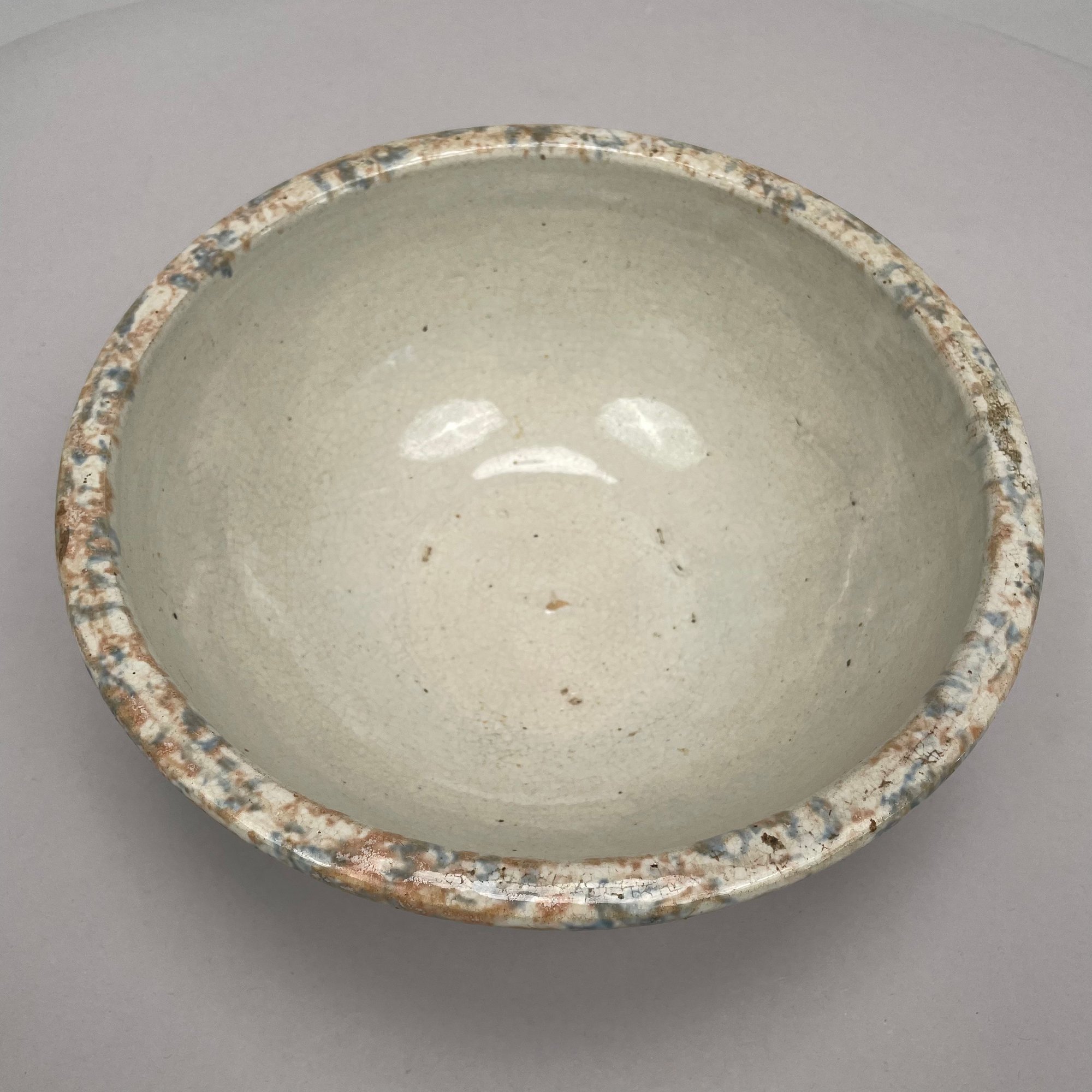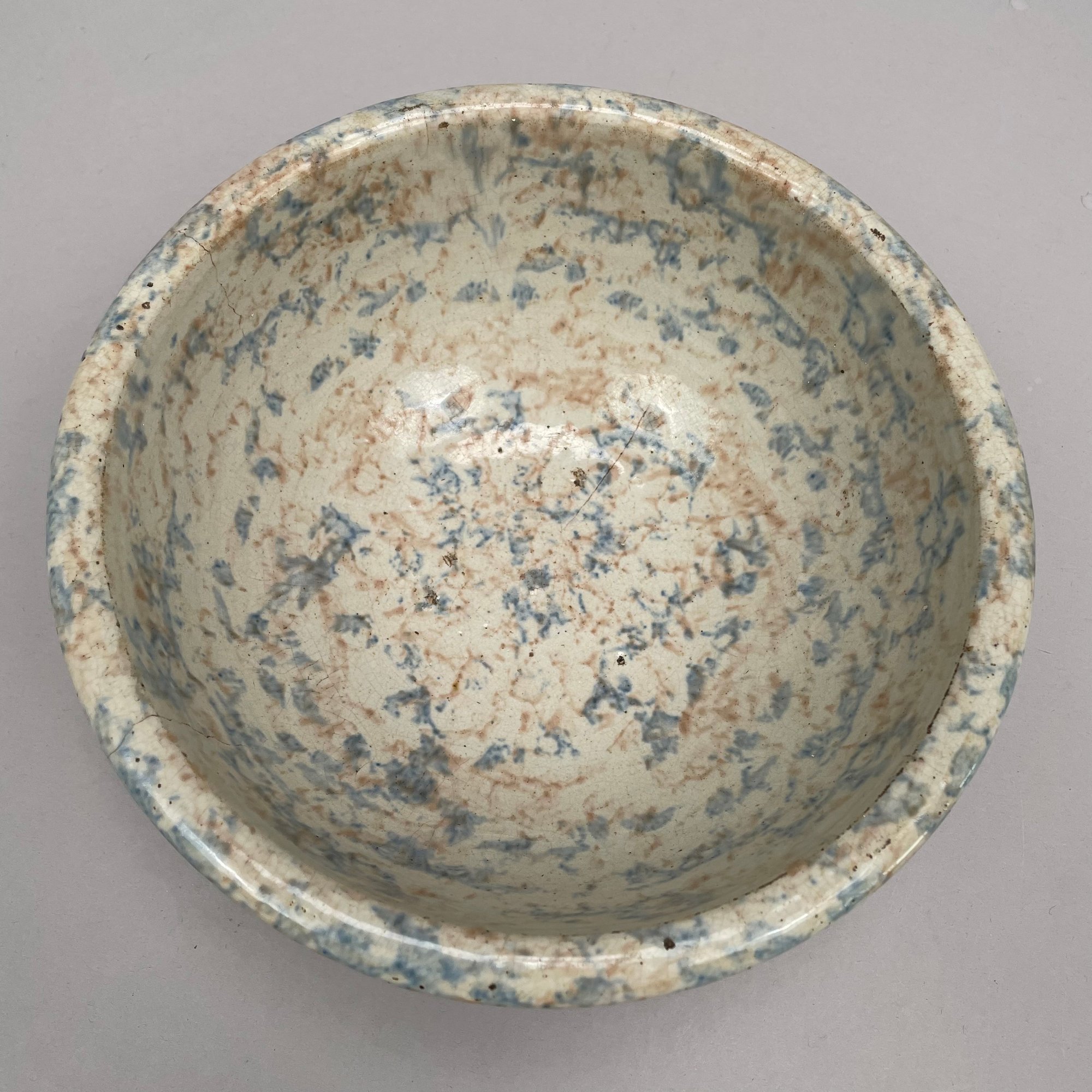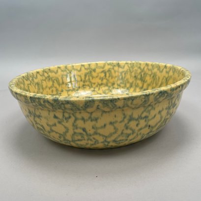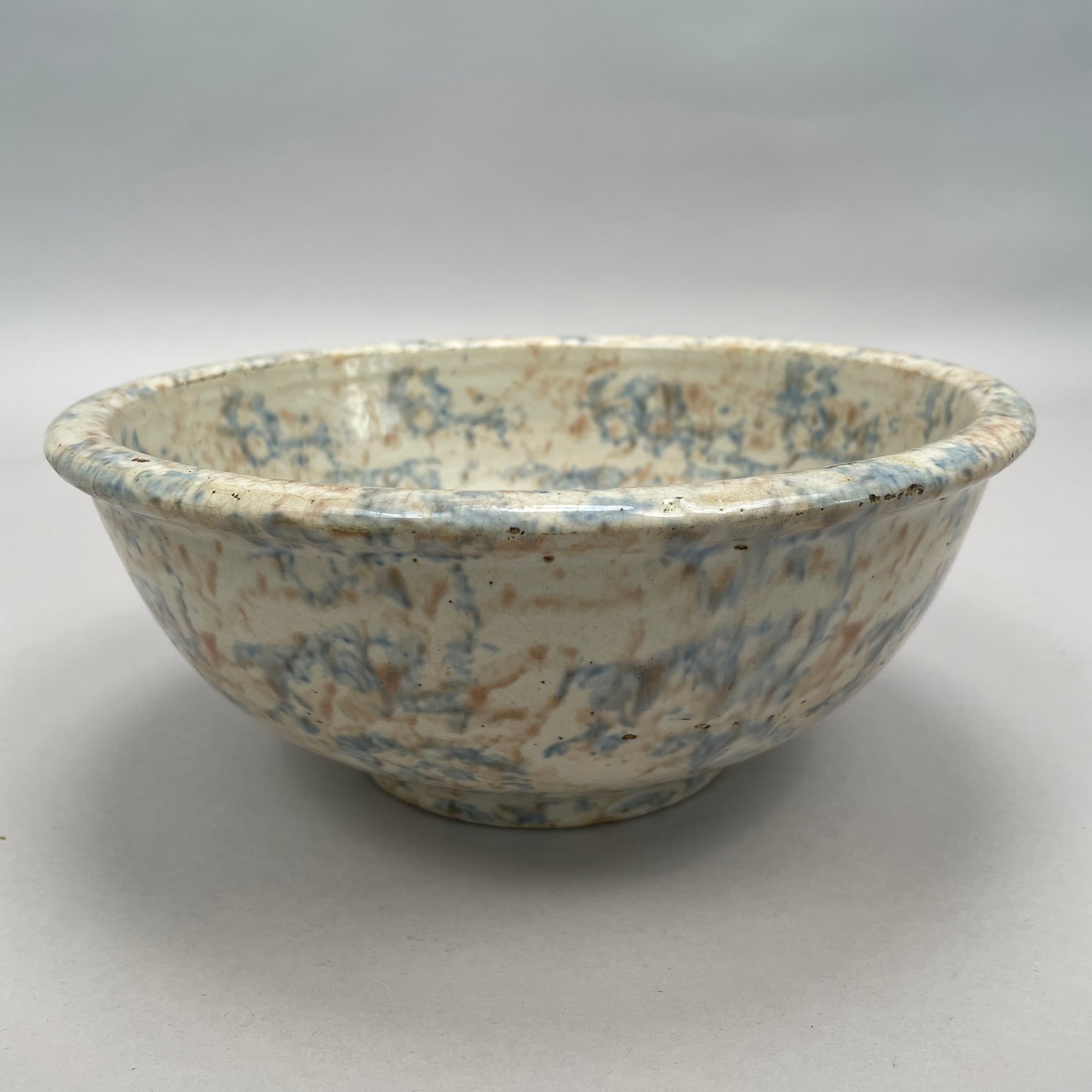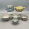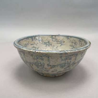 Five American Earthenware Sponge-Decorated Bowls and a Crock, Early Twentieth Century.