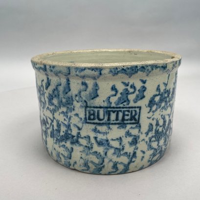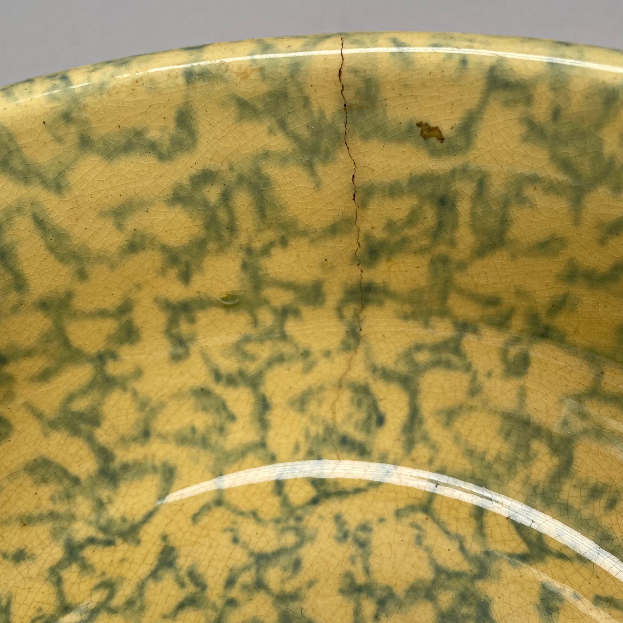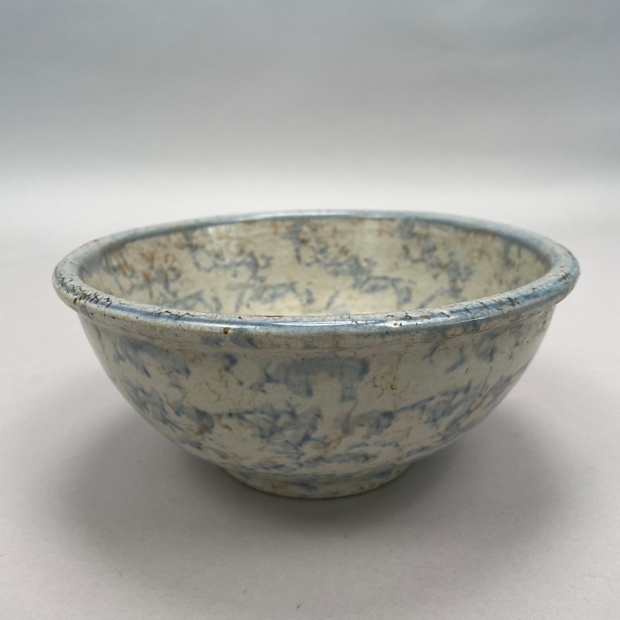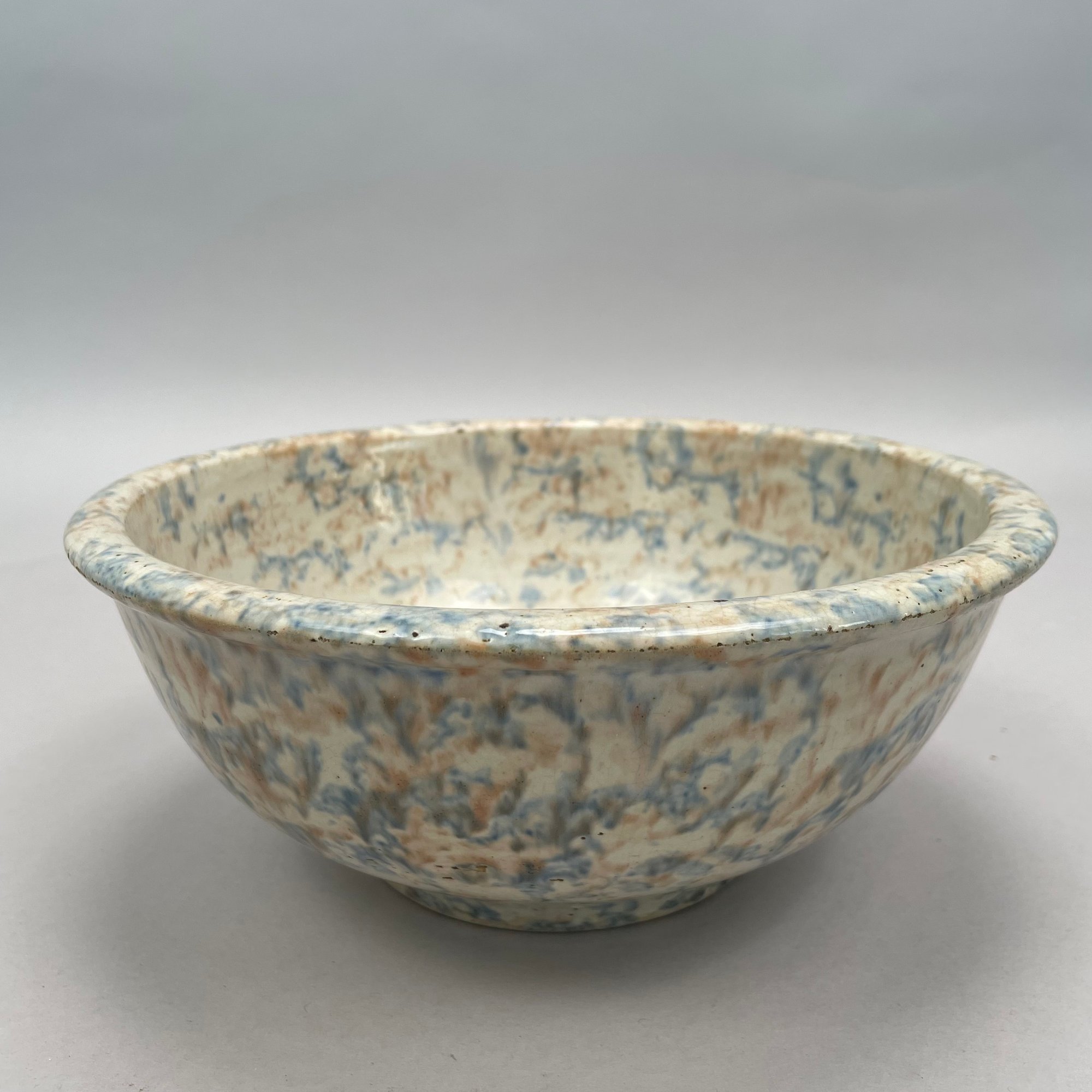 Five American Earthenware Sponge-Decorated Bowls and a Crock, Early Twentieth Century.