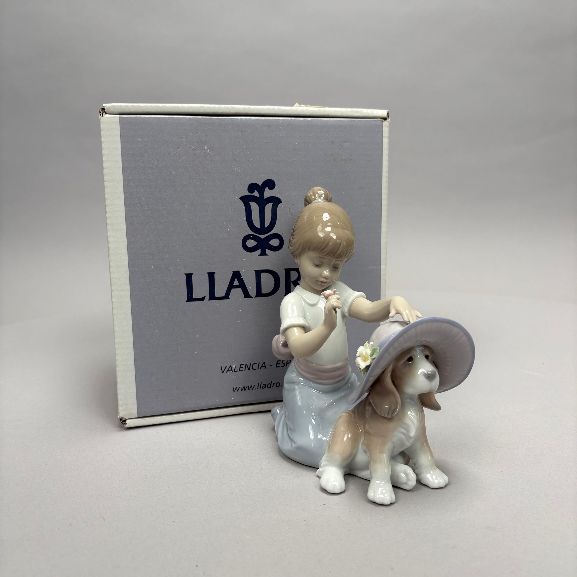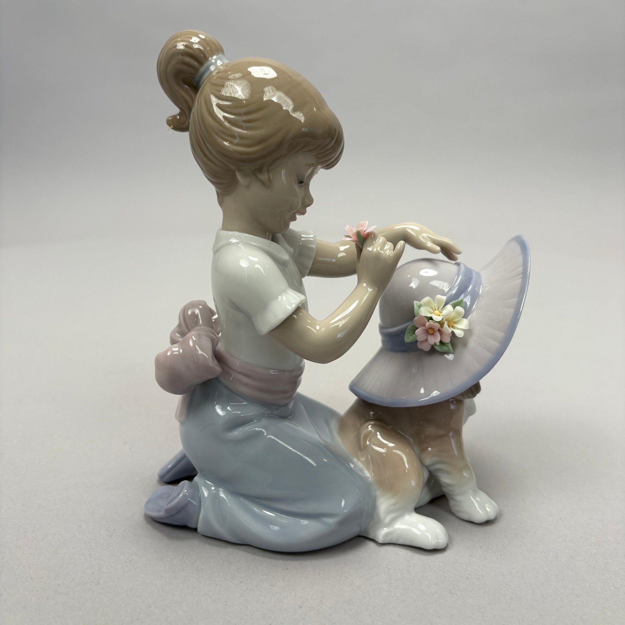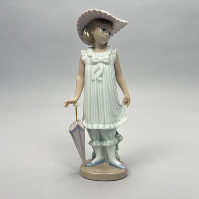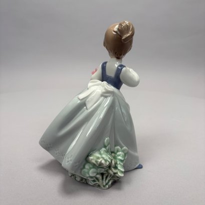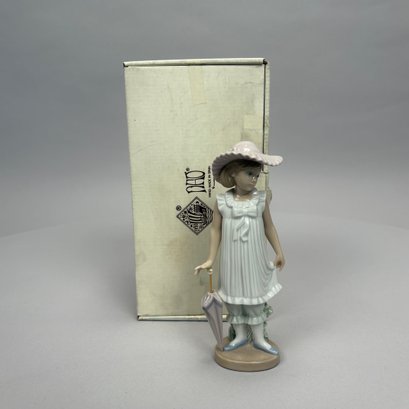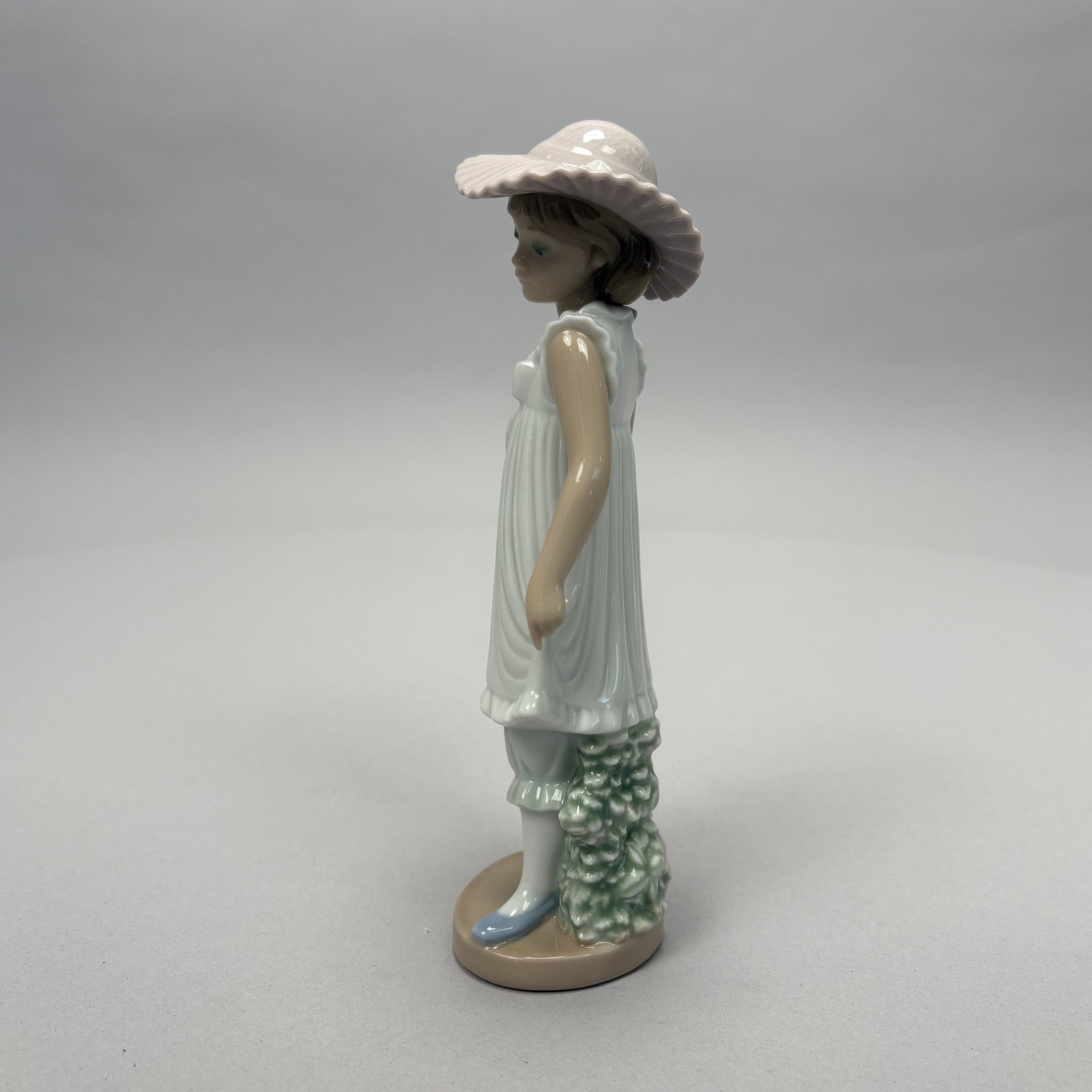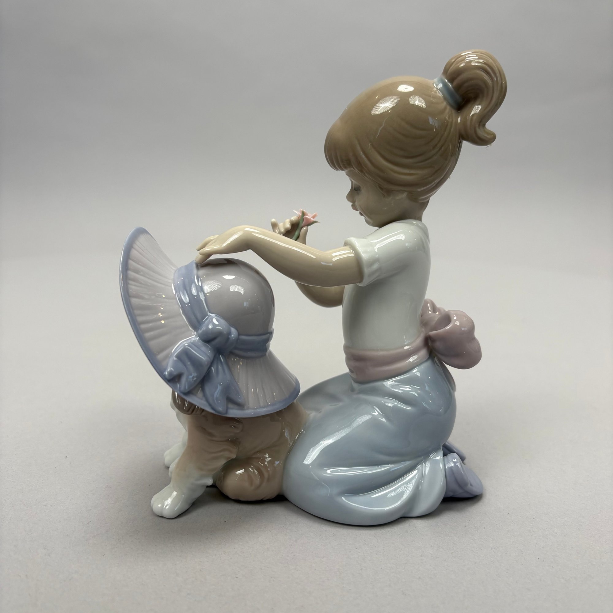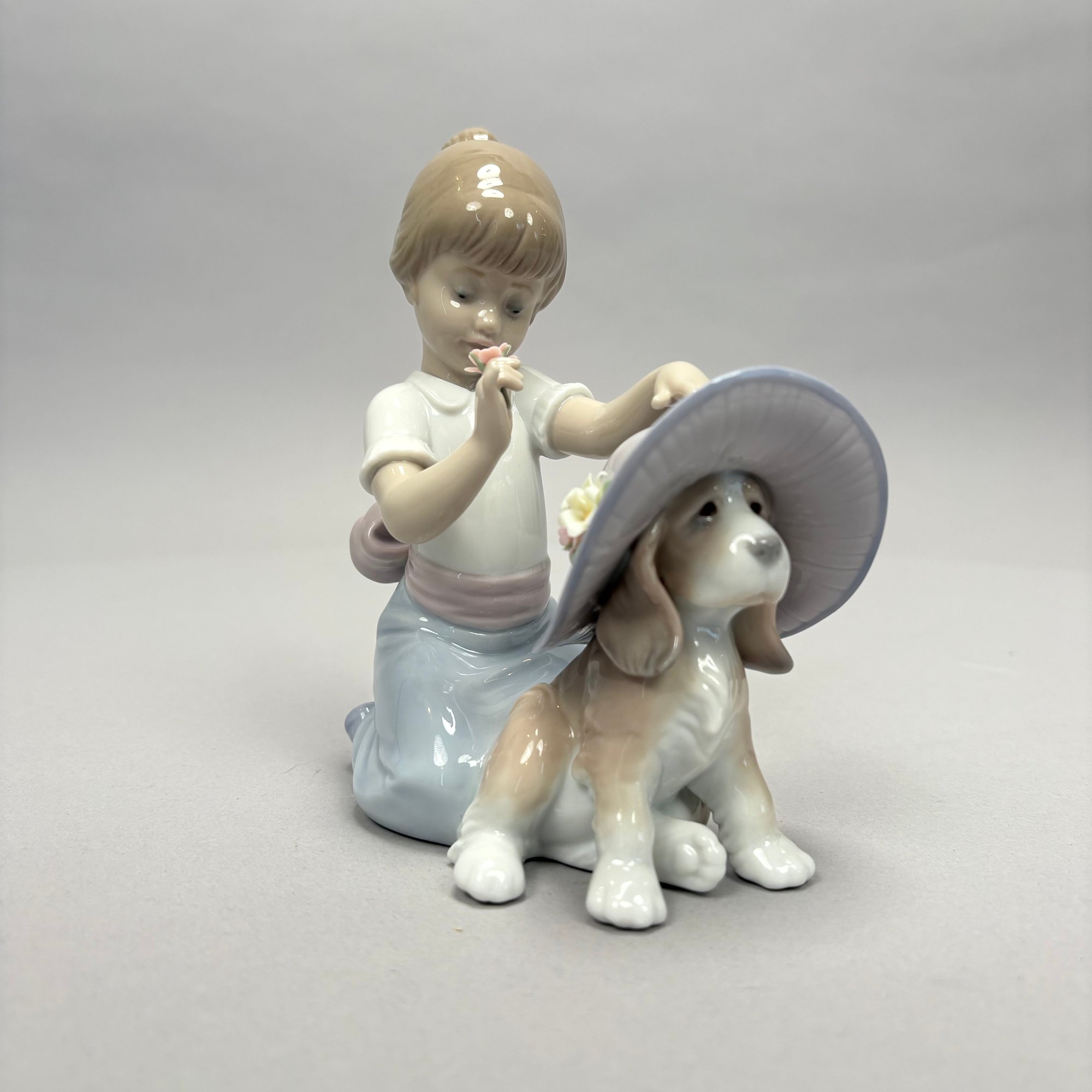 Comprising a Lladro #5457 "Bedtime Story" figure, a Lladro #010.06862 "An Elegant Touch" figure, a Nao by Lladro #495 "Senorita Campestre Ramo", a Nao by Lladro #1110 "Camison con Vuelo" figure, and a Nao by Lladro #1126 "Nina con Paraguas" figure; each housed in the original box.