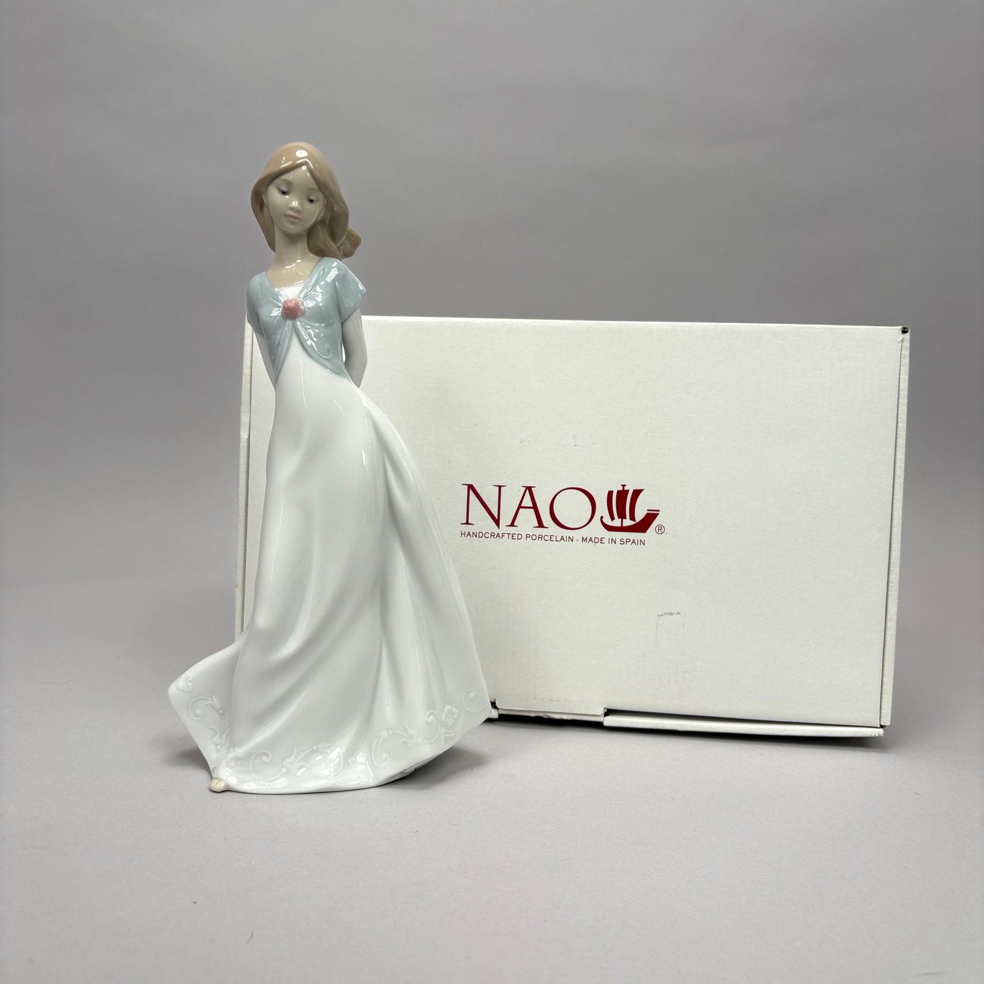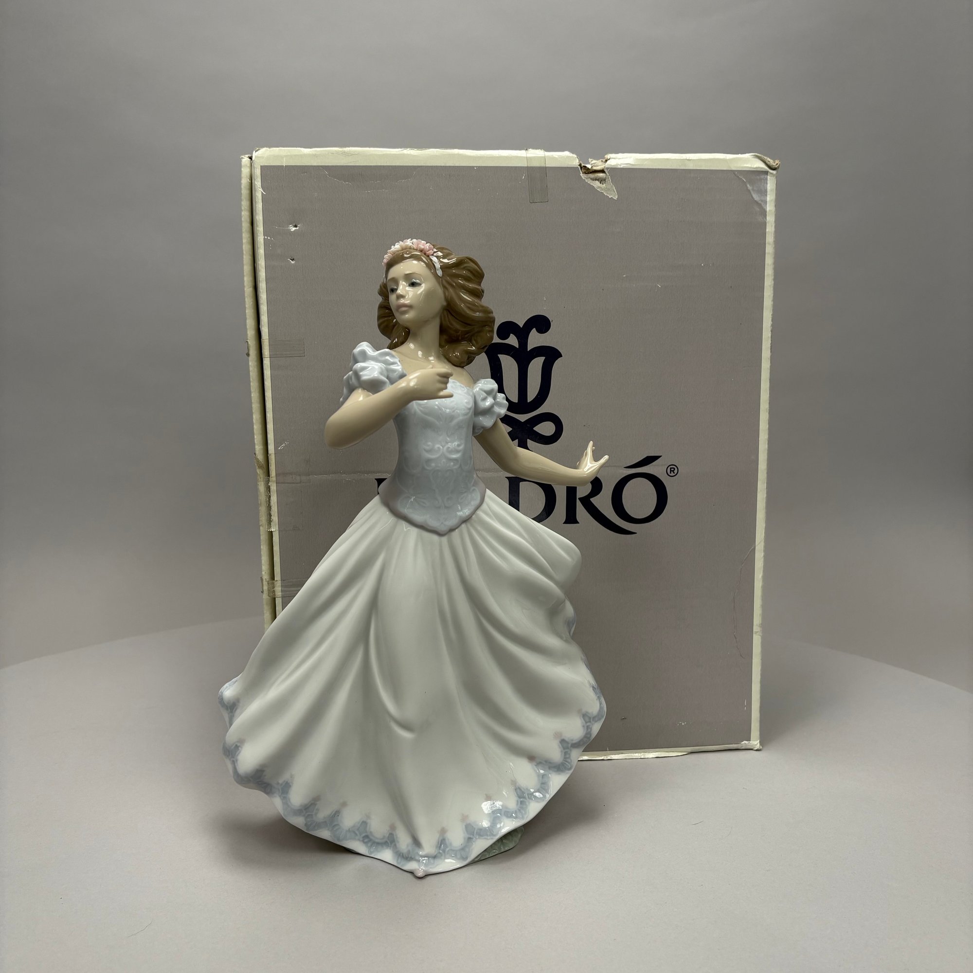 Five Lladro Porcelain Figures and a Nao by Lladro Porcelain Figure. Comprising a Lladro #6687 "Sweet Sixteen" figure; a #7622 "Basket of Love" figure; a #7641 "For a Perfect Performance" ballerina; a #7642 "Now and Forever" figural group; a #7644 "Innocence in Bloom" figure; and a Nao by Lladro #2001450 "Truly in Love" figure, sculpted by Marco Antonio Nogueron; each housed in the original box.