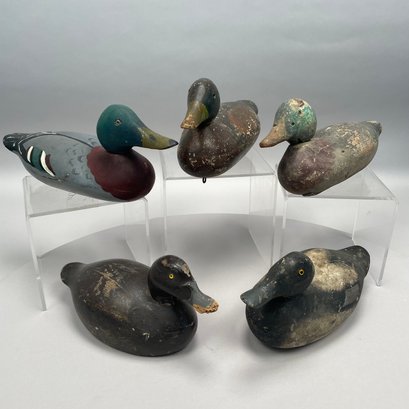 Five Painted Duck Decoys, Each with Glass Eyes.