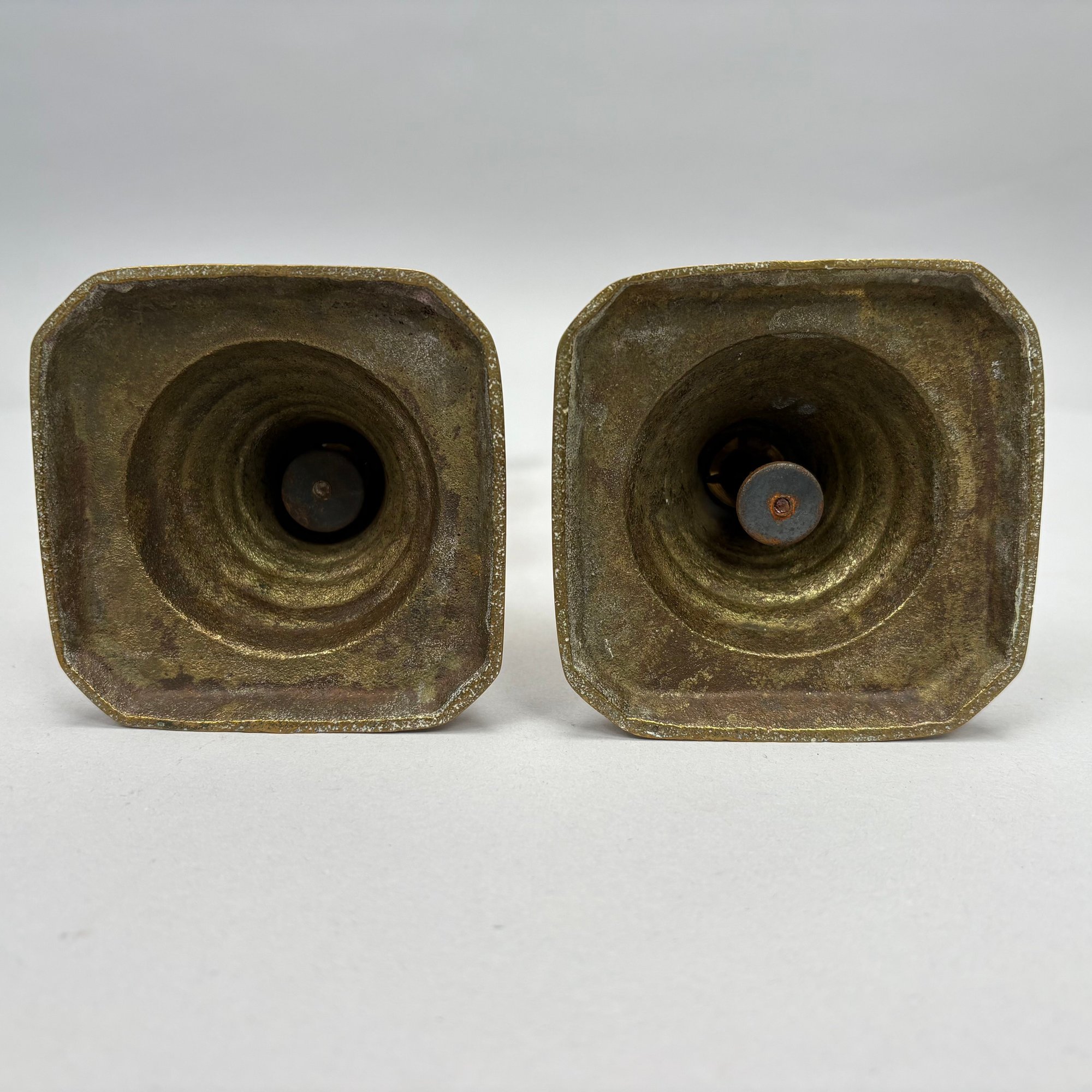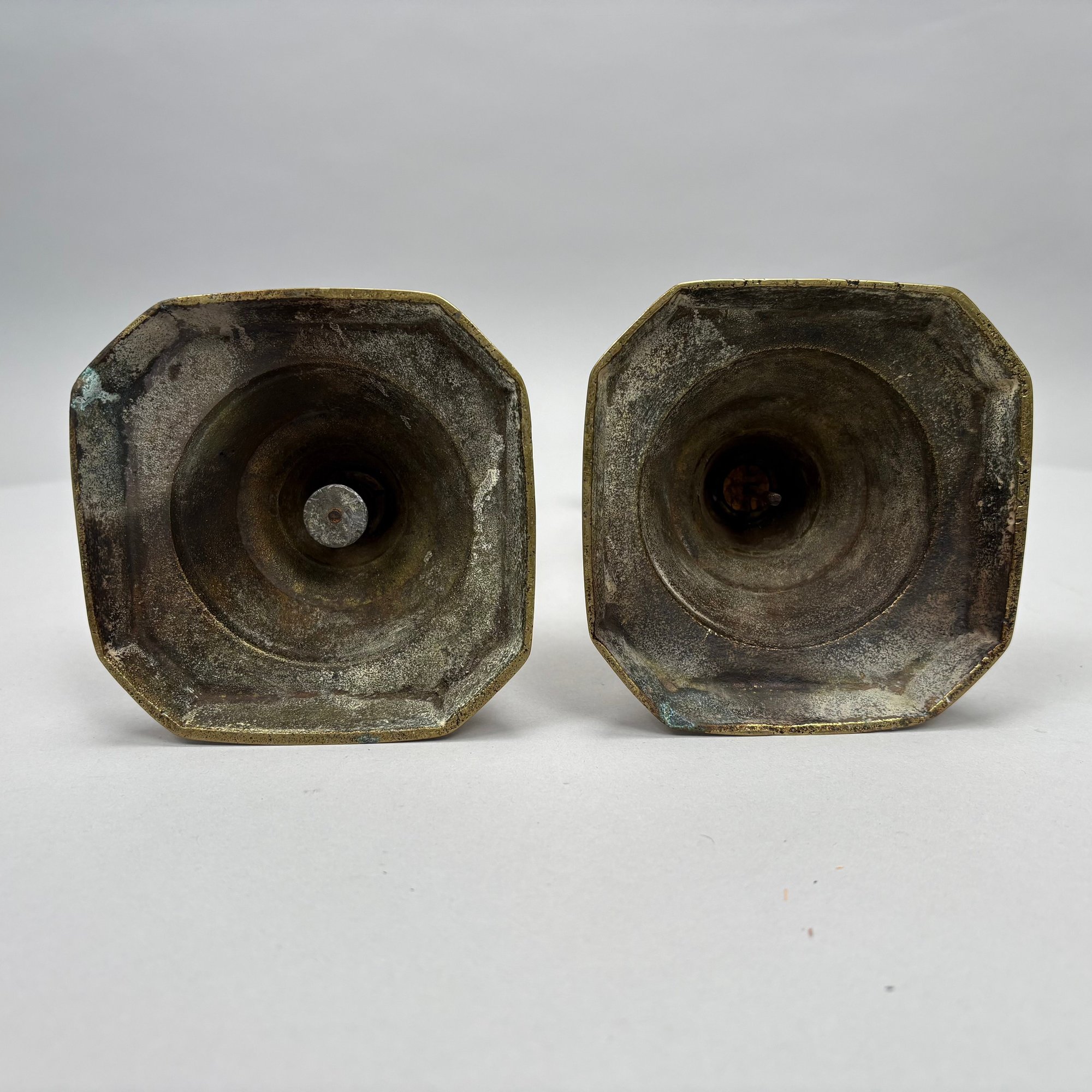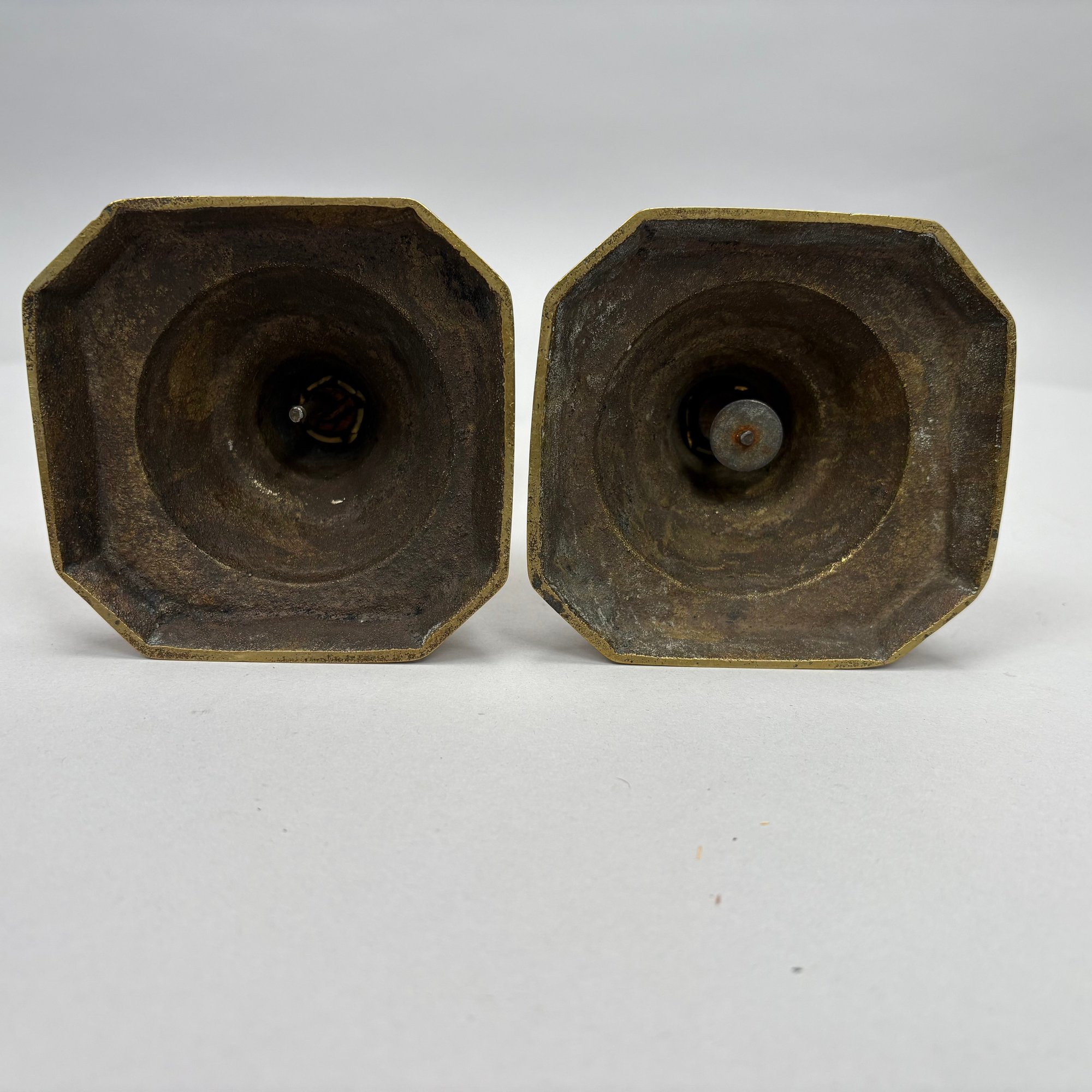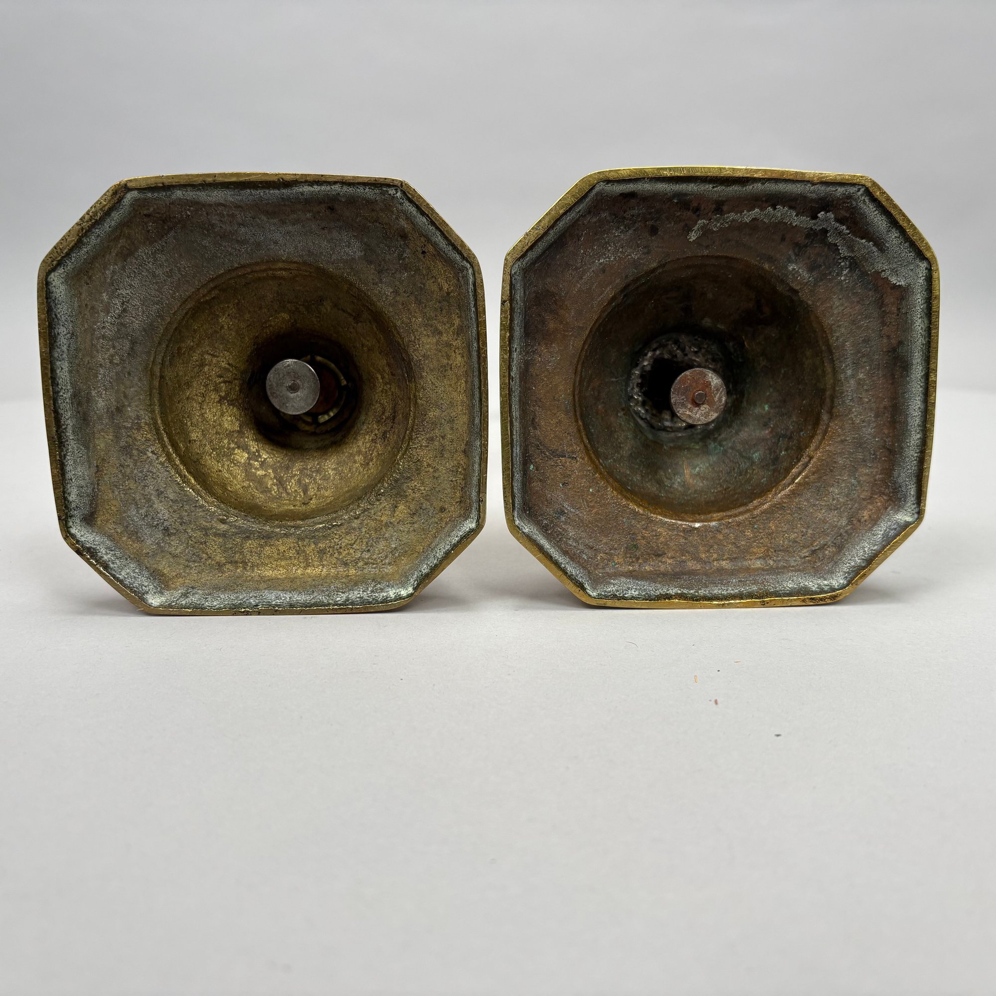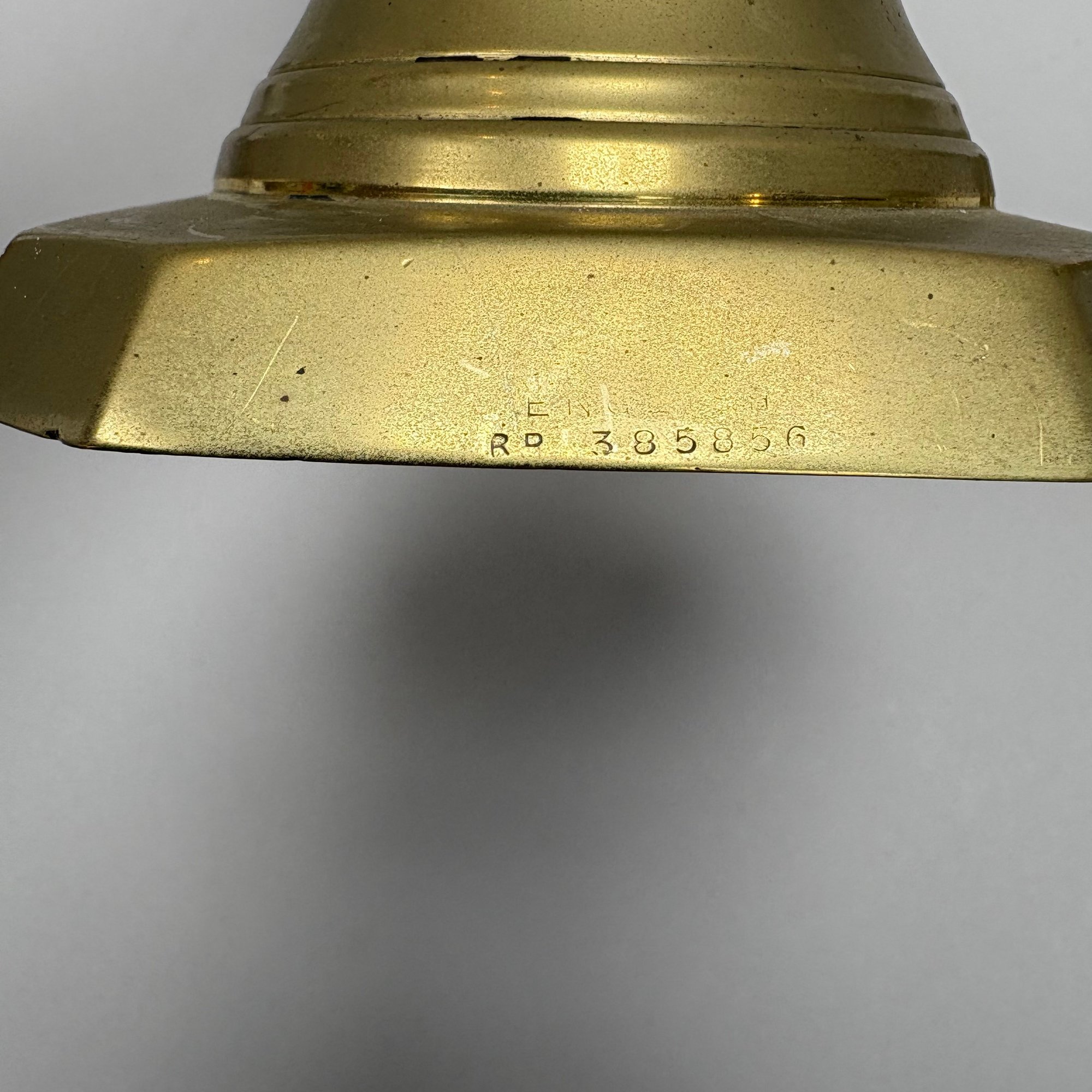 Five Pairs of English Brass Push-Up Candlesticks, 1897-1940. Comprising a pair marked "THE KING OF DIAMONDS," a pair marked "THE QUEEN OF DIAMONDS," a pair marked "THE DIAMOND PRINCE" and a pair marked "THE DIAMOND PRINCESS," the last two pairs with worn maker's marks "ENGLISH/ RD385856;" and a pair of 'Beehive' candlesticks, each marked "ENGLAND/ RD223580."