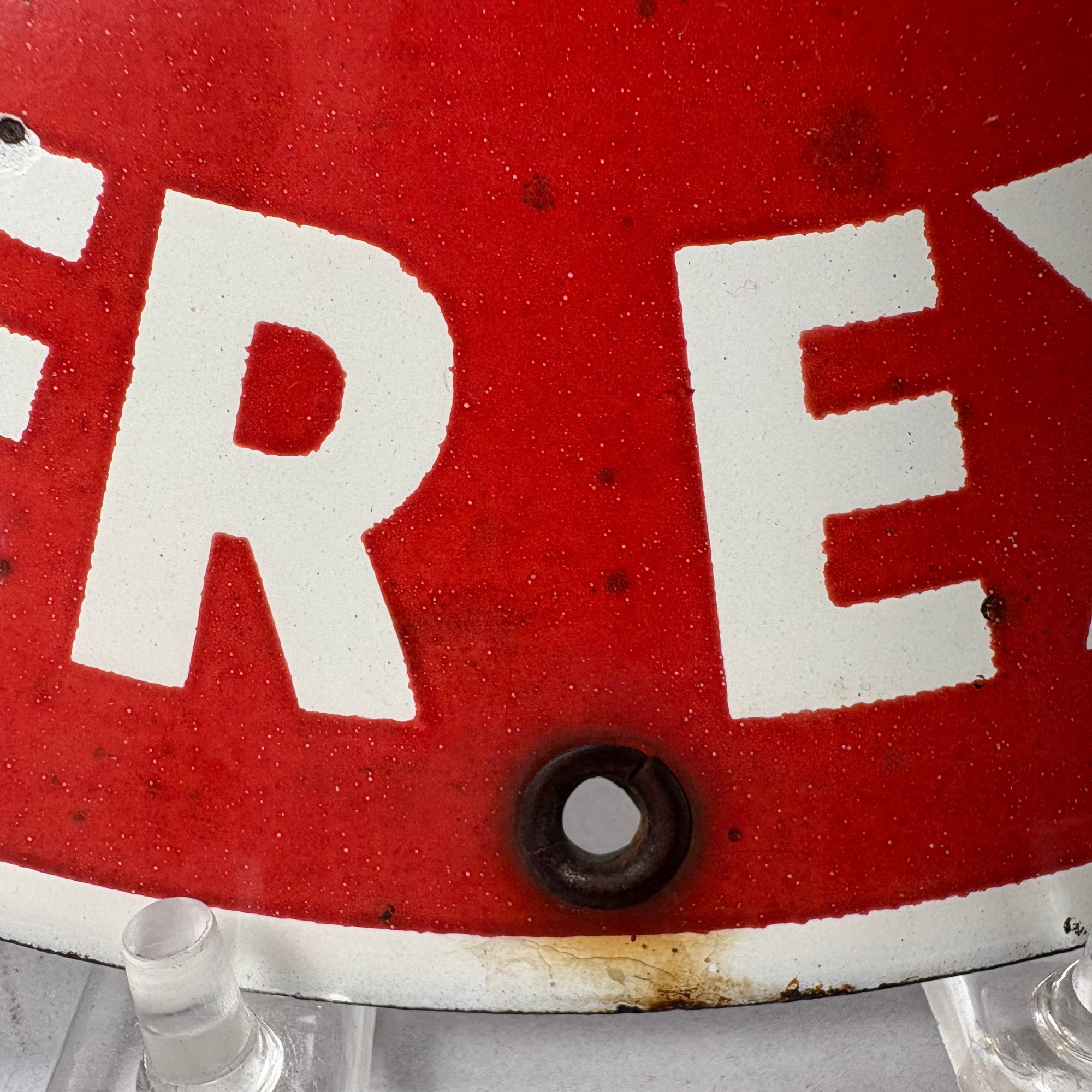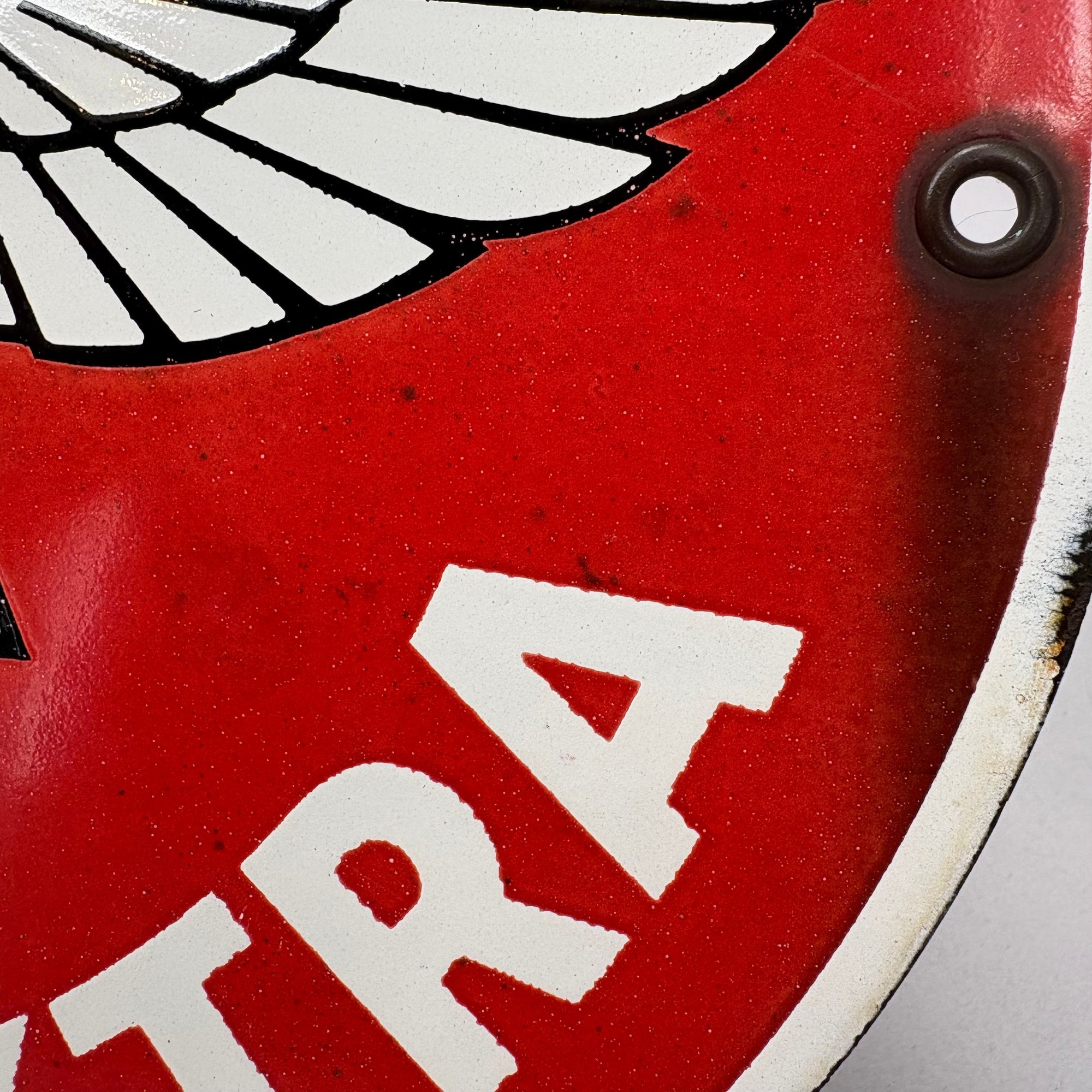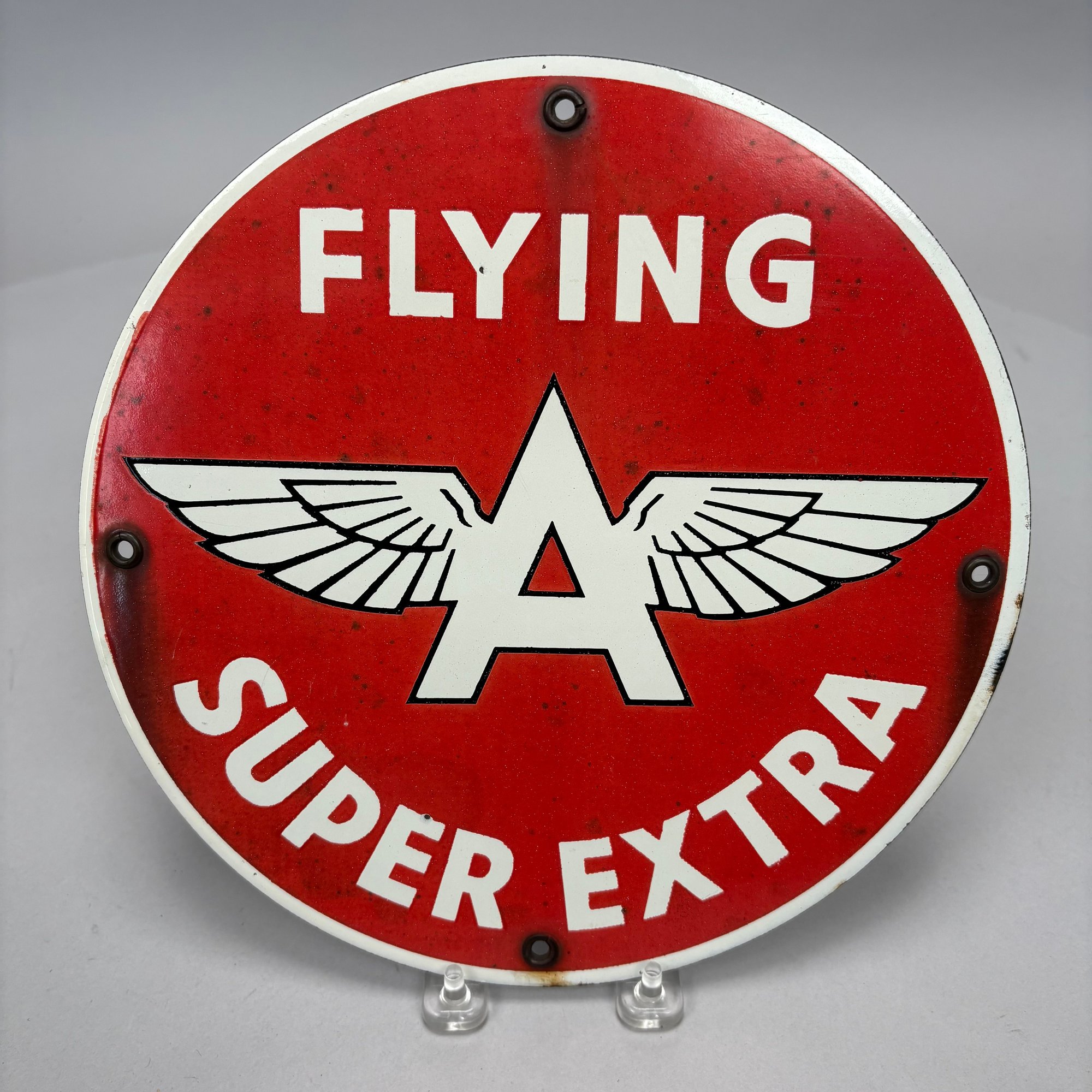 "FLYING SUPER EXTRA" Vintage Porcelain Single-Sided Gas Pump Plate Sign. All four factory grommets present.