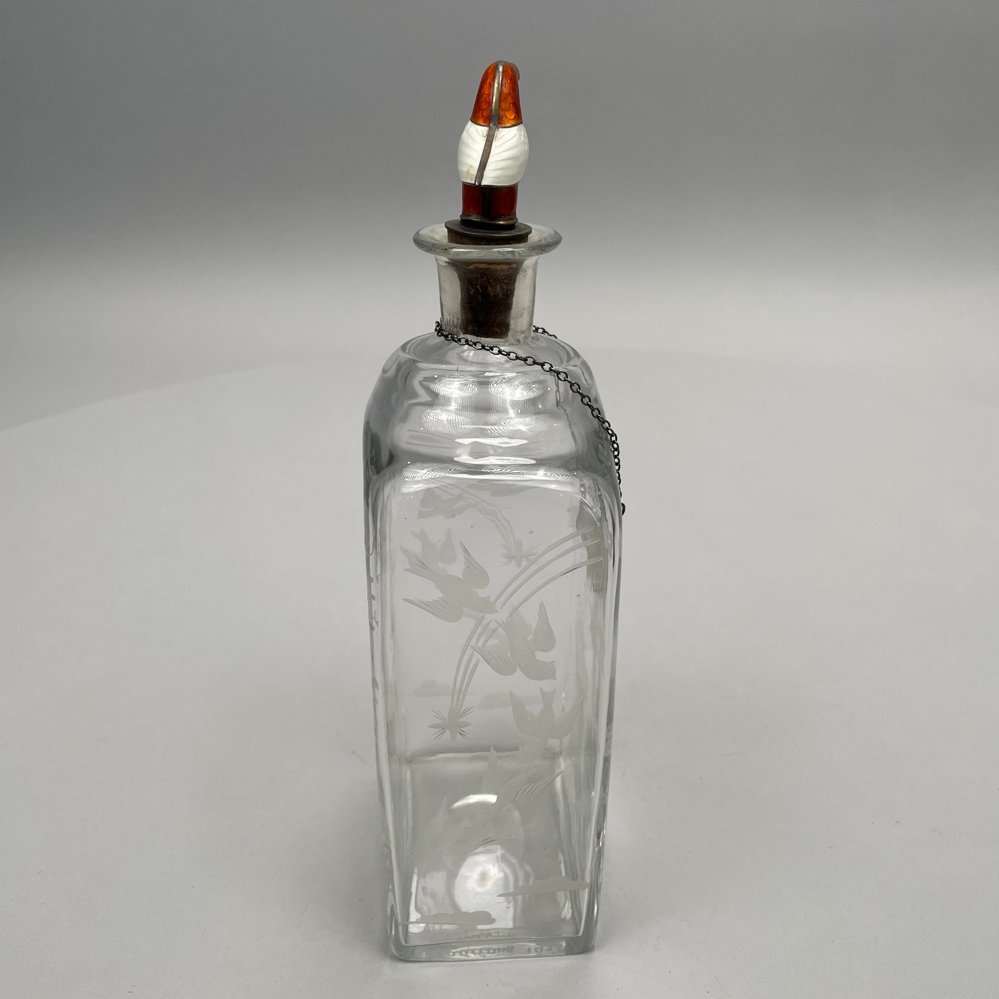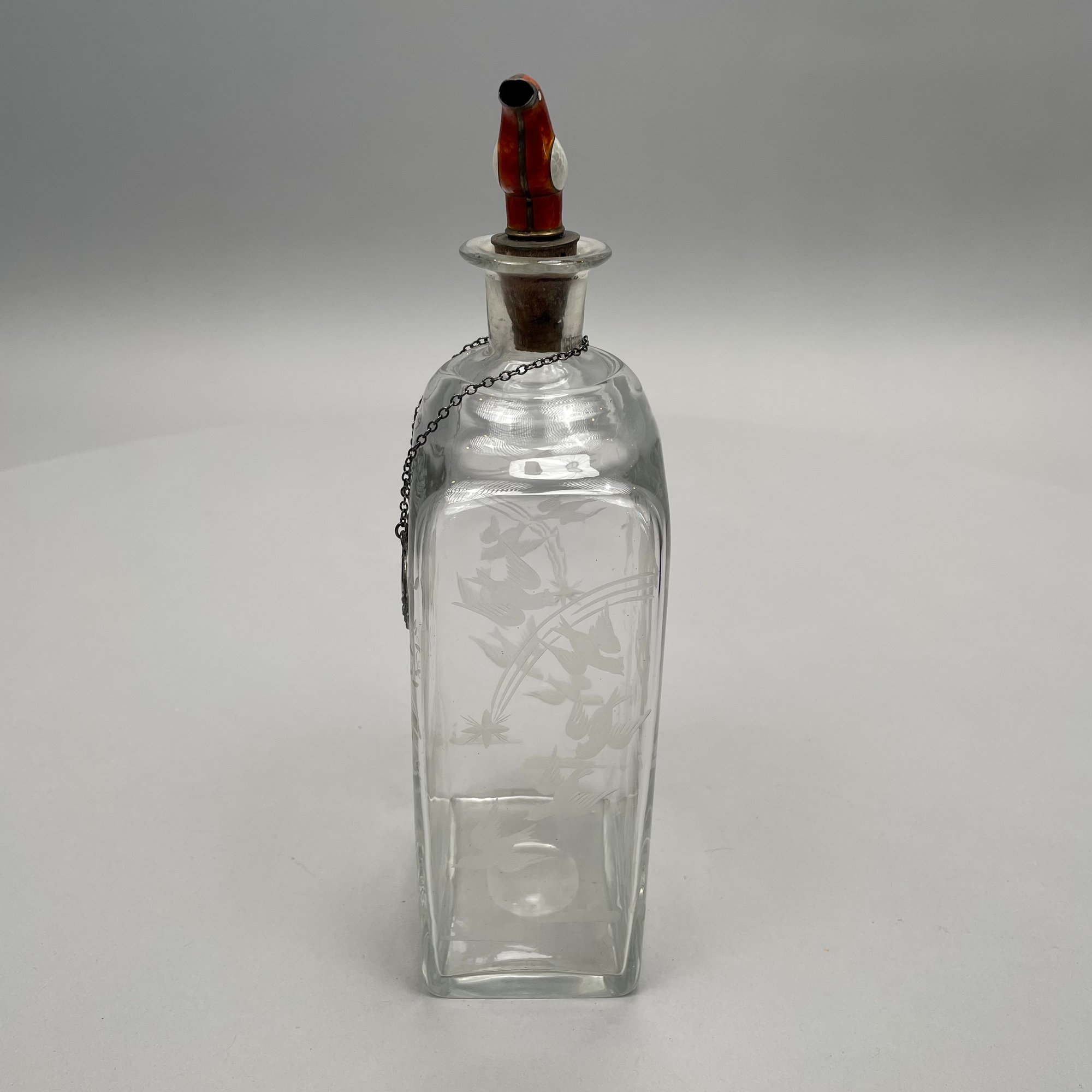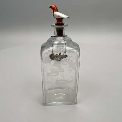Decanter: H: 10 in., W: 3.625 in., D: 2.5 in.