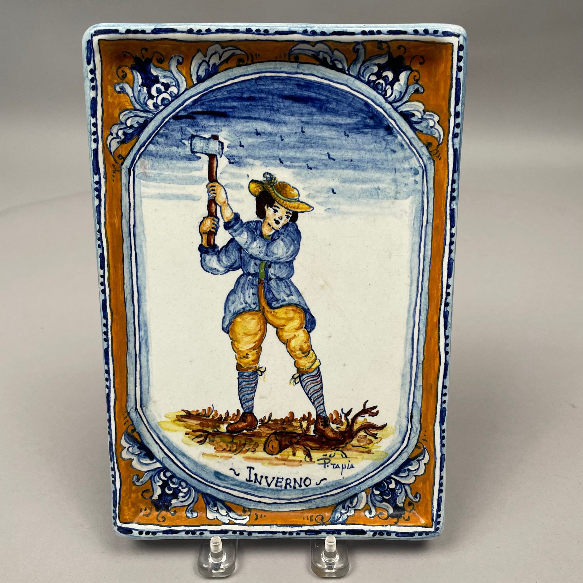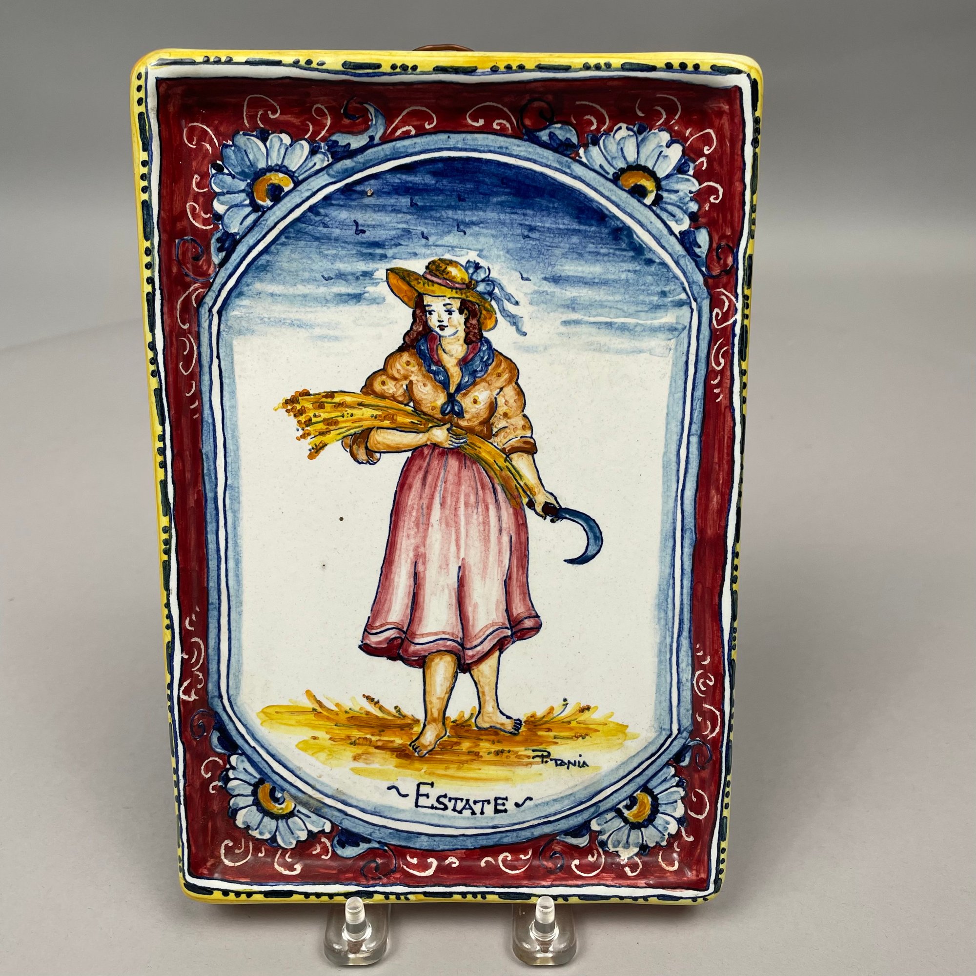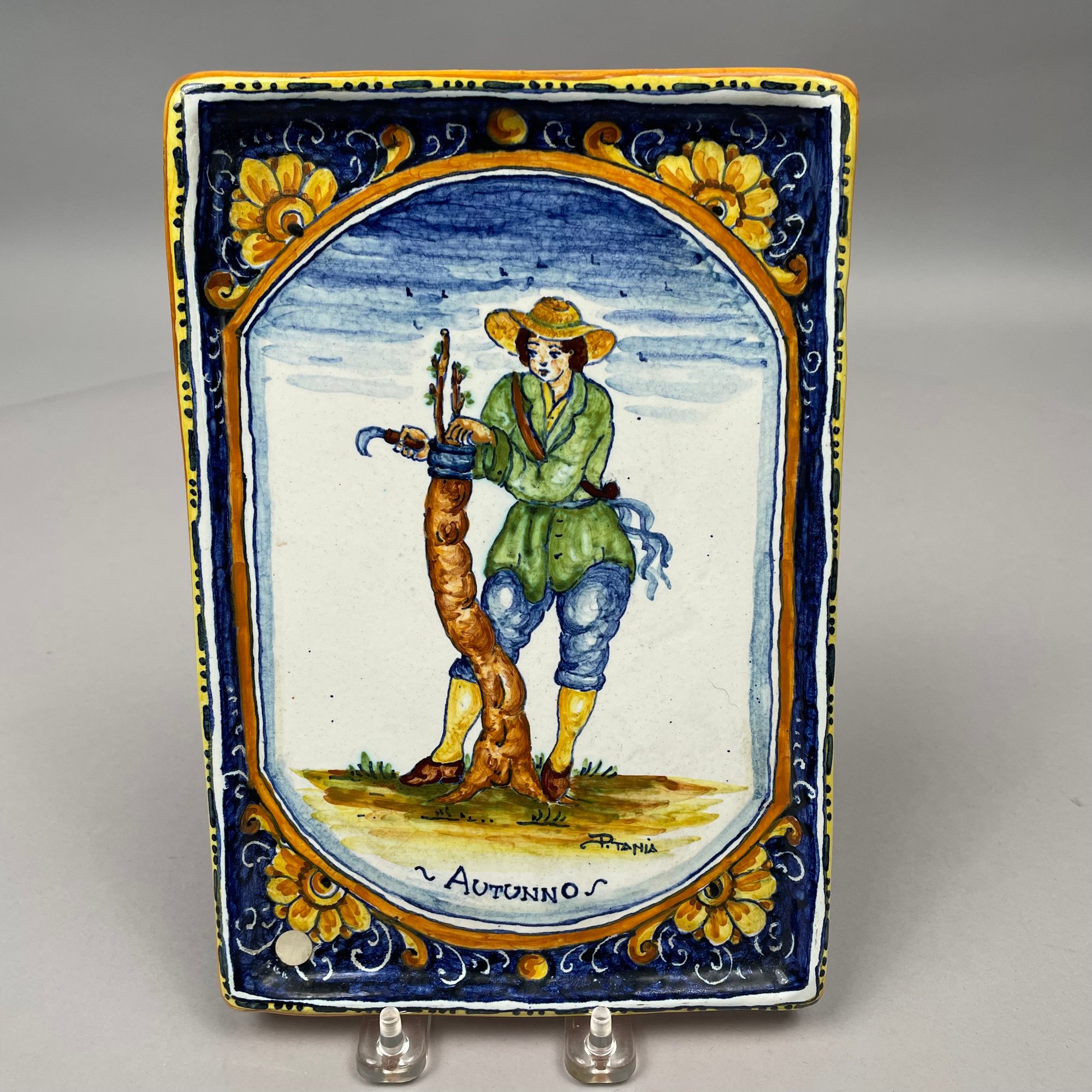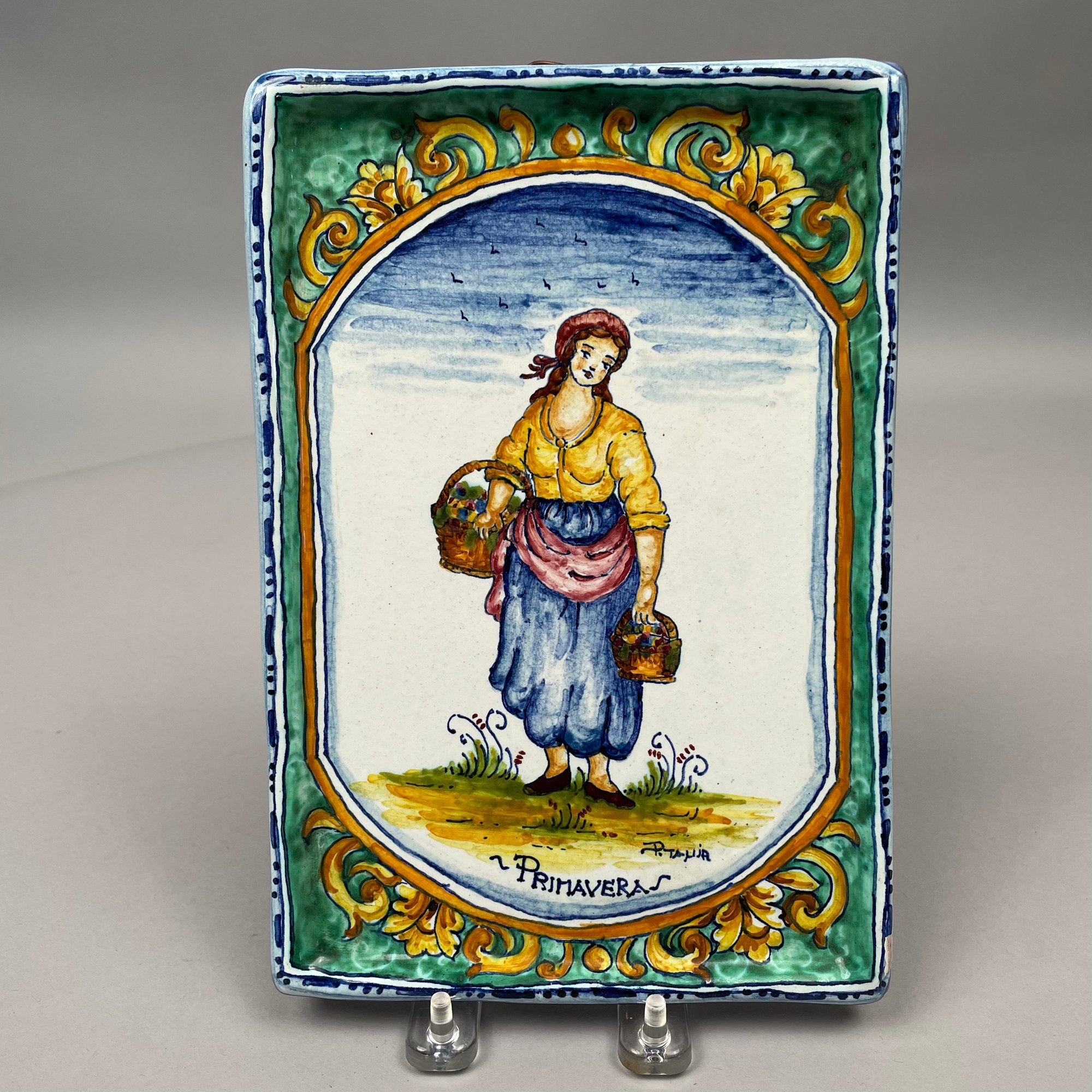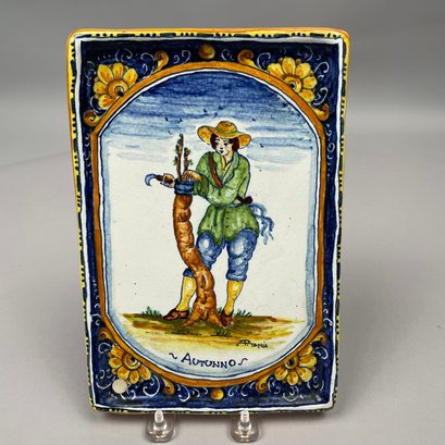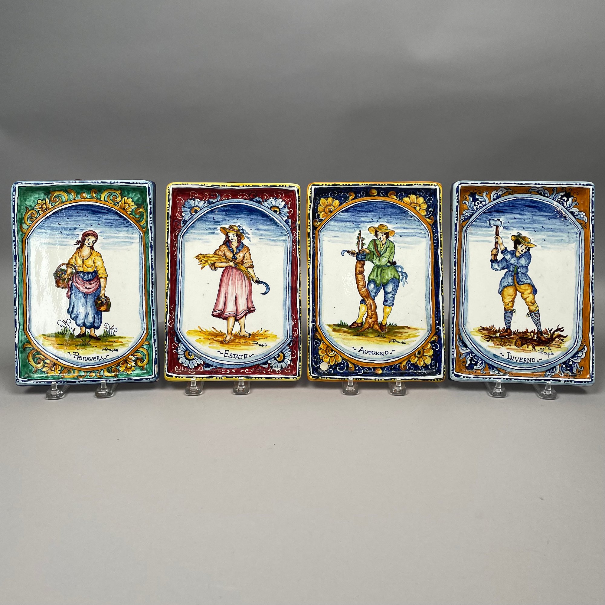 Set of Four Italian Faience La Ditta "Ceramiche Marino" Plaques, Twentieth Century. Each applied with a paper gold factory label.