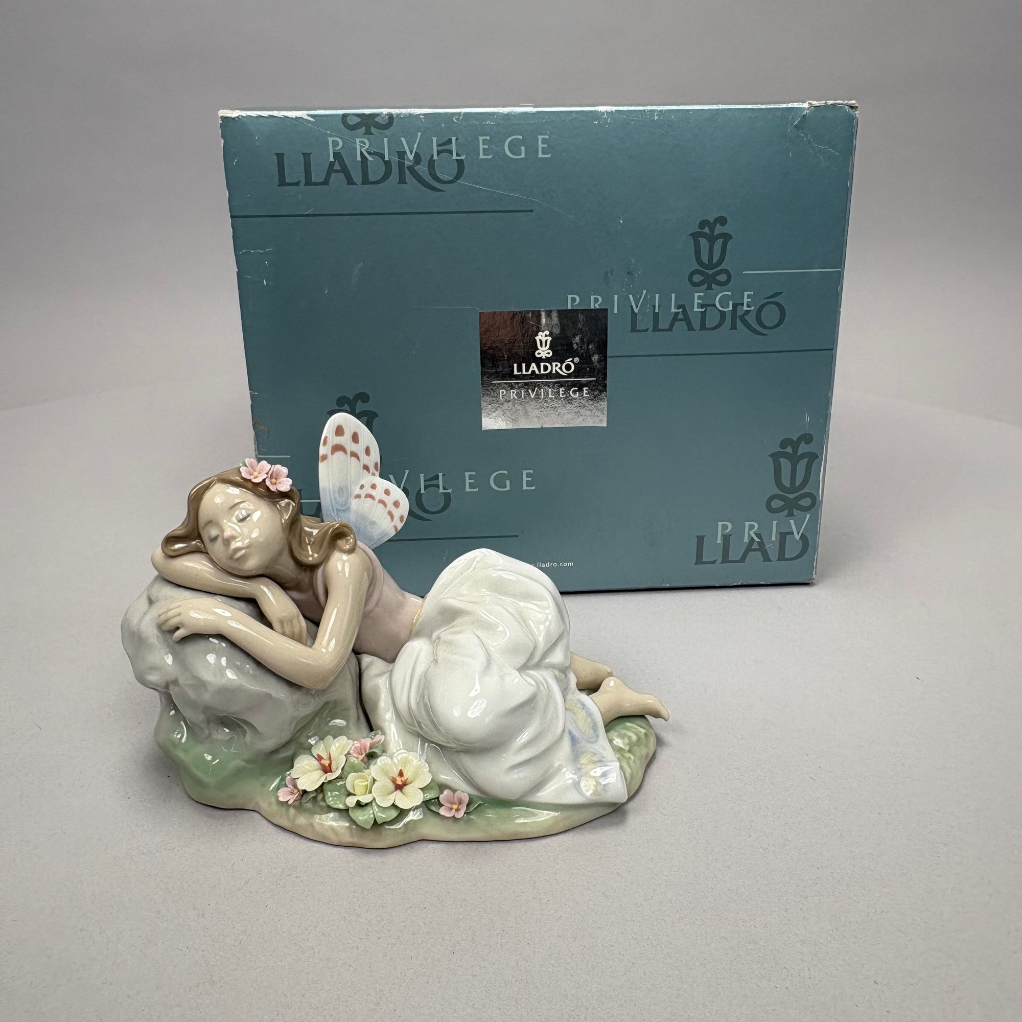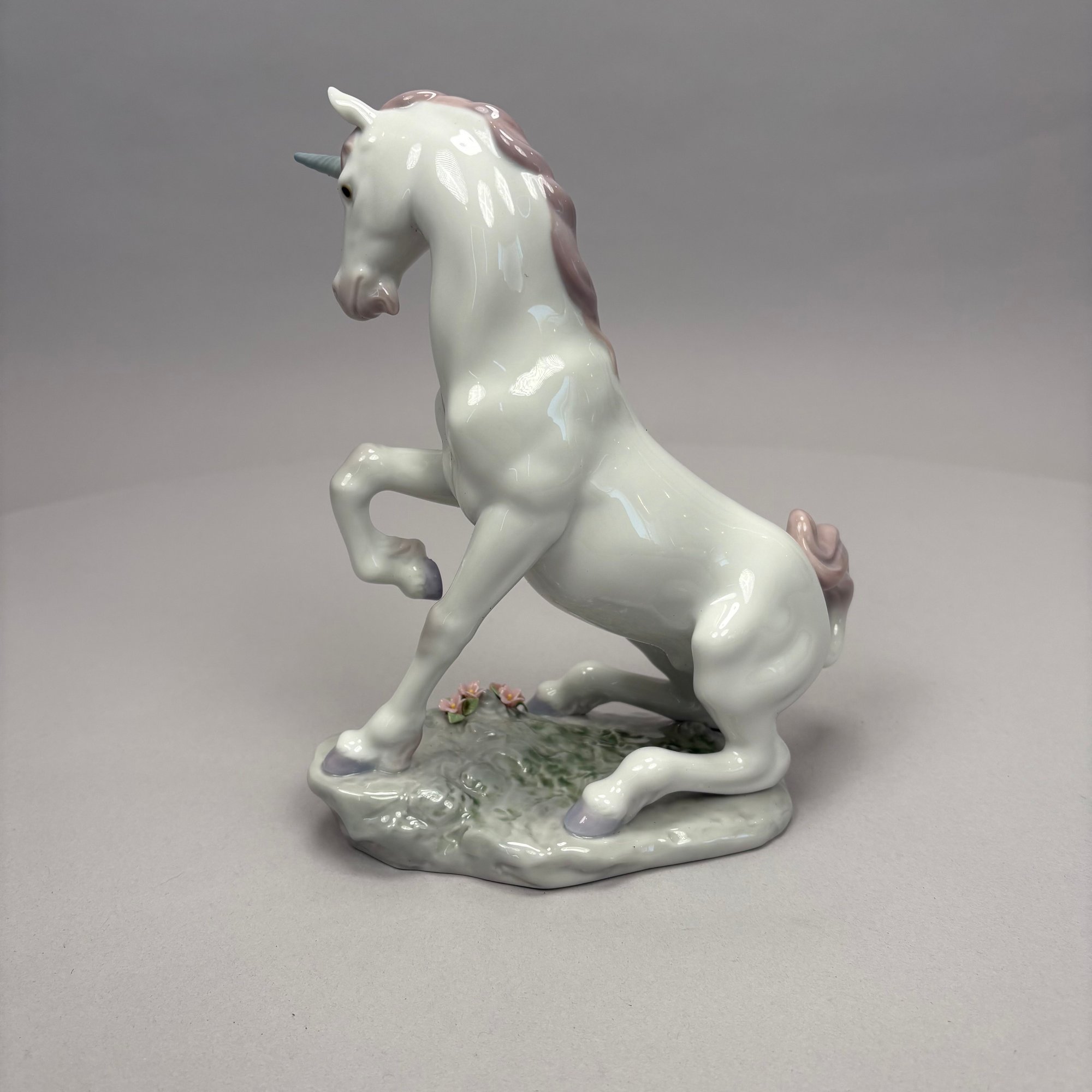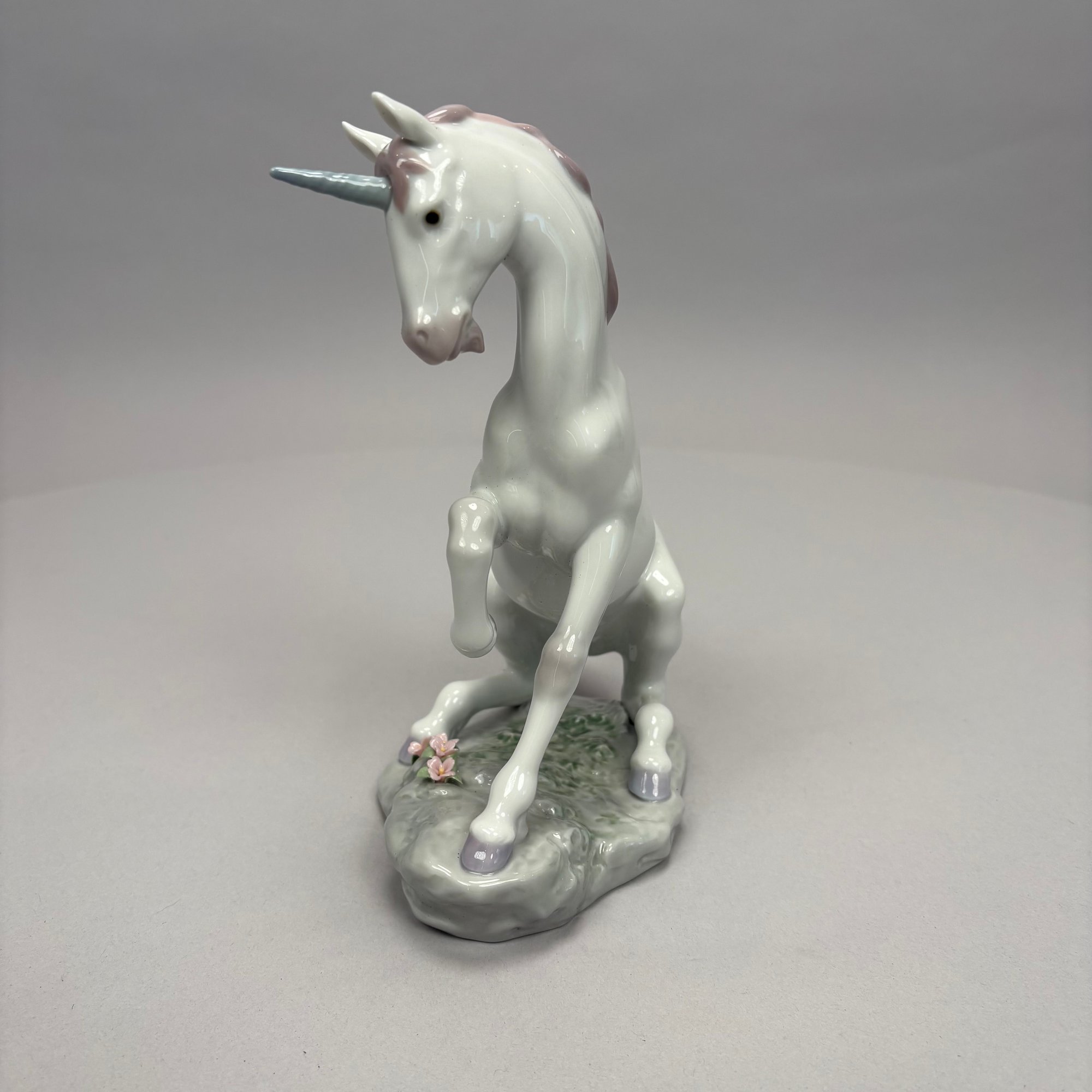 Comprising a Lladro Privilege #01007697 "Magical Unicorn" figure, a #01007704 "Gardens of Athens" figure, a #7690 "Prince of the Elves" figure, and a #010.07694 "Princess of the Fairies" figure; each housed in the original box.