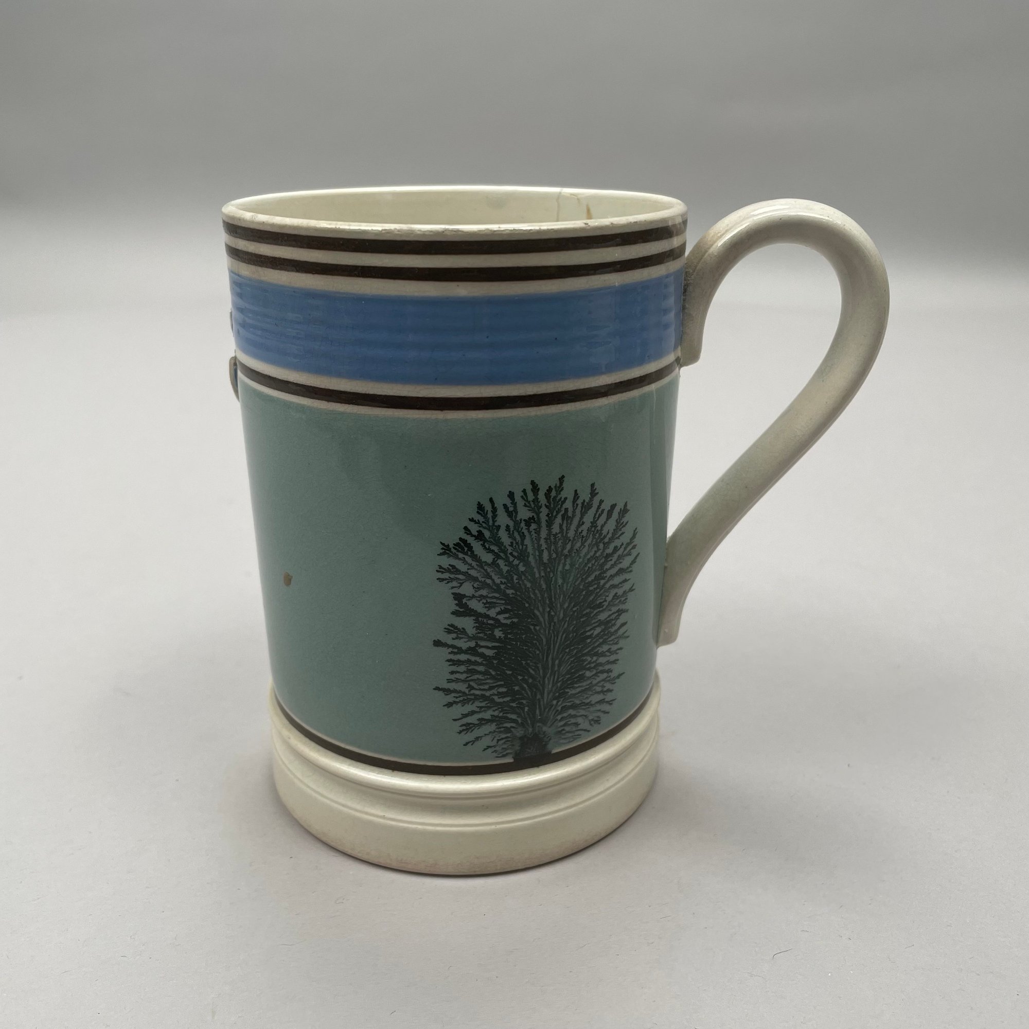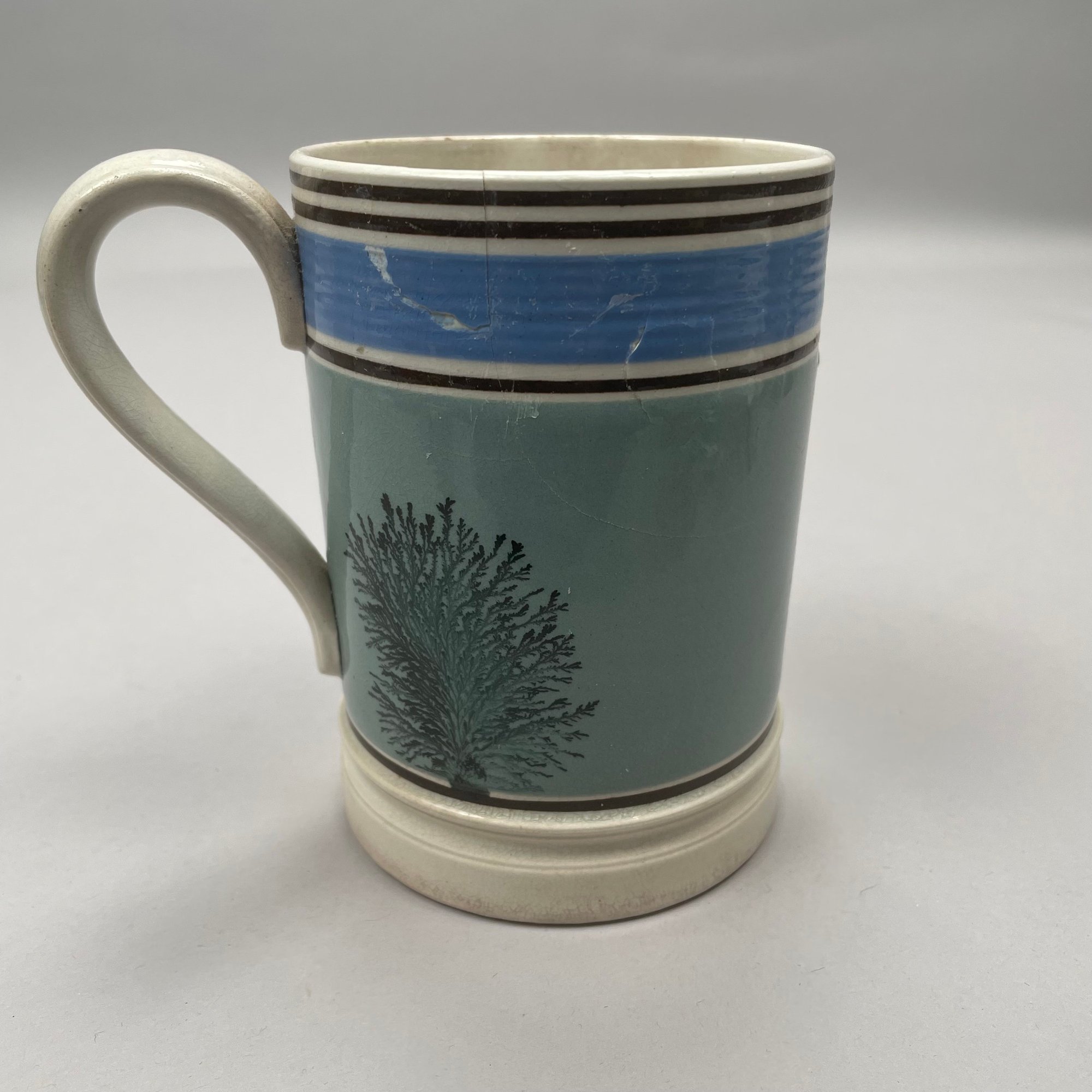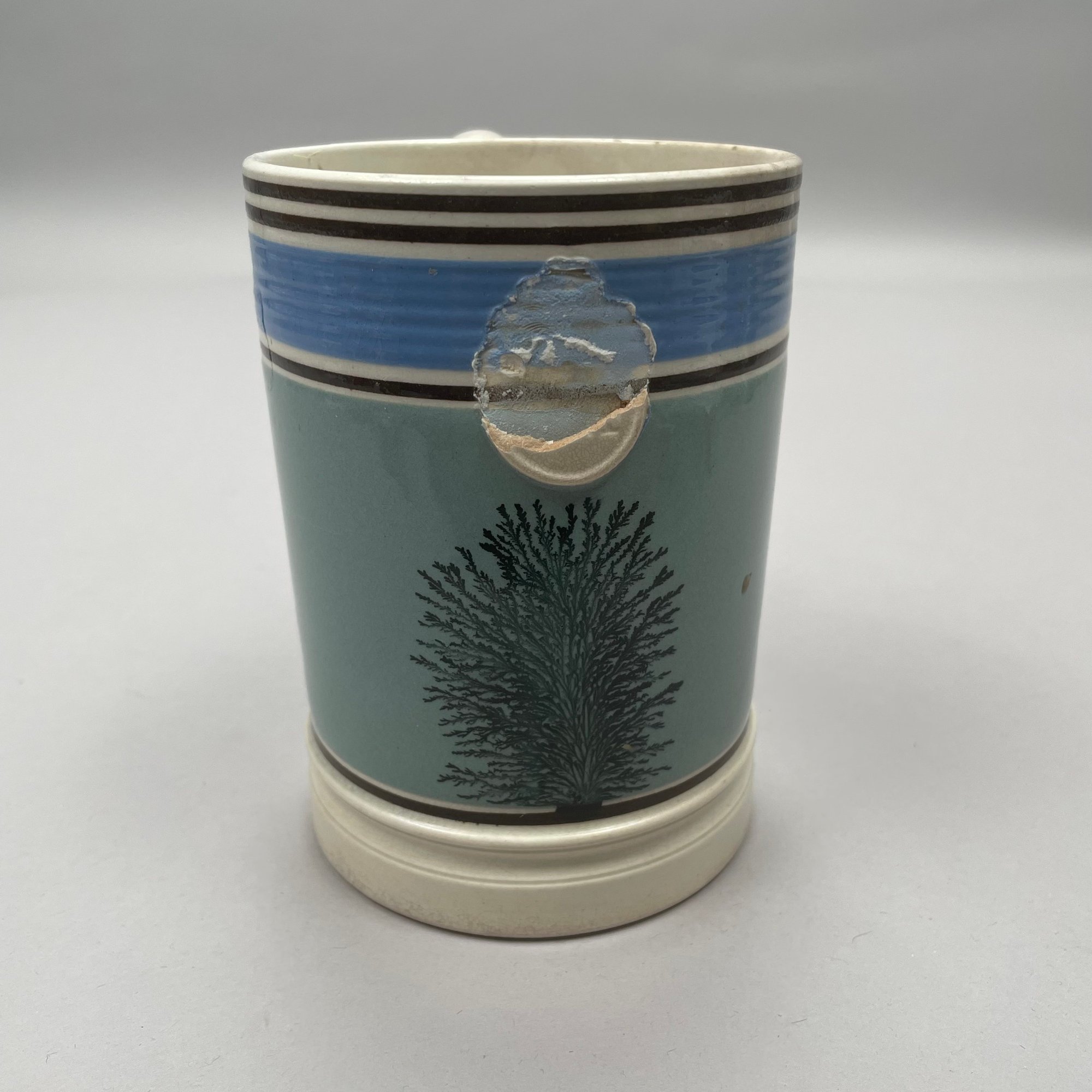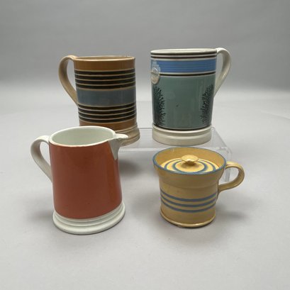Four British Mochaware Slip-Decorated and Dendritic Wares, Mid-Nineteenth-Early Twentieth Century. Comprising two tankards, a condiment jar and a pitcher.