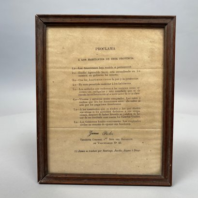 Philippine-American War Proclamation Written by Lieutenant Colonel James Parker, Commander of the 45th Volunteer Infantry. Distributed in an attempt to reassure the local population and encourage them to accept American rule, and a warning to remaining rebels that they would face harsh consequences if they continued to resist.