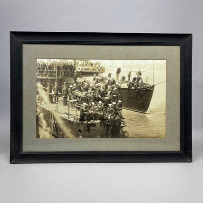 Photograph Depicting Sailors Aboard the USS "Truxtun" (Likely the USS "Truxton" DD-229). "Photo by C.E. Waterman, Chicago," (Photograph 10.75 x 17.75 inches, sight); housed in a fumed oak frame.