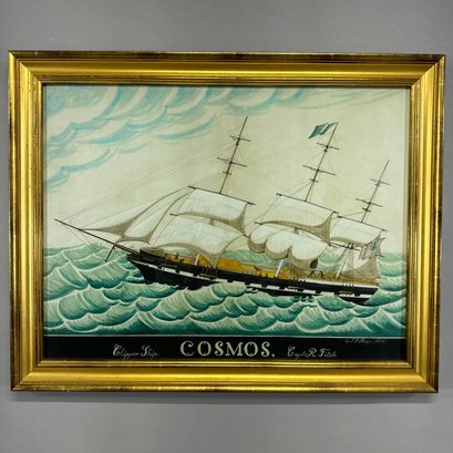 Photographic Copy of the "Clipper Ship 'Cosmos,' Capt. R. Fitch," 21st Century. The original by J.F. Huge, 1854, (17.125 x 22.875 inches, sight).