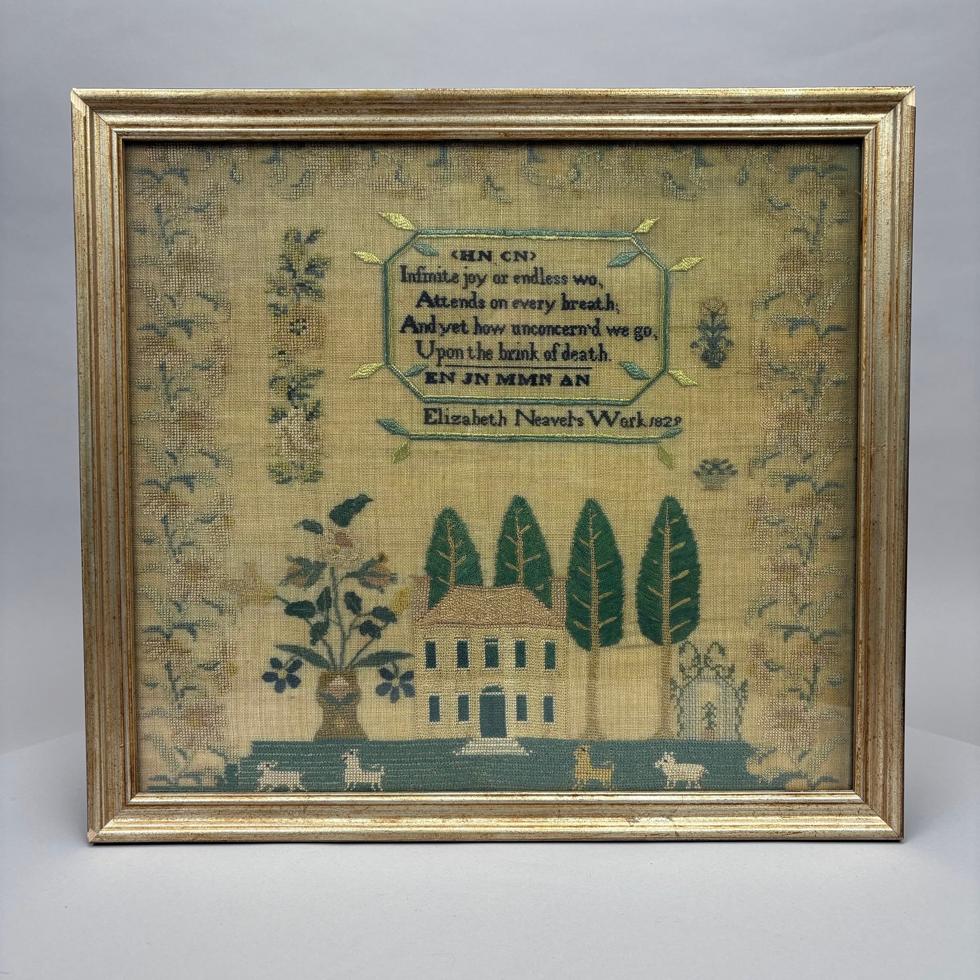 Elizabeth Neavel's original needlework sampler was sold in "The Bisnoff Collection," Northeast Auctions, Portsmouth, New Hampshire, October 27, 2007, lot 653.