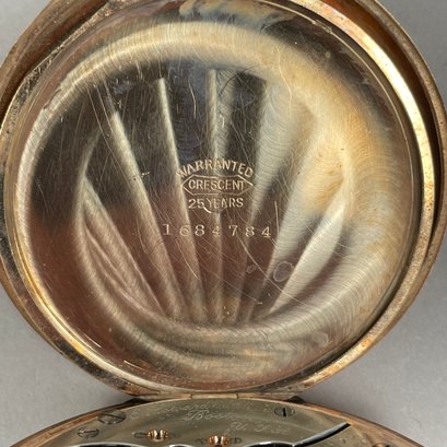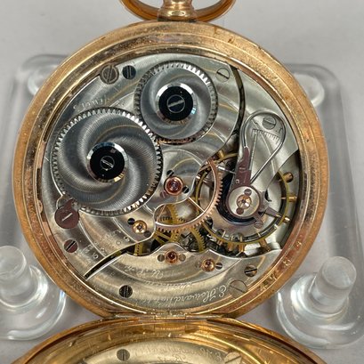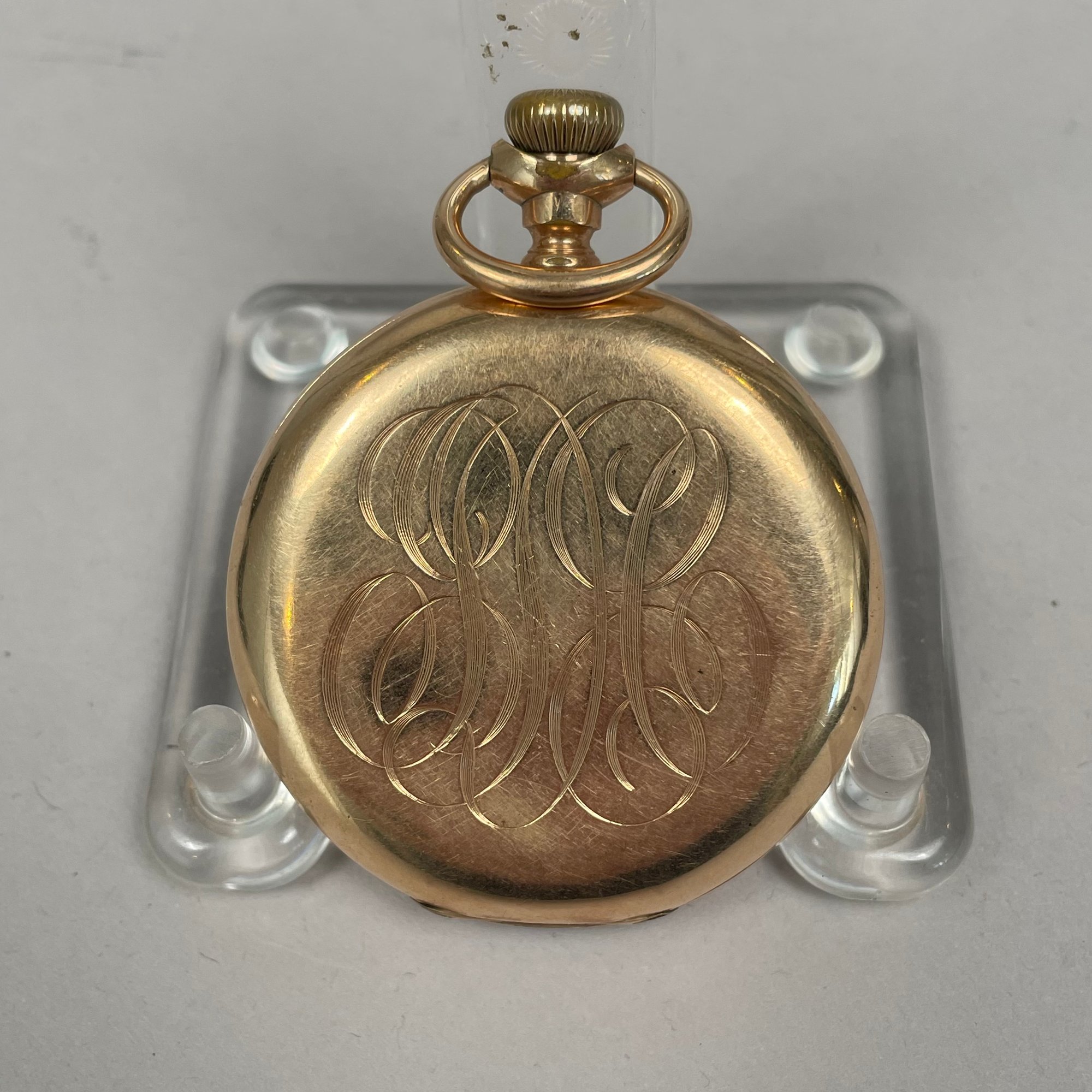 Howard Yellow Gold-Filled Open Face Pocket Watch. Engraved initials on the back cover, marked on the cuvette and inside back cover with serial number 1684784 and trademarks, the movement marked "E. Howard Watch Co./ Boston/ U.S.A.," and number 892695, "17 JEWELS."