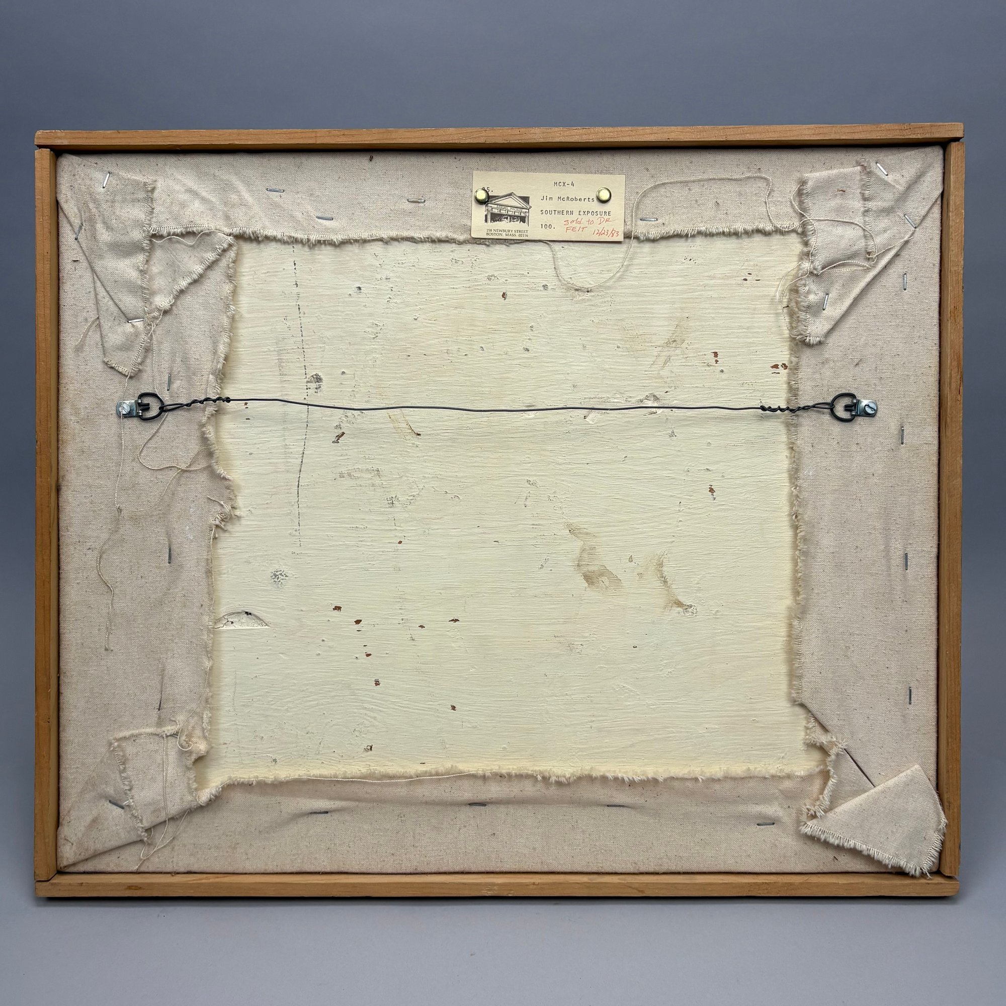Jim MacRoberts (Contemporary). "Southern Exposure," 1983. Oil on canvas mounted on wood, signed and dated "JIM MACROBERTS '83" center top, (17.125 x 20.875 inches).