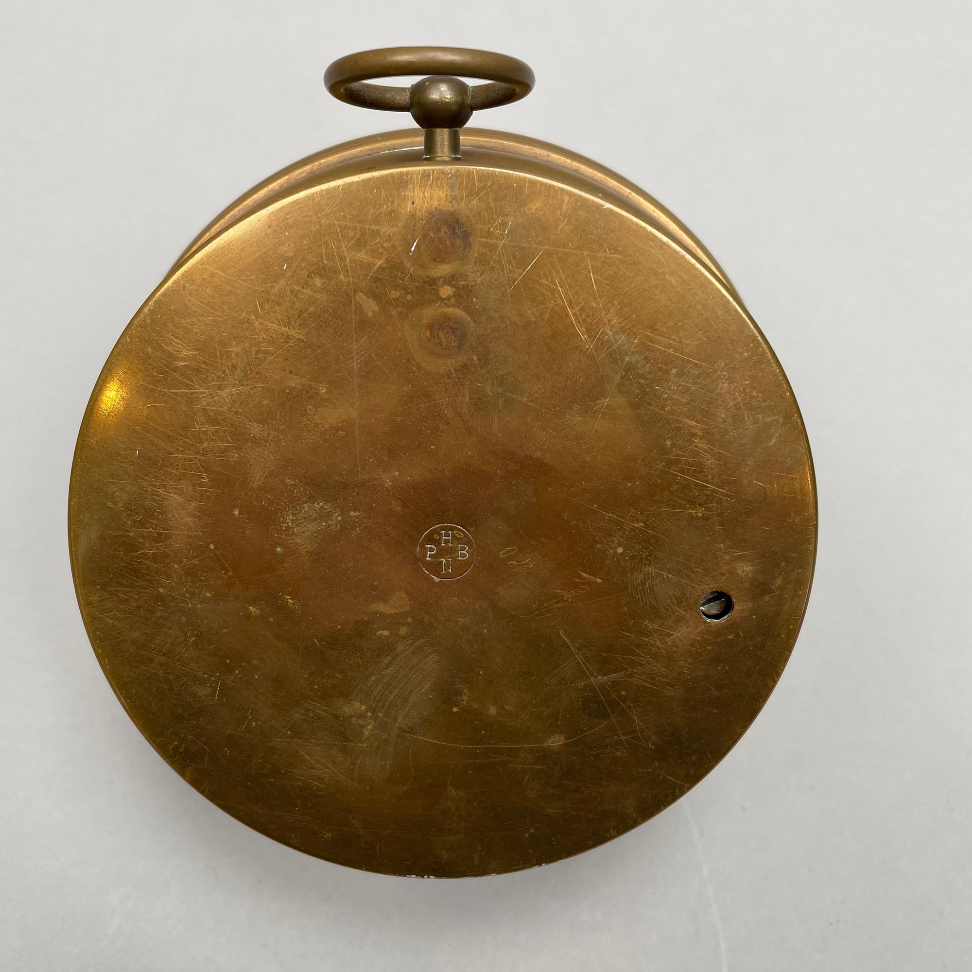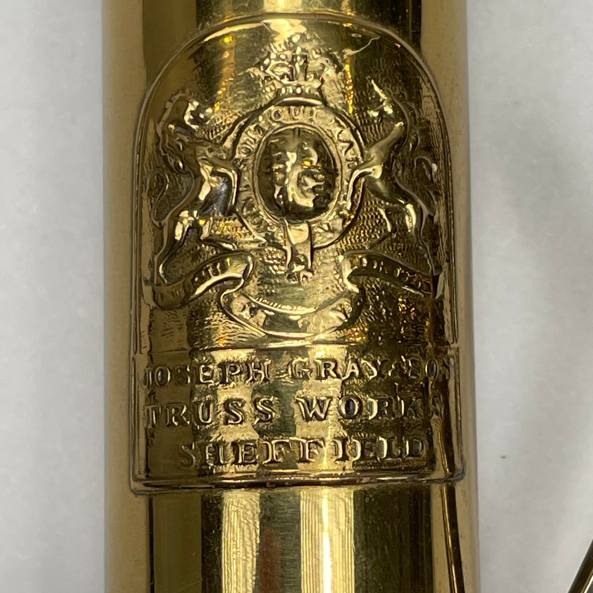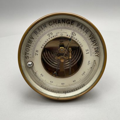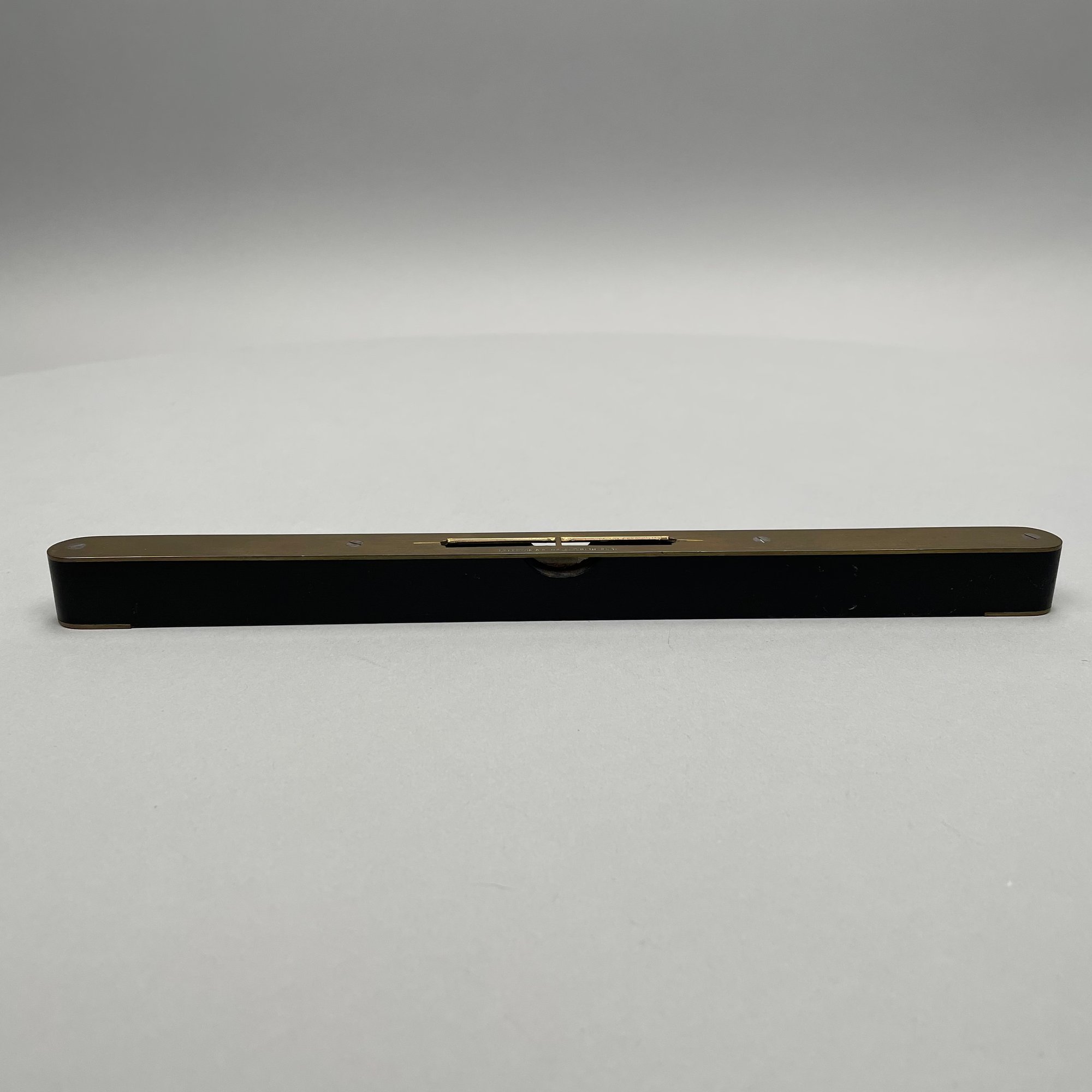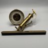 Joseph Gray & Son Truss Works, Sheffield, England, Brass Stomach Pump, Late Nineteenth Century; a brass and ebonized wood spirit level, E. Preston & Sons, Birmingham, 1920-49; and a Holosteric Barometer.