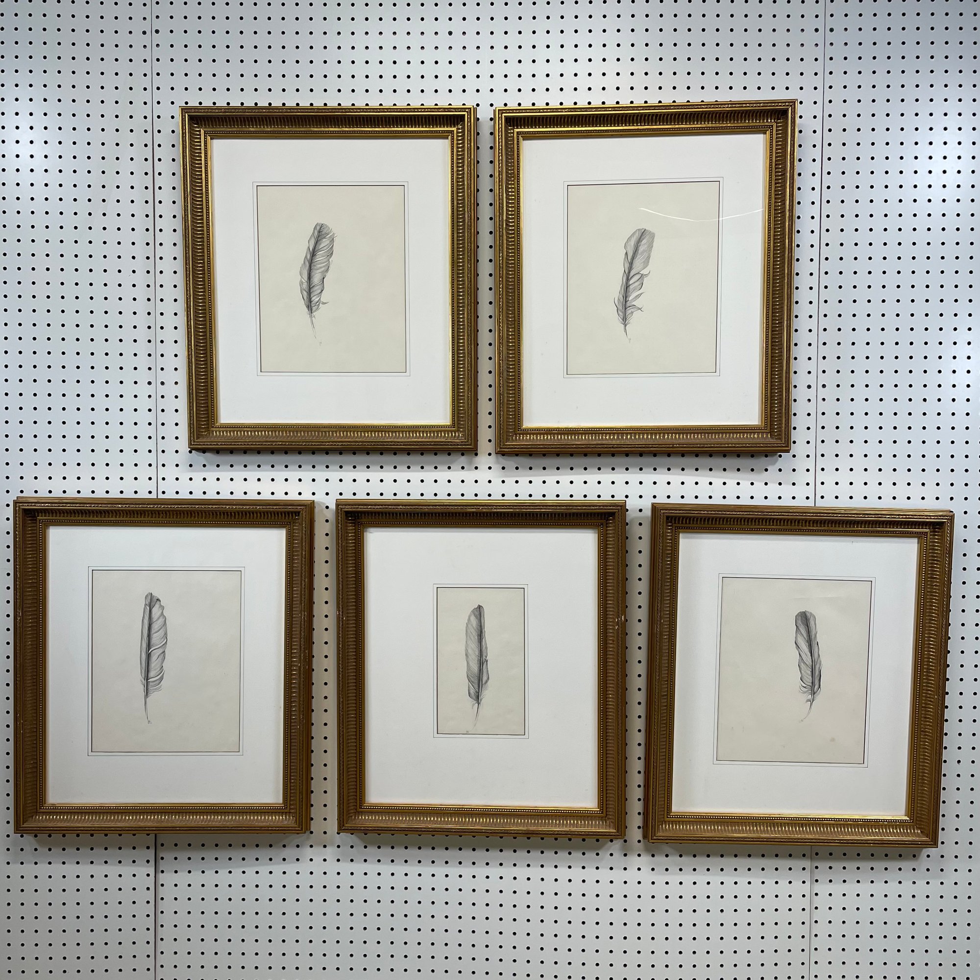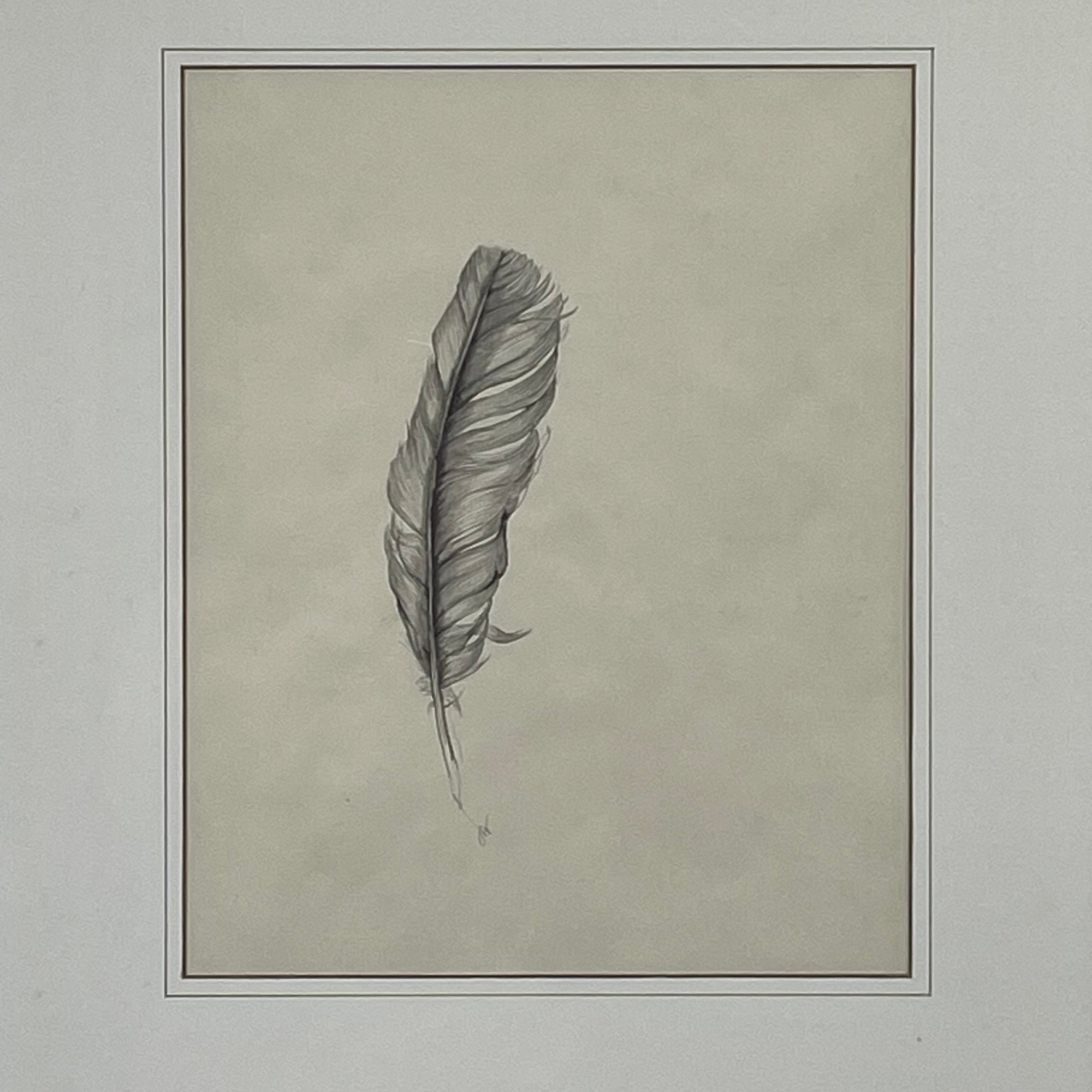 JW. Set of Five Graphite Drawings of Feathers, Circa 1988. Each signed with the initials "JW," one dated "88."