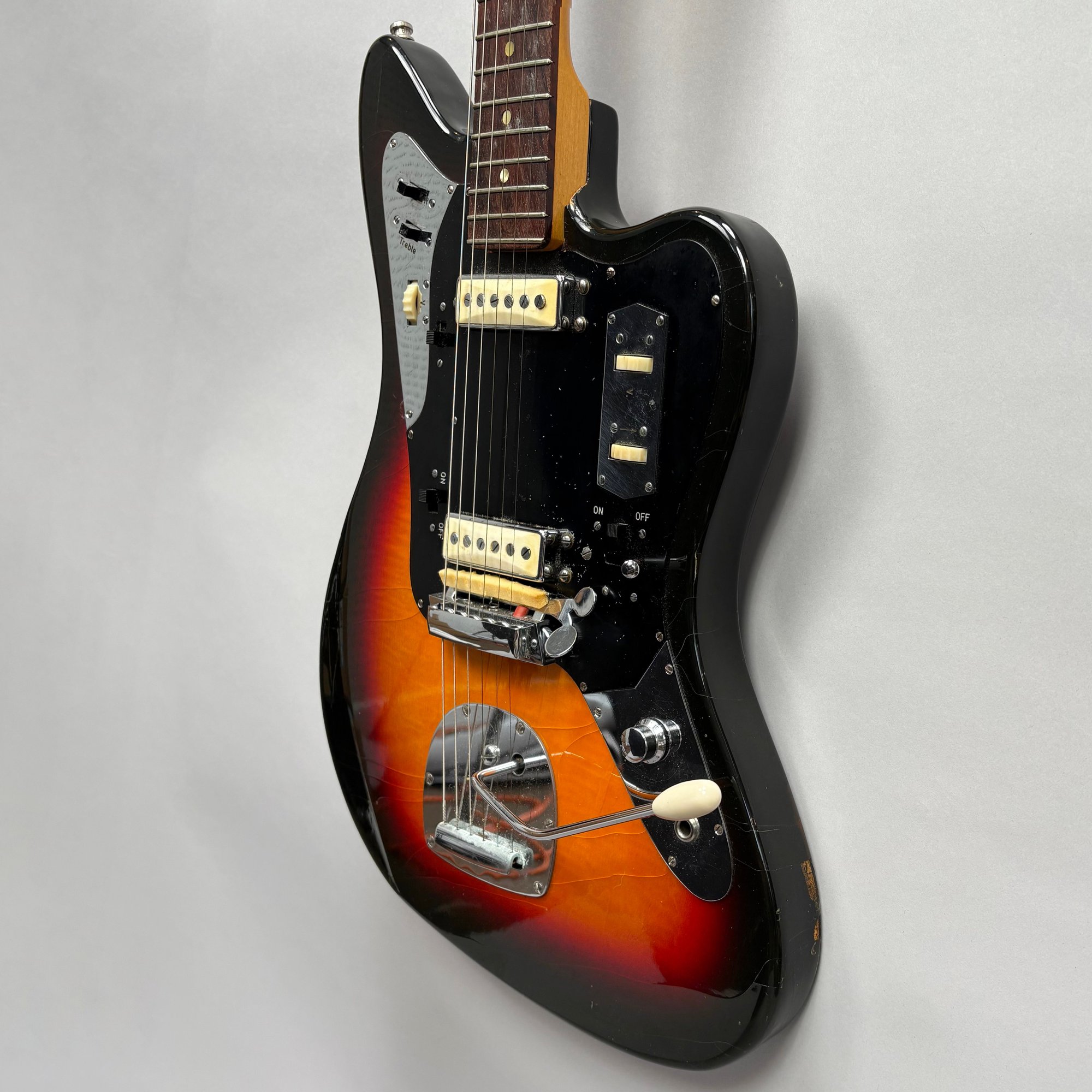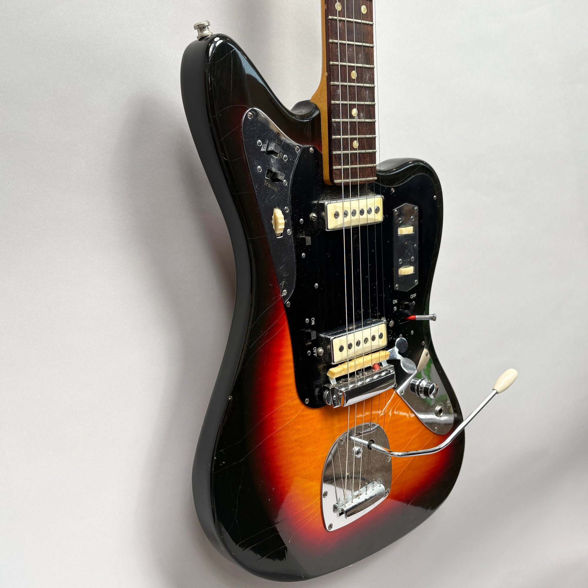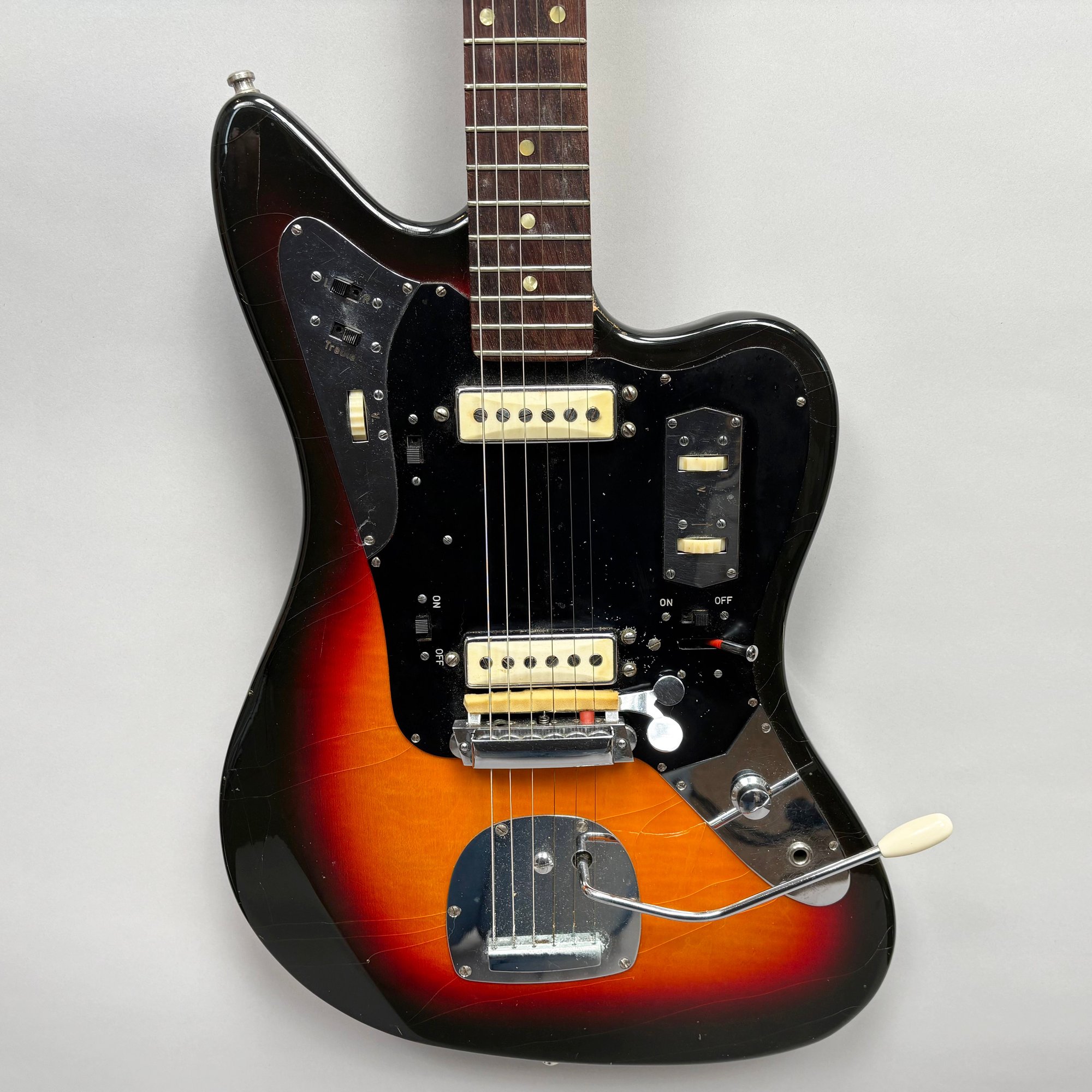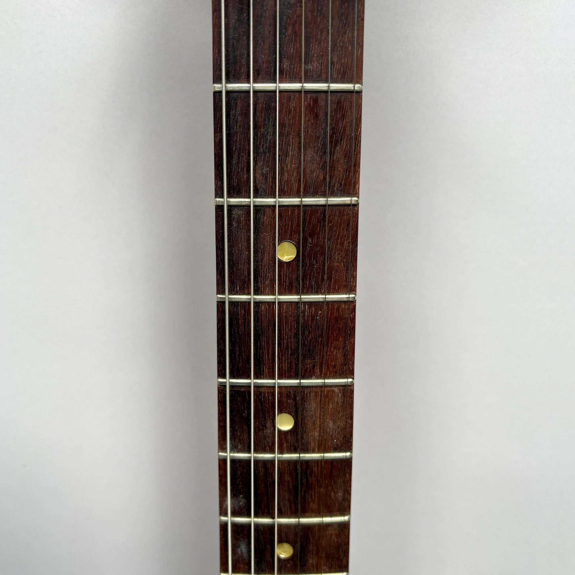 Klira 233 Star Club Sunburst Guitar, Germany, 1967-1969, and Case. Right-handed, maple headstock applied "Klira" in raised gold-plate lettering, rosewood fretboard with pearloid dots; also including an instrument cable, eleven packs of Fender strings and one empty Thomastik-Infeld set of Power-Brights with handwritten note "Changed to this type 6-22-02," one set of unknown strings in an envelope, Schaller security lock, a "Fender/ THIN" white guitar pick, and a soft-sided case. Together with a white leather guitar strap.