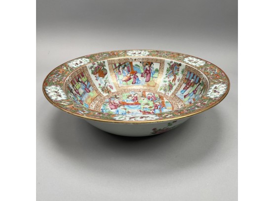 Painted in famille rose enamels and gilding with views of court figures engaged in various activities.