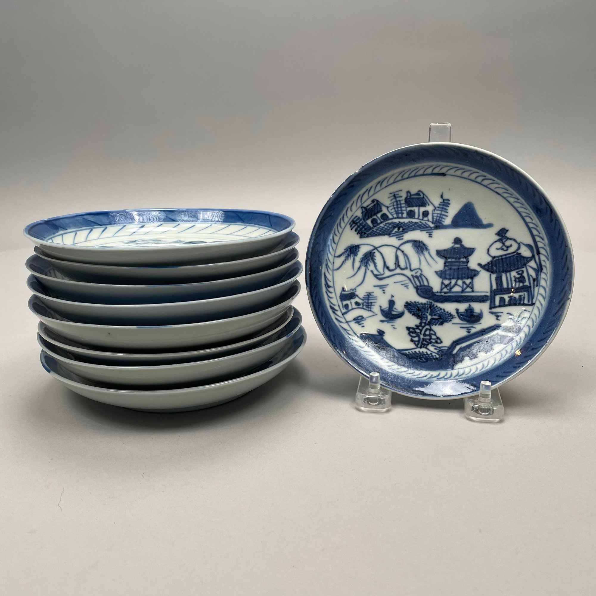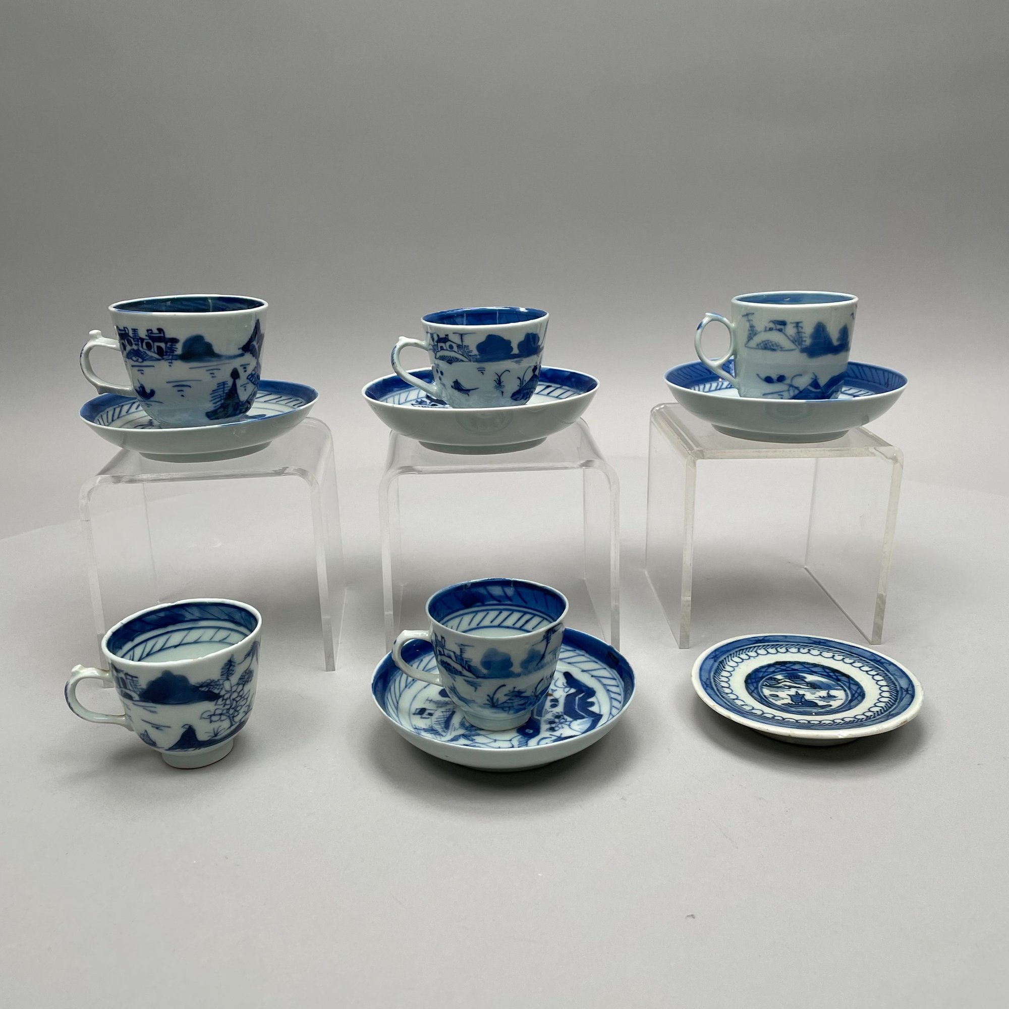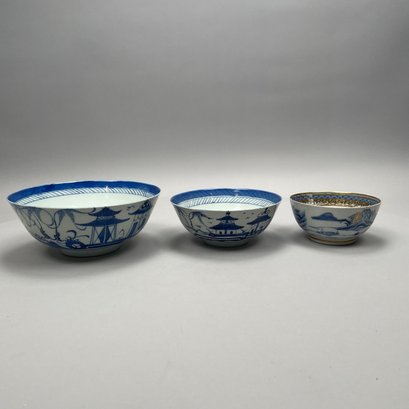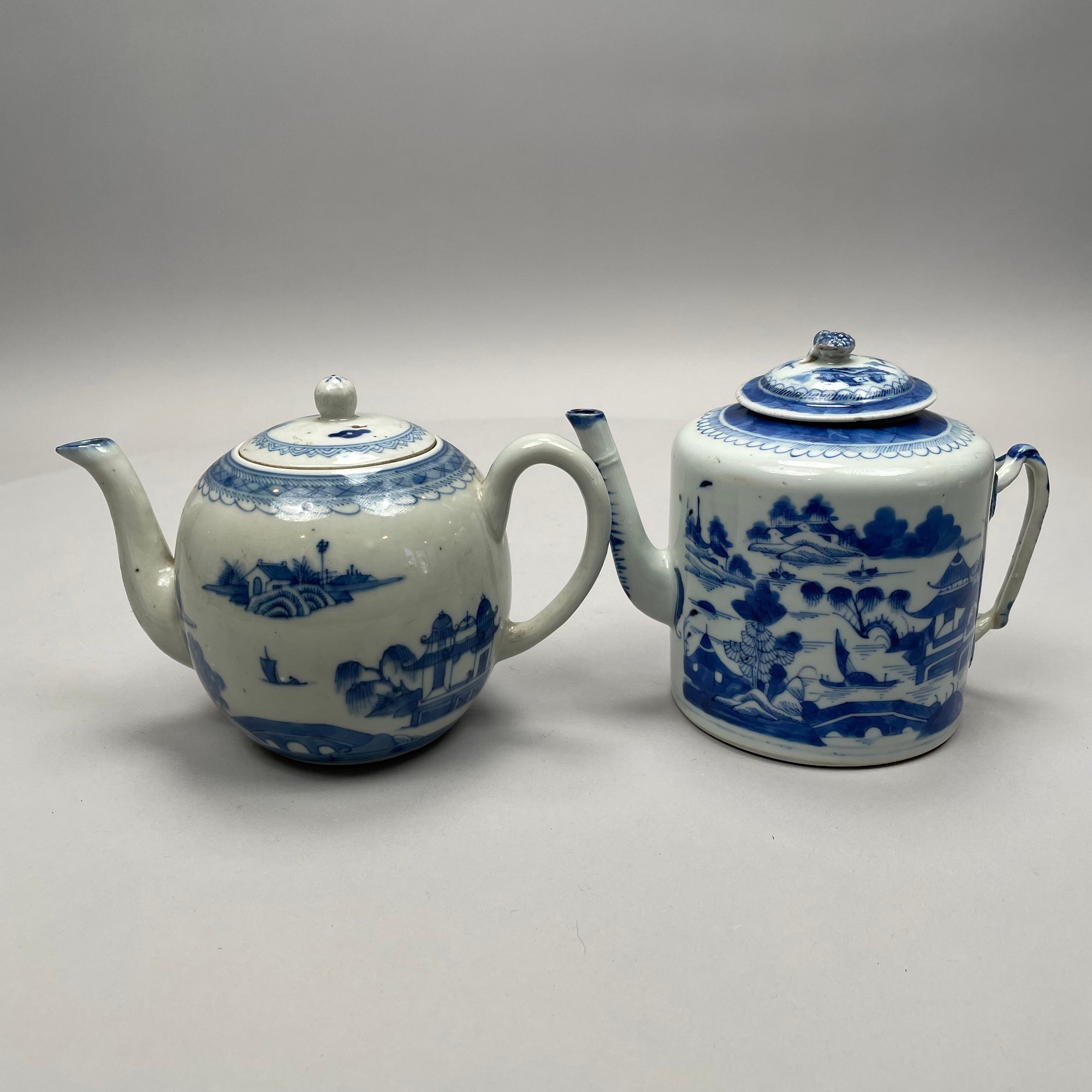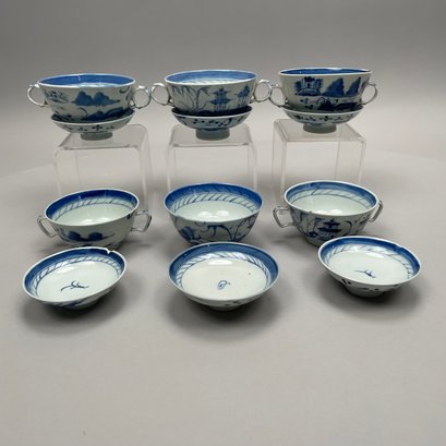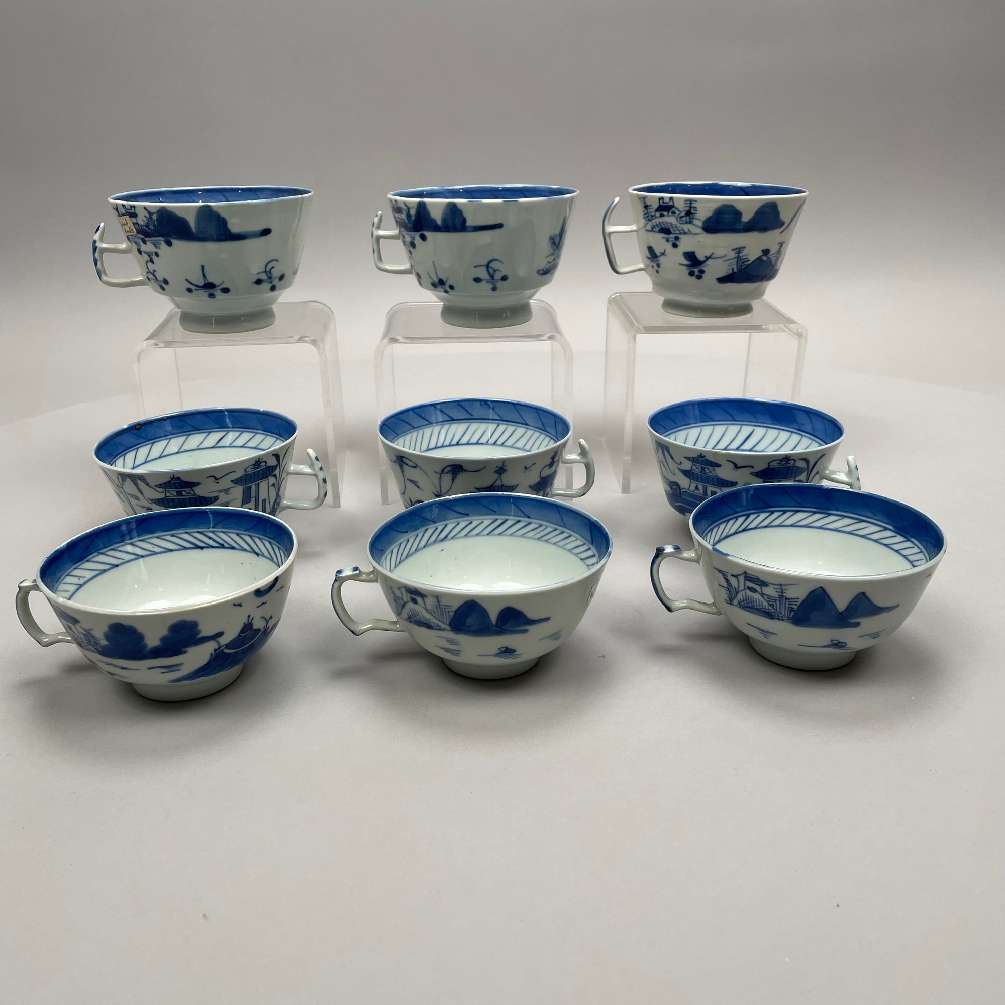 Large Group of Chinese Export Canton Porcelain Wares, Nineteenth Century. Comprising serving pieces, liners, teapots, sugar bowls and covers, plates, two-handled cups, cups and saucers.