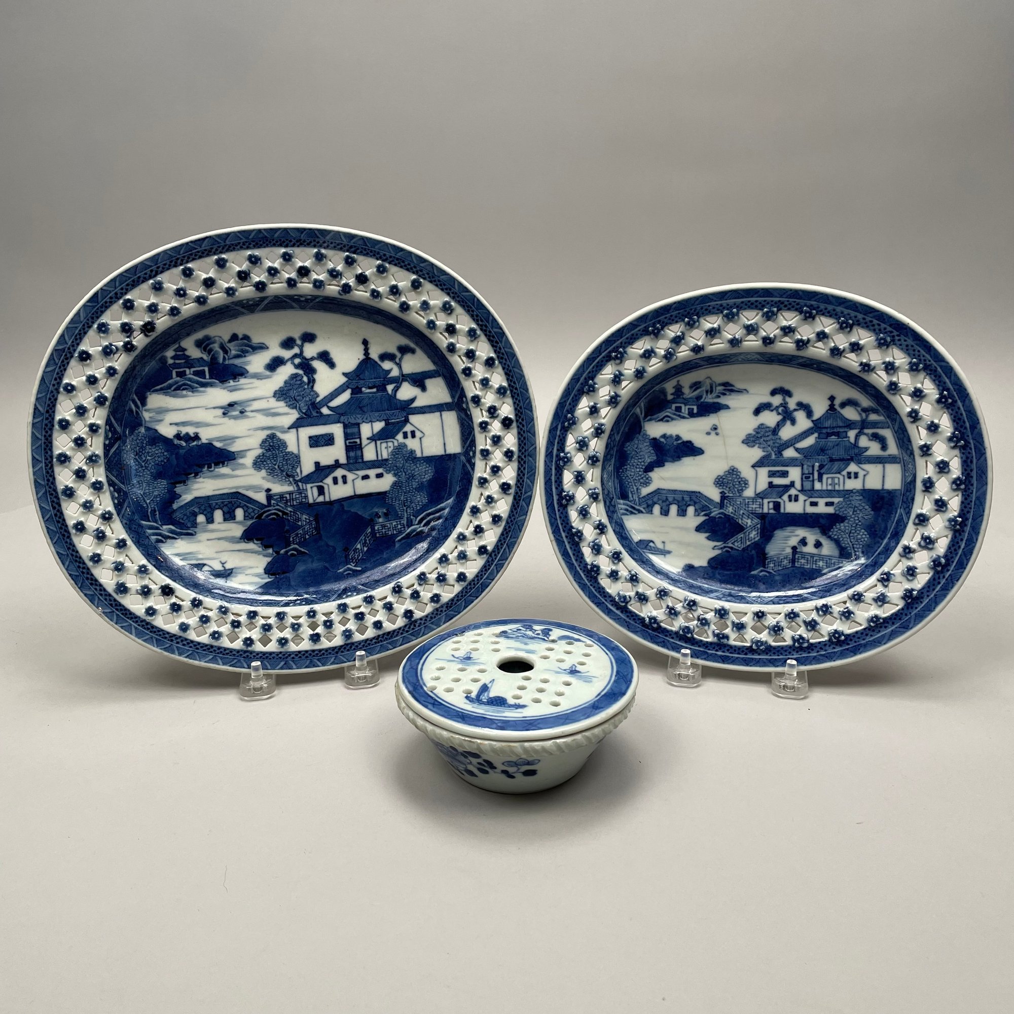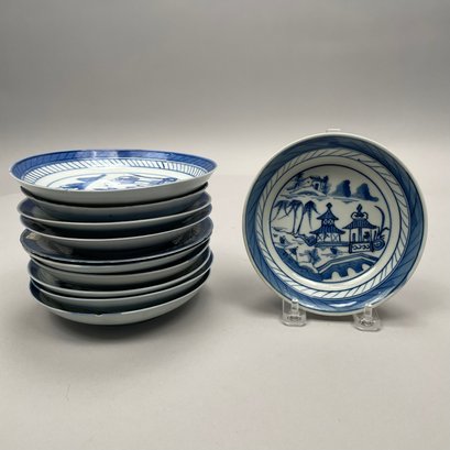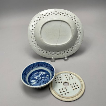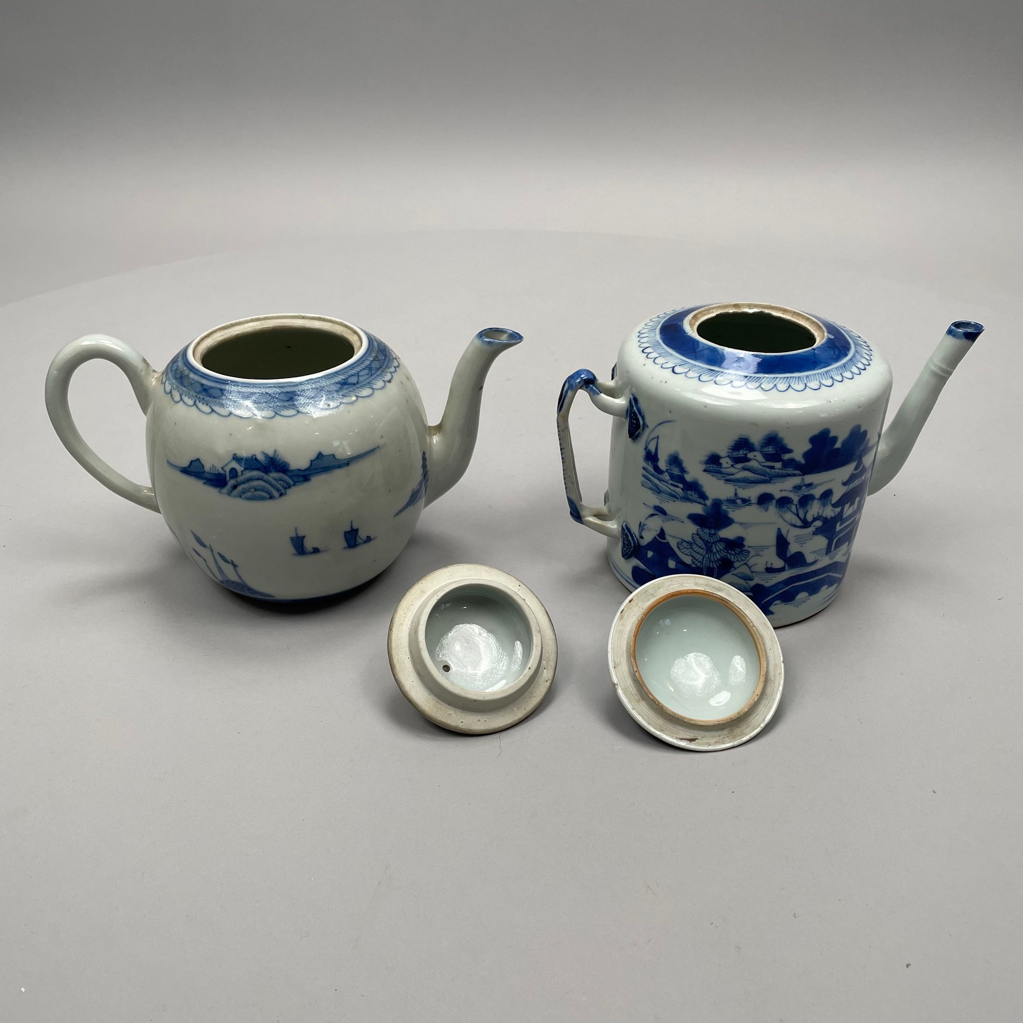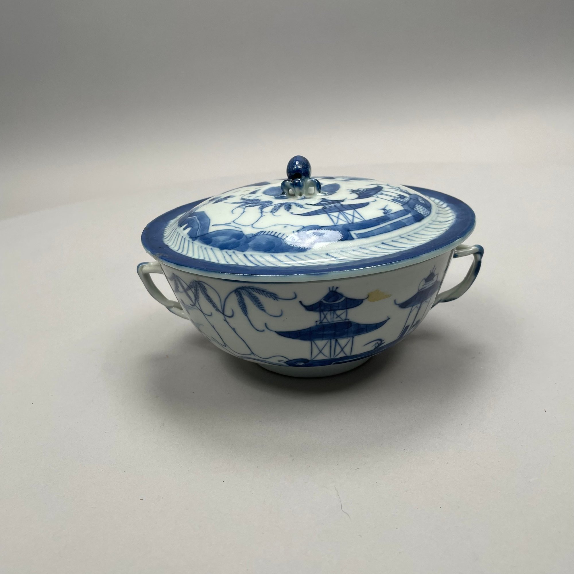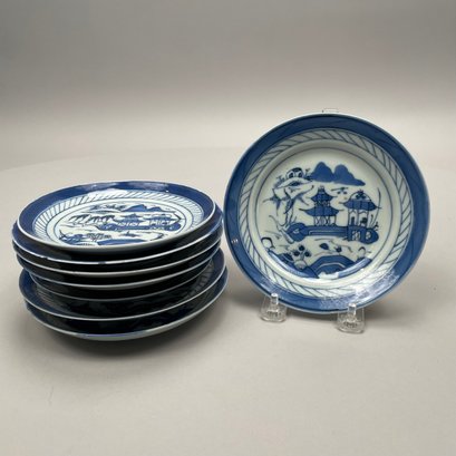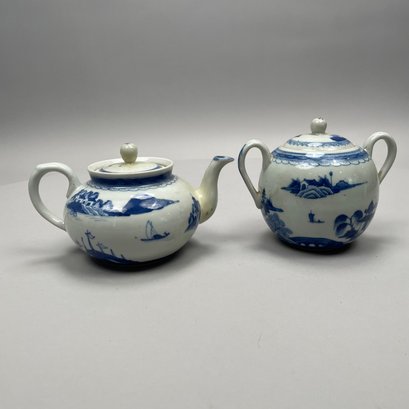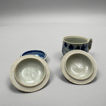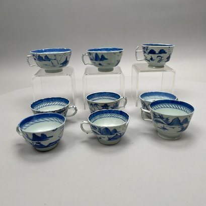 Large Group of Chinese Export Canton Porcelain Wares, Nineteenth Century. Comprising serving pieces, liners, teapots, sugar bowls and covers, plates, two-handled cups, cups and saucers.
