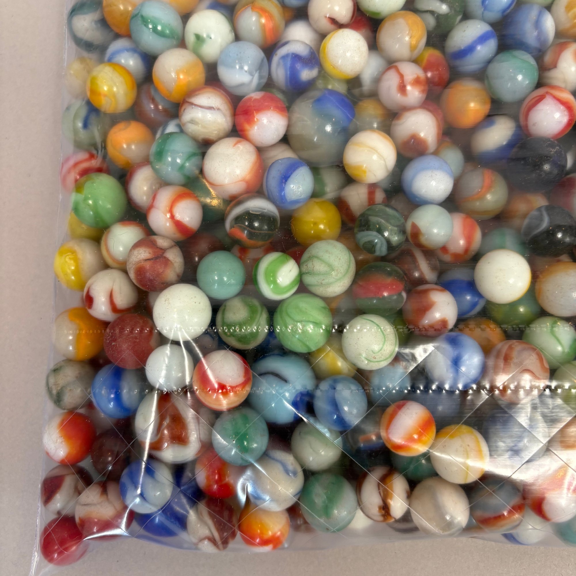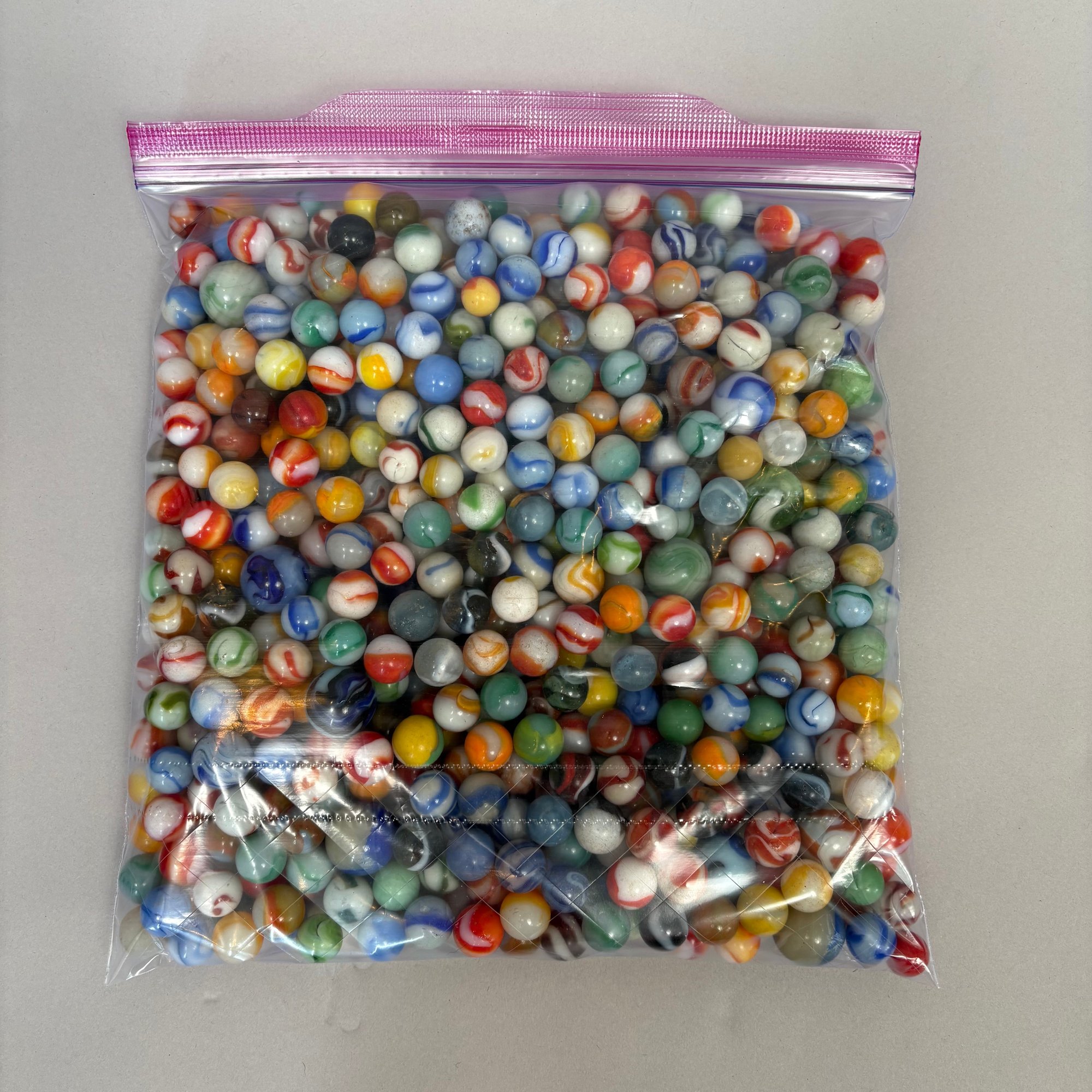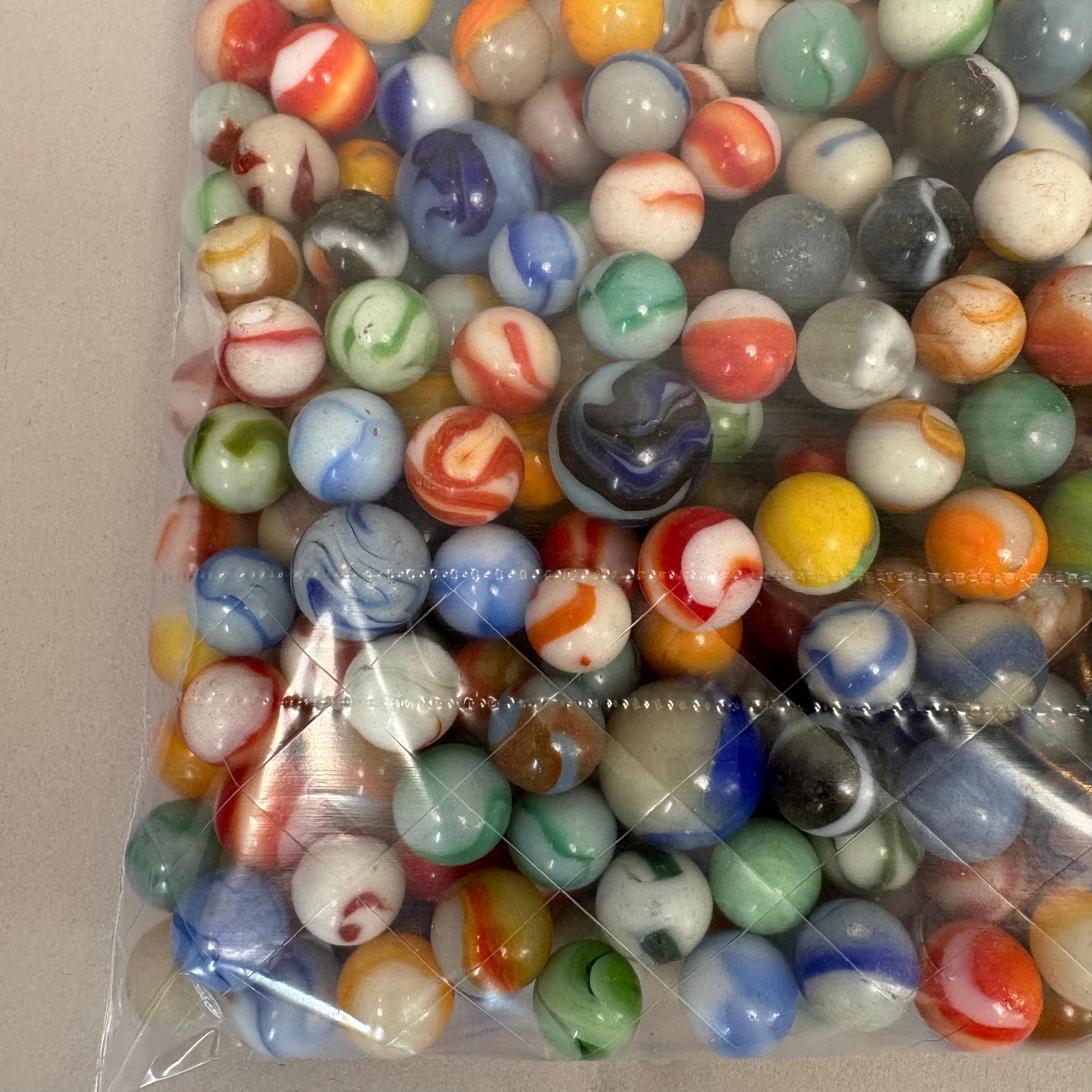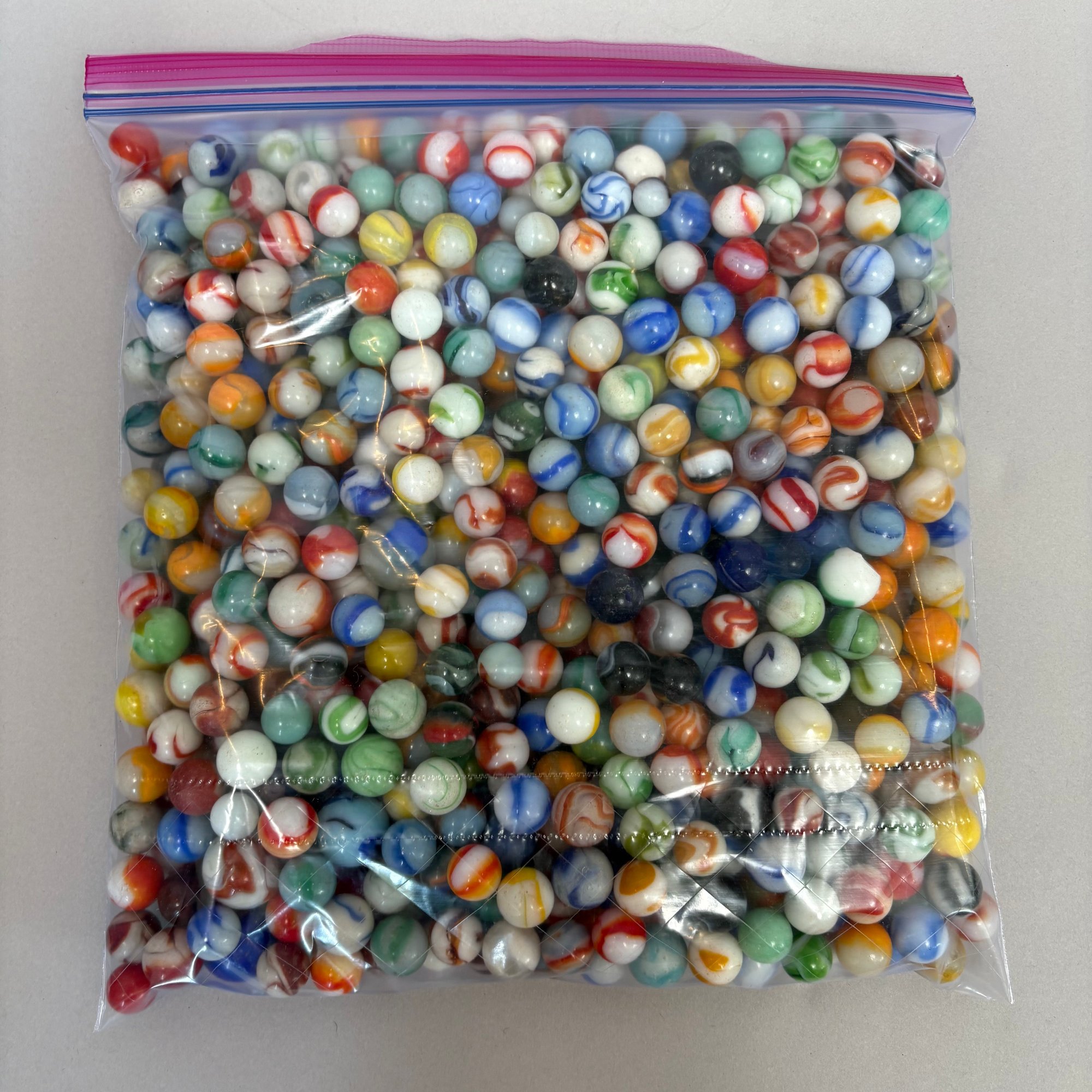 Large Group of Assorted Machine-Made Marbles in a One Gallon Bag.
