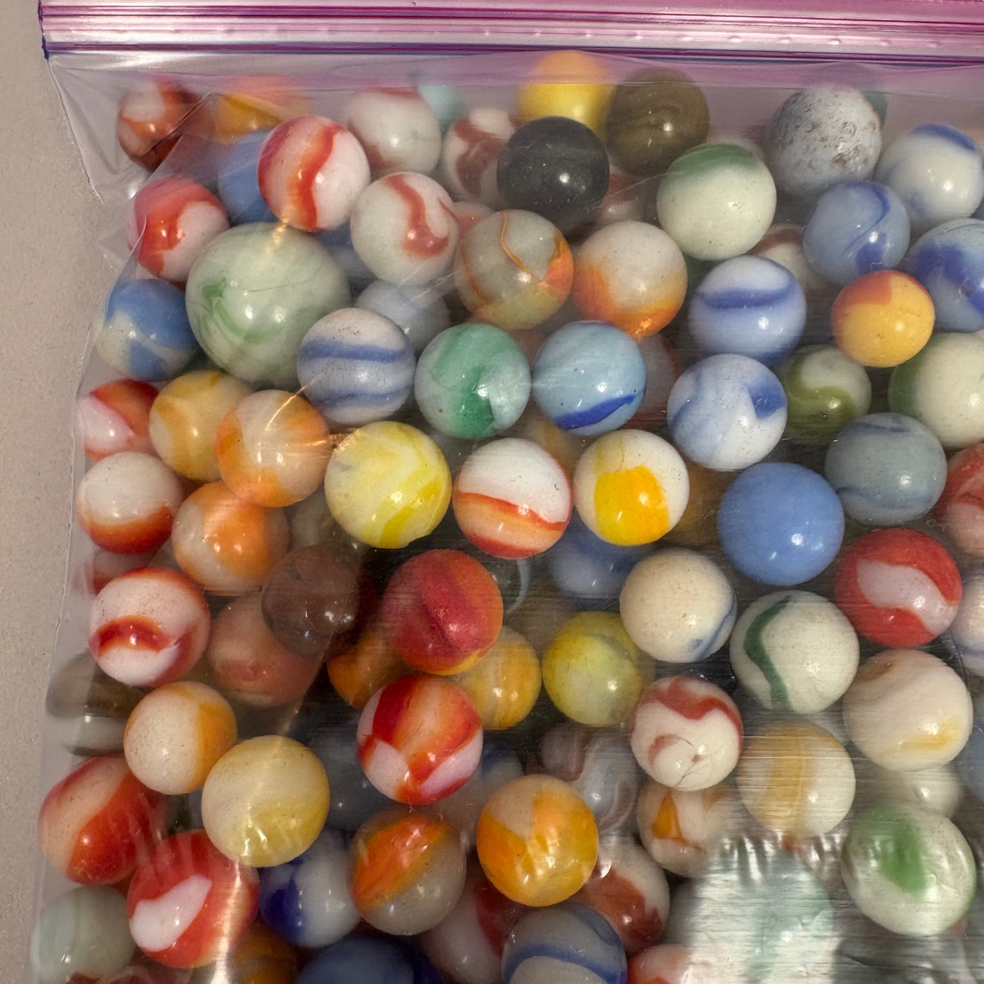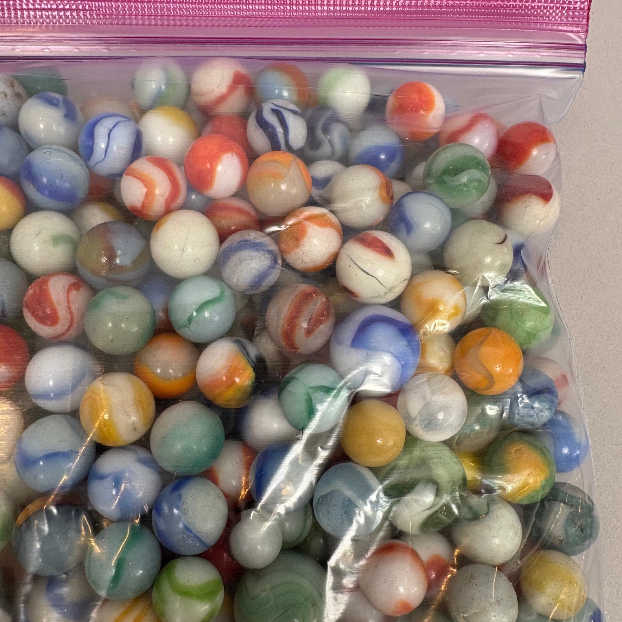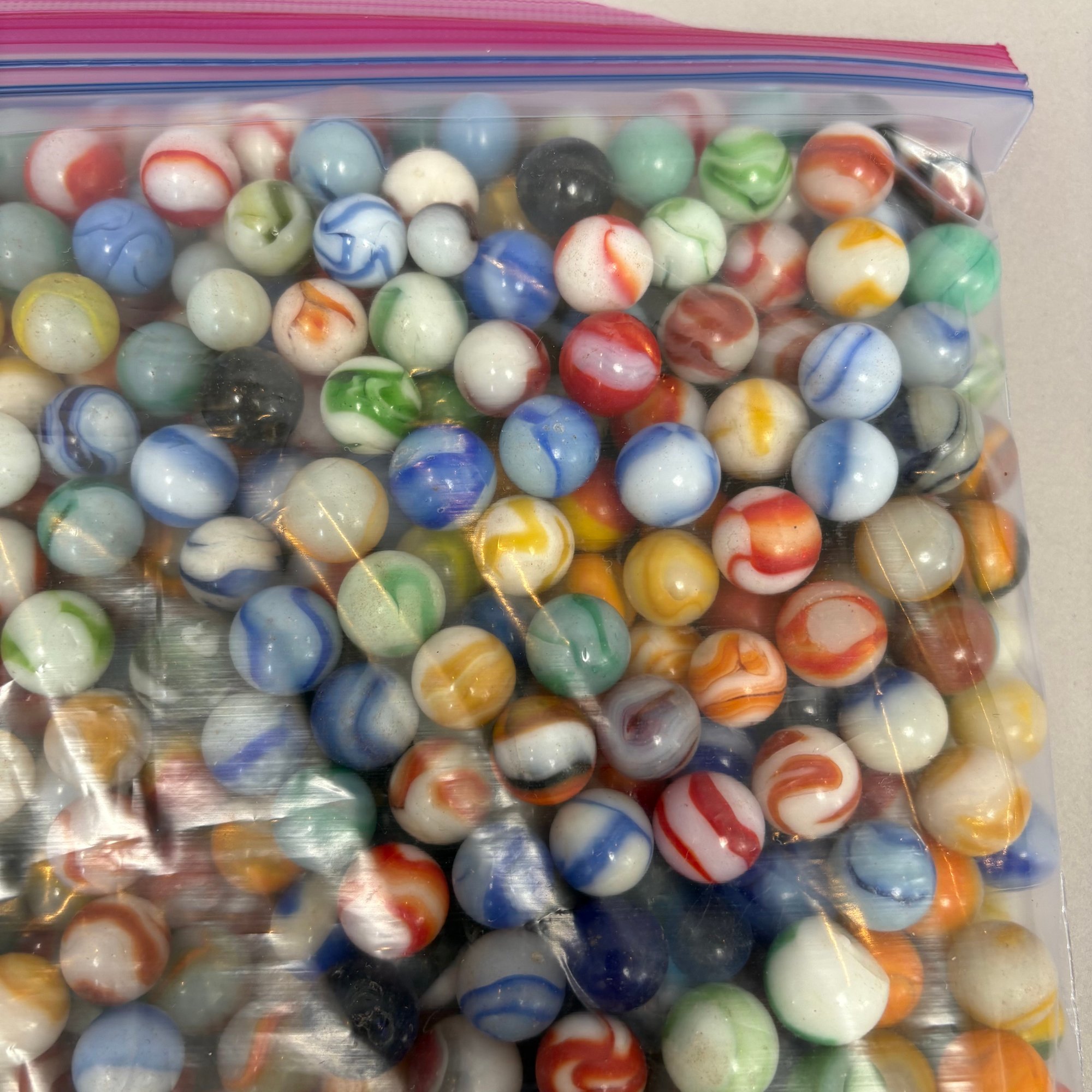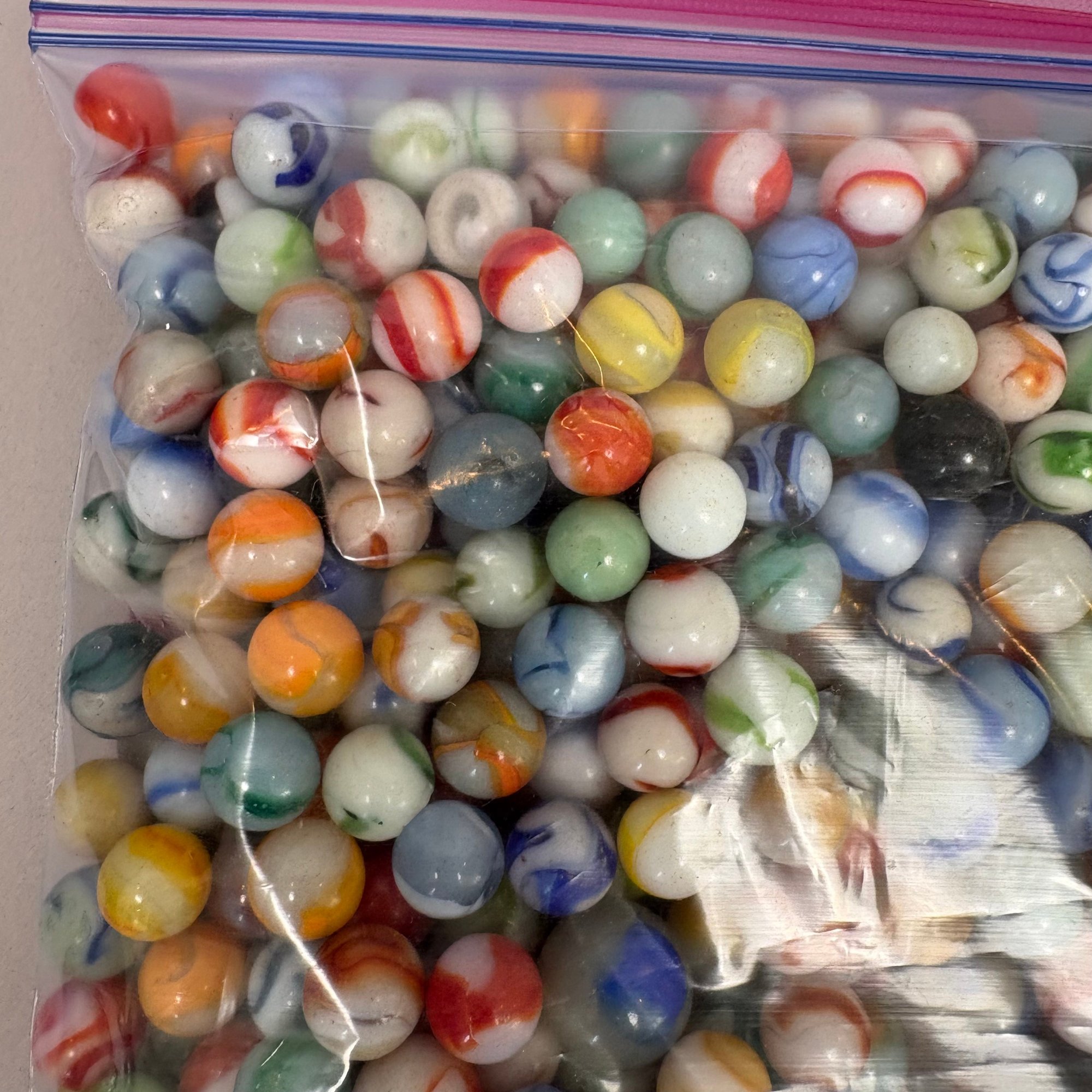 Large Group of Assorted Machine-Made Marbles in a One Gallon Bag.