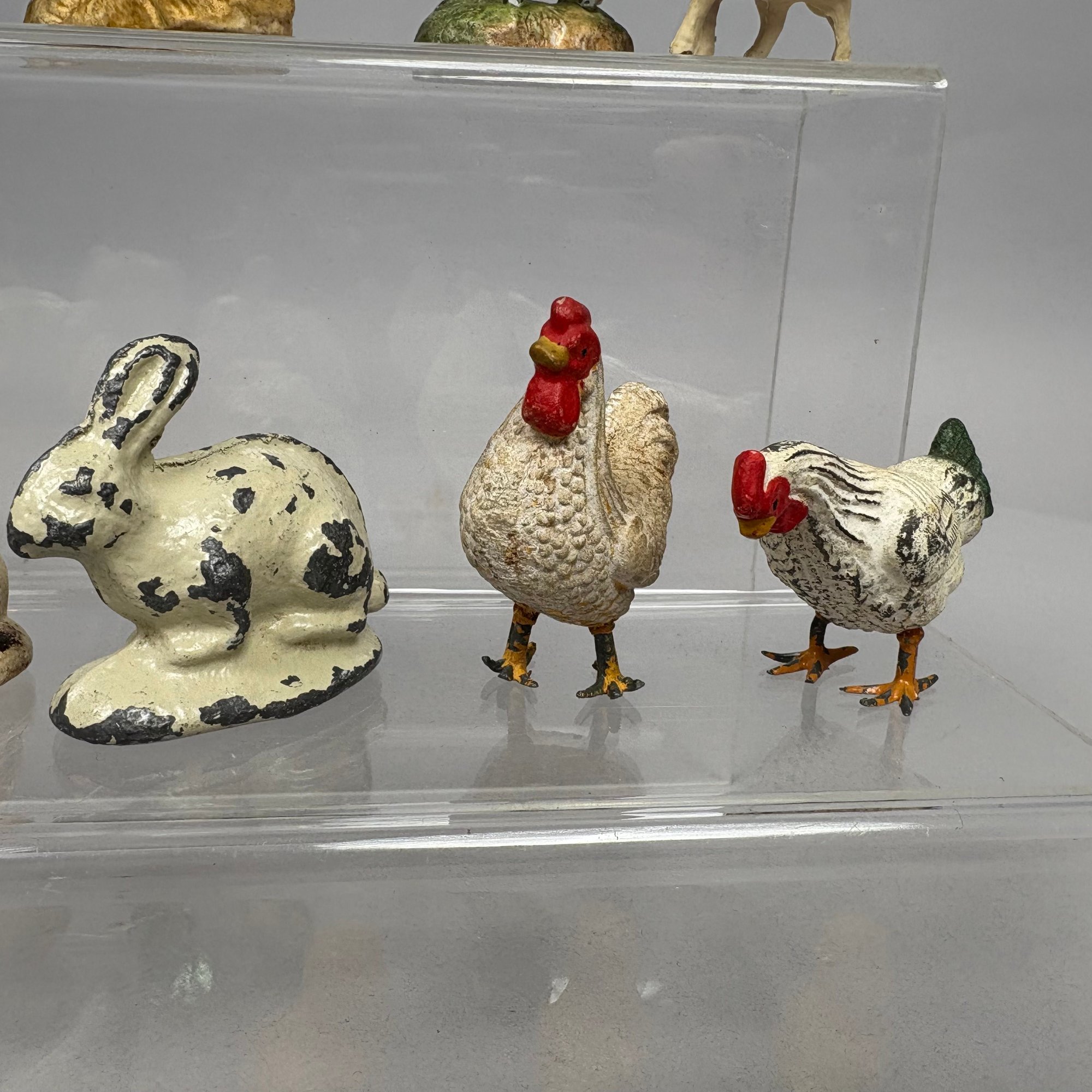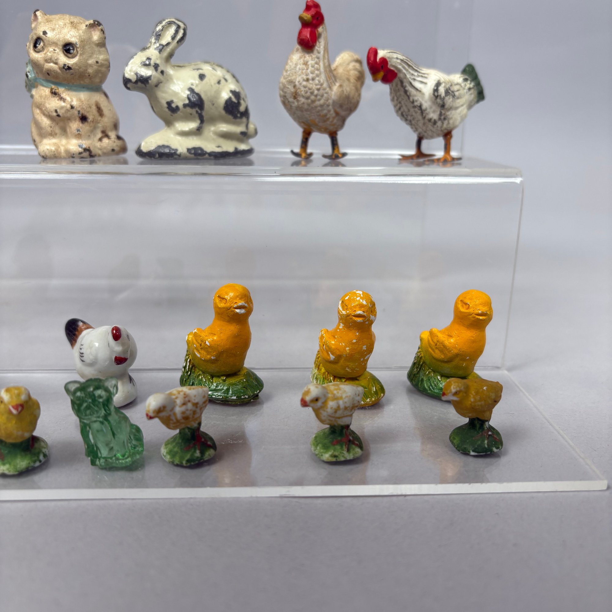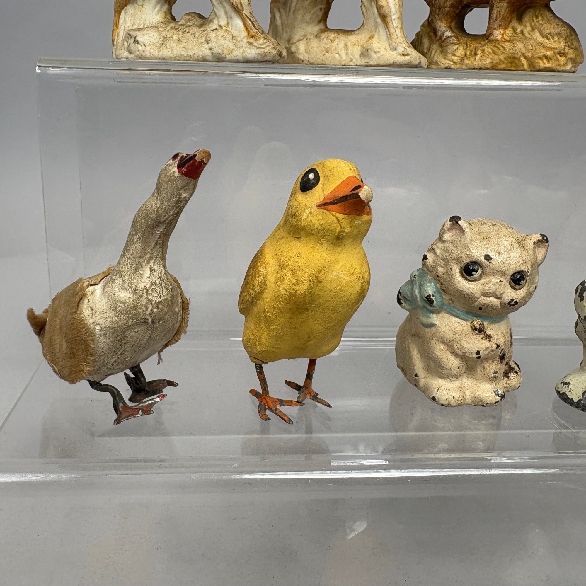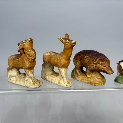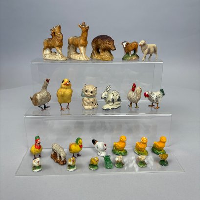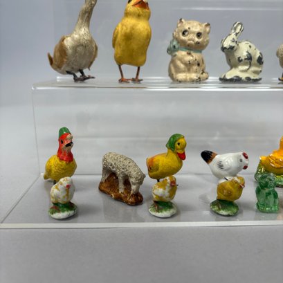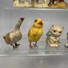 Large Group of Assorted Miniature Figures of Animals and Birds, Late 19th-20th Century. In porcelain, chalkware, metal, celluloid and plastic. (29)