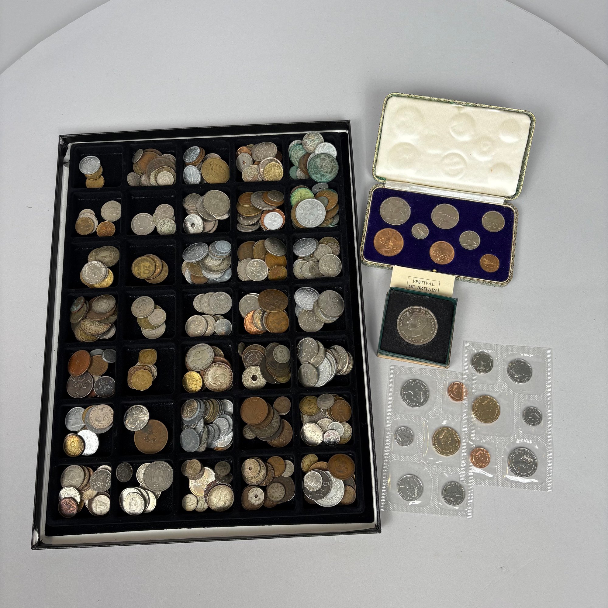 Large Group of World Coins, Including a Group of English, Irish and Canadian Coin Sets, 1949-1989. Comprising a boxed set of eight Irish coins, 1949 (2), 1950 (3) and 1951 (3), housed in the original case; a "Festival of Britain" crown piece, 1951, housed in the original box; and a set of twelve Canadian Elizabeth II coins, 1989; the remaing comprising a large group of world coins. (Case not included)