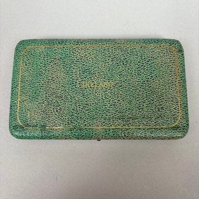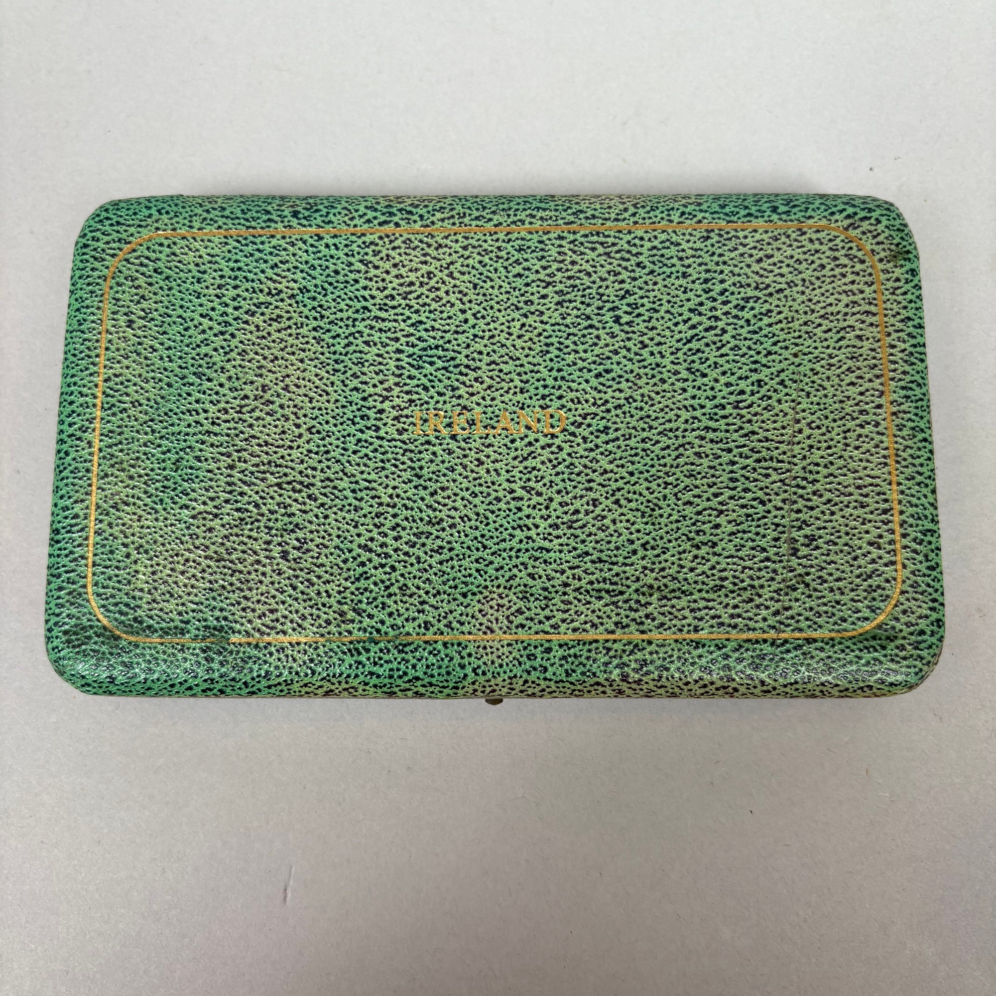 Irish coin case: H: 3.625 in., W: 6 in., D: 0.75 in.