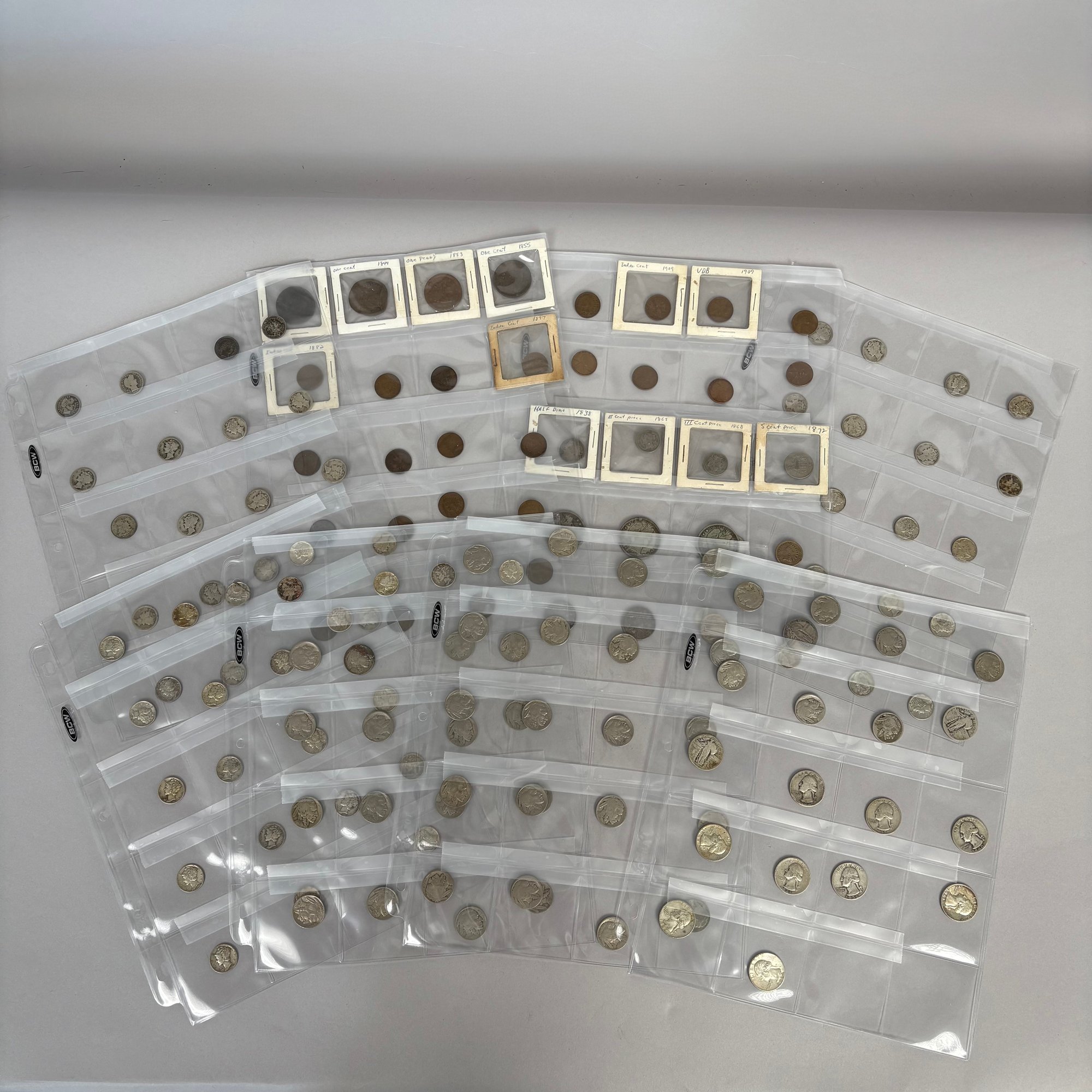 Large Lot of Assorted United States Coins, including Mercury dimes, large cents, Indian Head cents, Buffalo nickels, Washington quarters, etc.