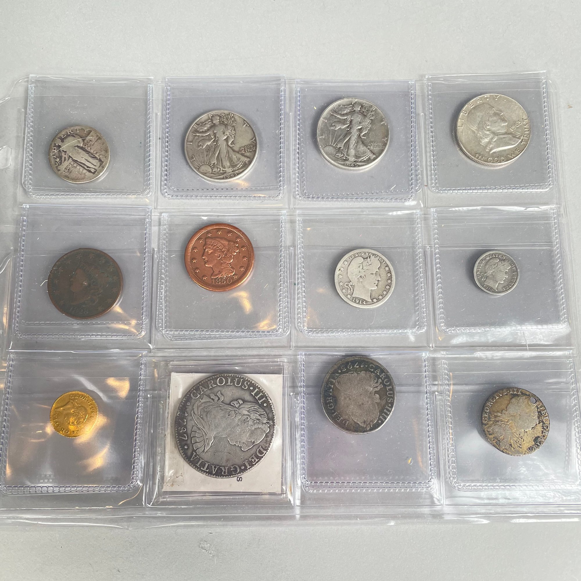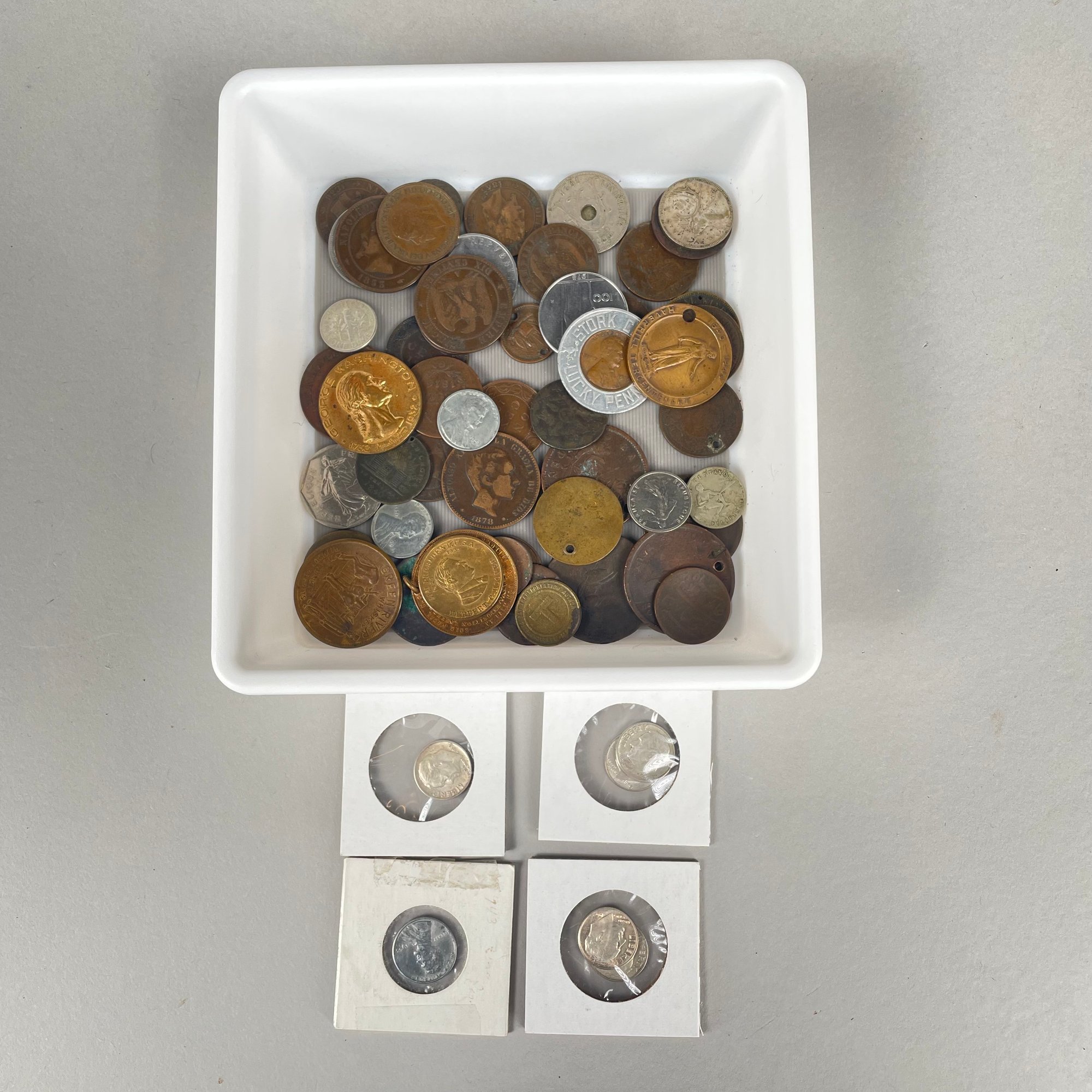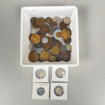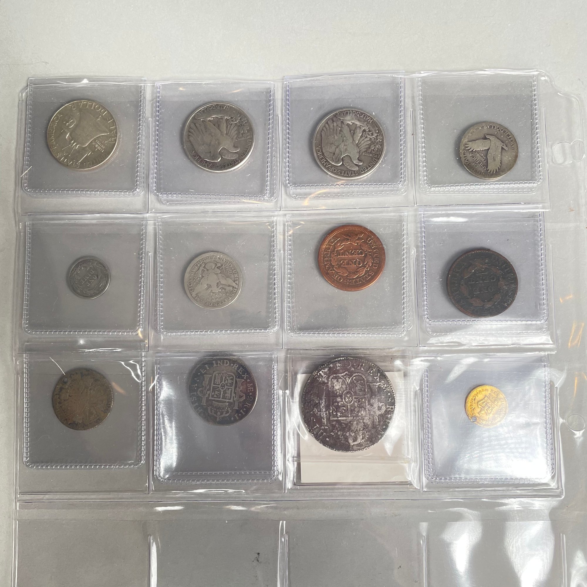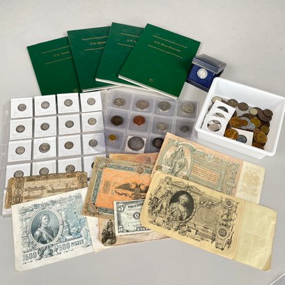 Large Lot of US and Foreign Coins and Paper Money, including 1810 George III 1/3 Guinea Gold; 1787 8 Reales, Mexico; 1793 2 Reales, Peru, Mercury Dimes, Tokens, Etc.