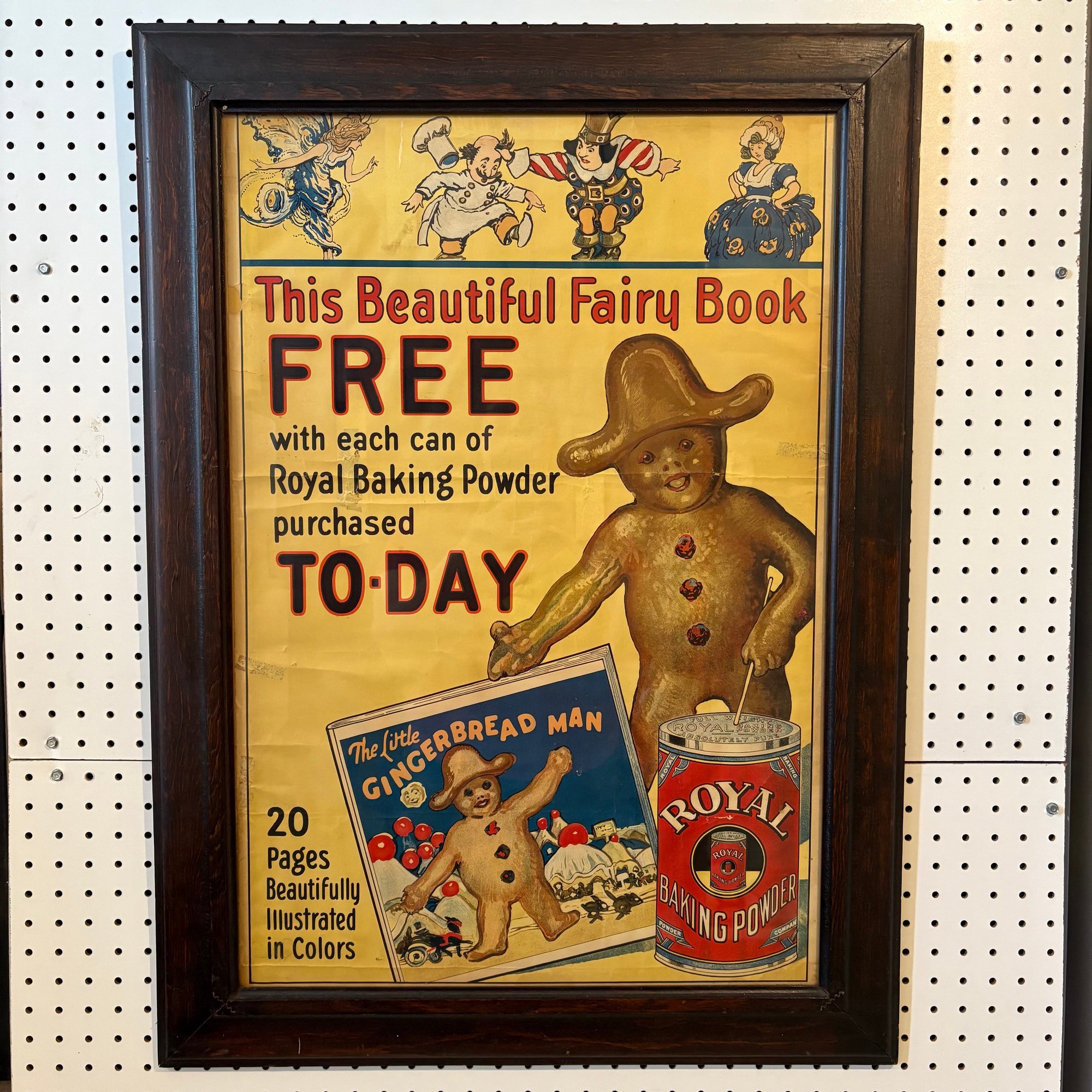 Royal Baking Powder Advertising Poster, 1923. Offering "The Little GINGERBREAD MAN" fairy book with the purchase of a can of Royal Baking Powder. (Poster size 29 x 20 inches).