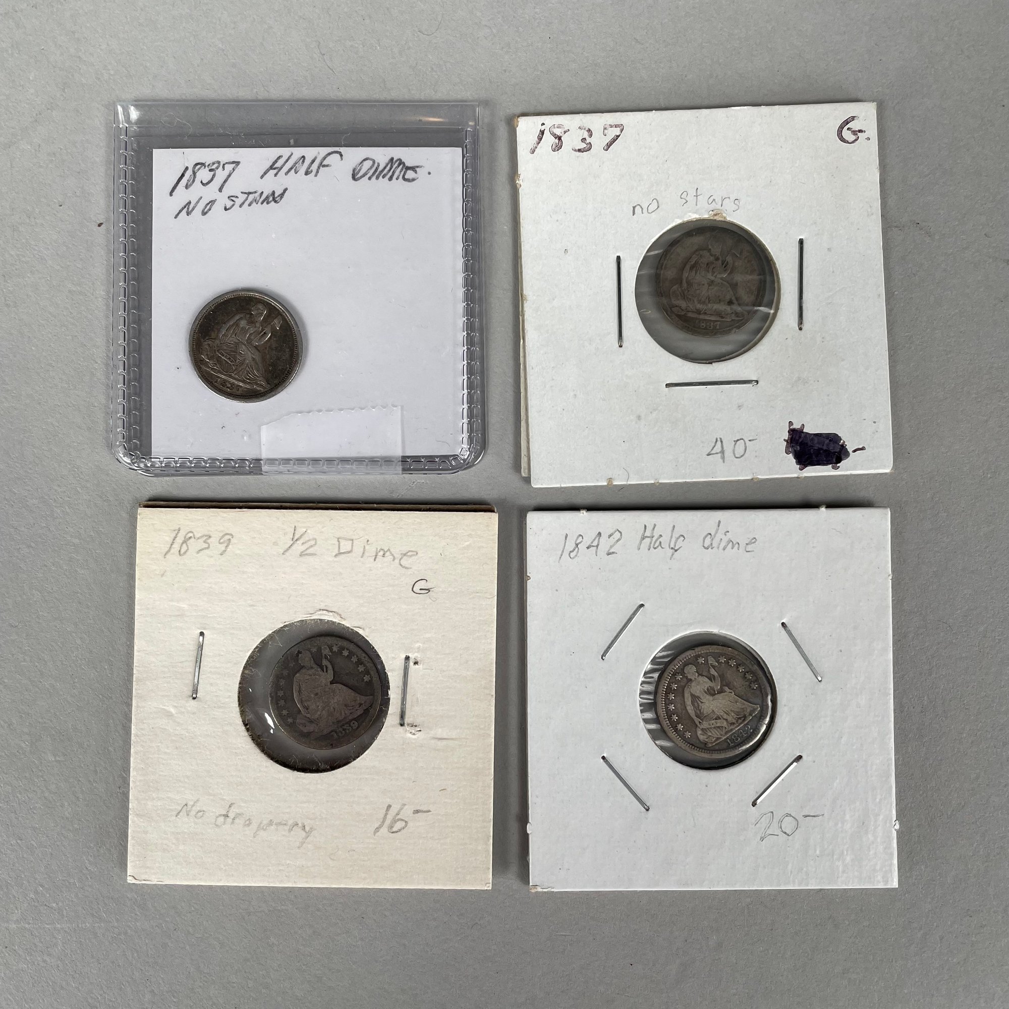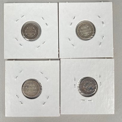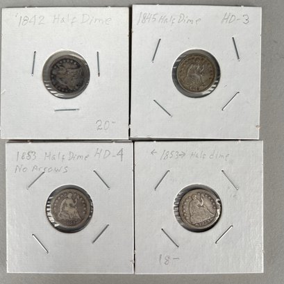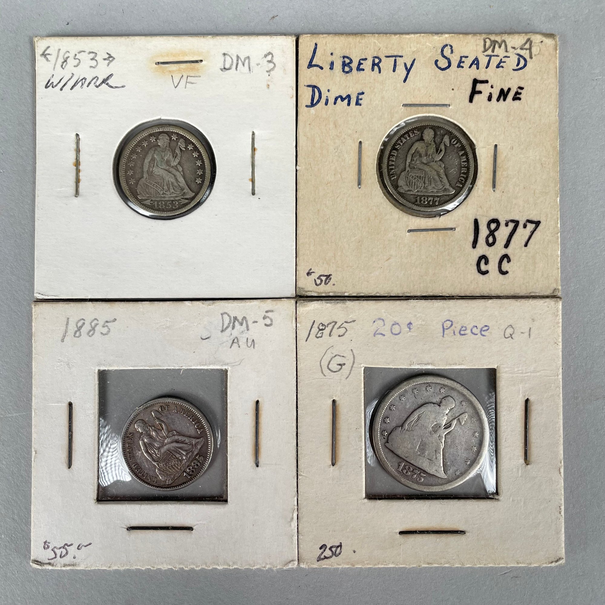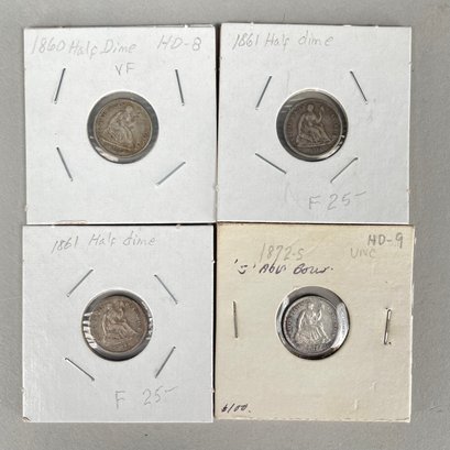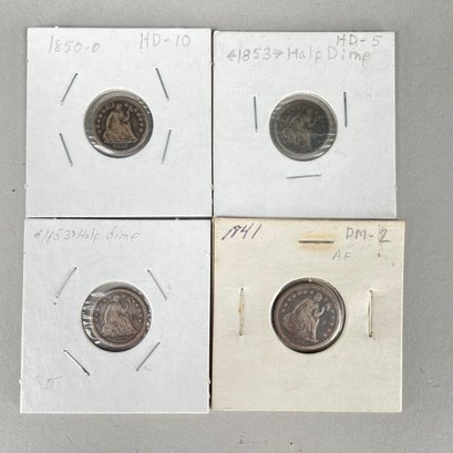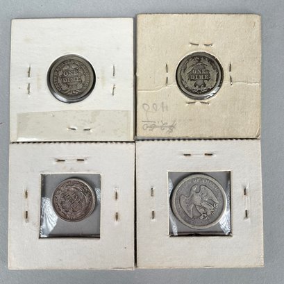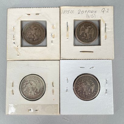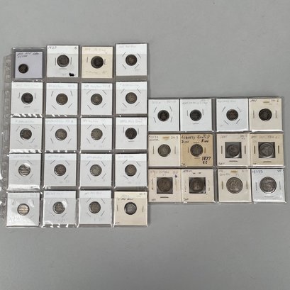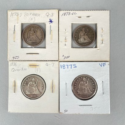 Lot of 32 US Seated Liberty Coins, 1837 - 1877, including Half Dimes, Dimes, 20 Cent Pieces and Quarters.