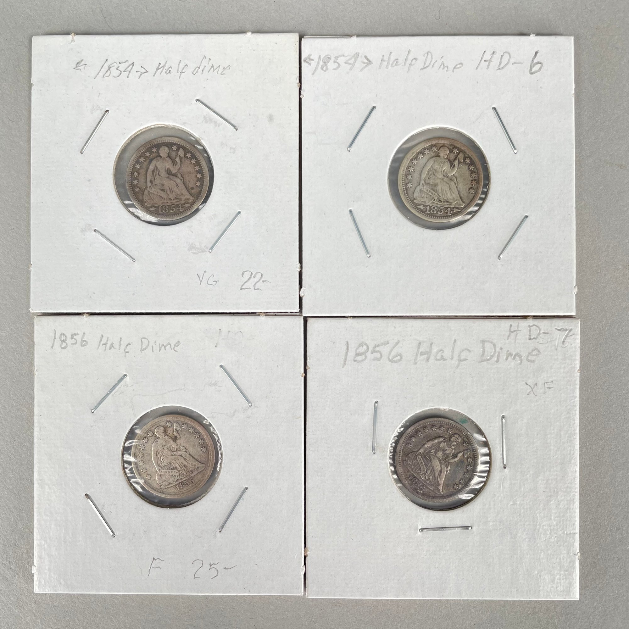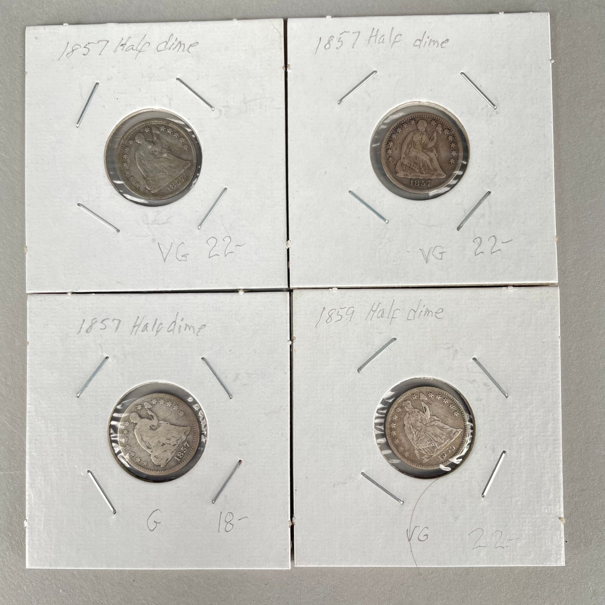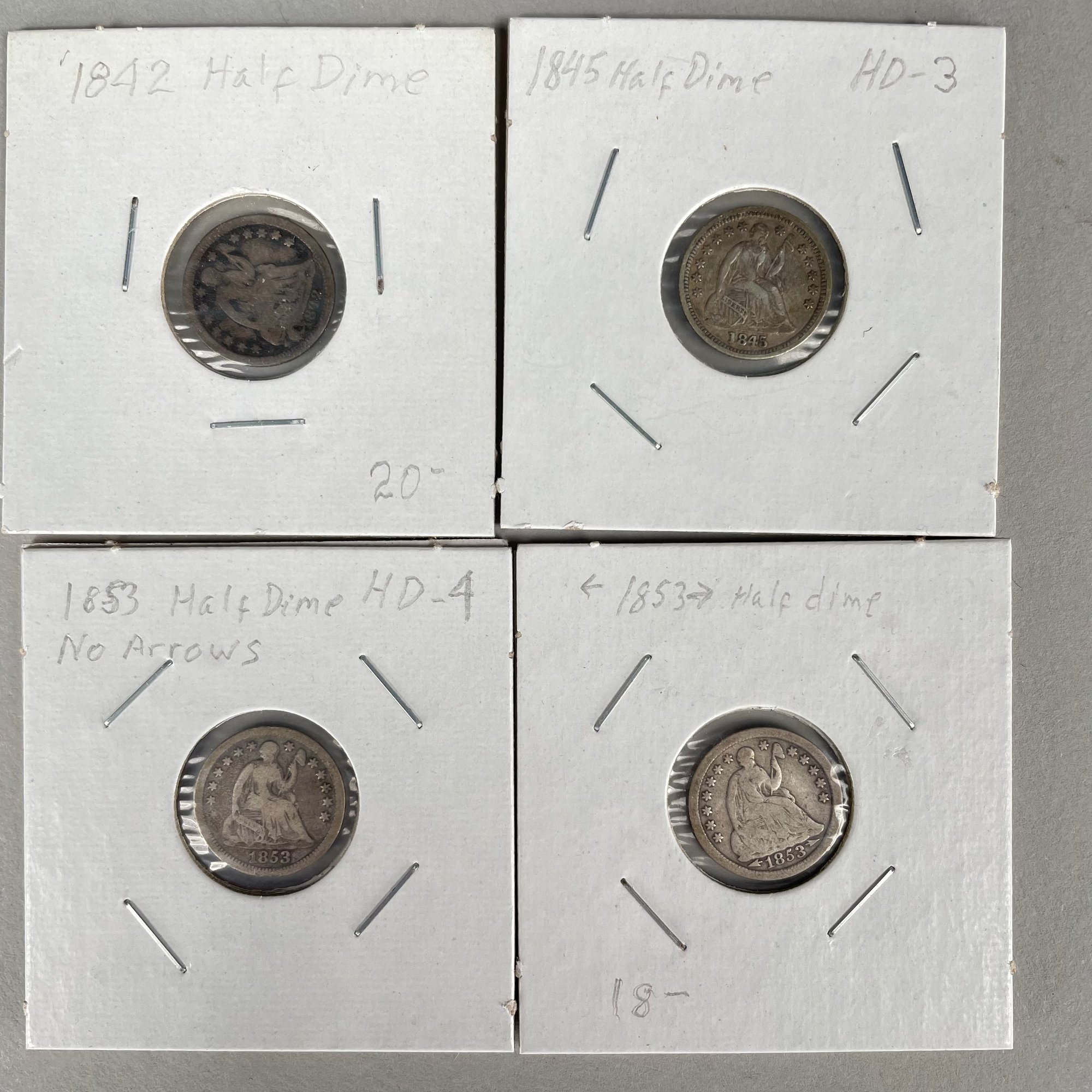 Lot of 32 US Seated Liberty Coins, 1837 - 1877, including Half Dimes, Dimes, 20 Cent Pieces and Quarters.